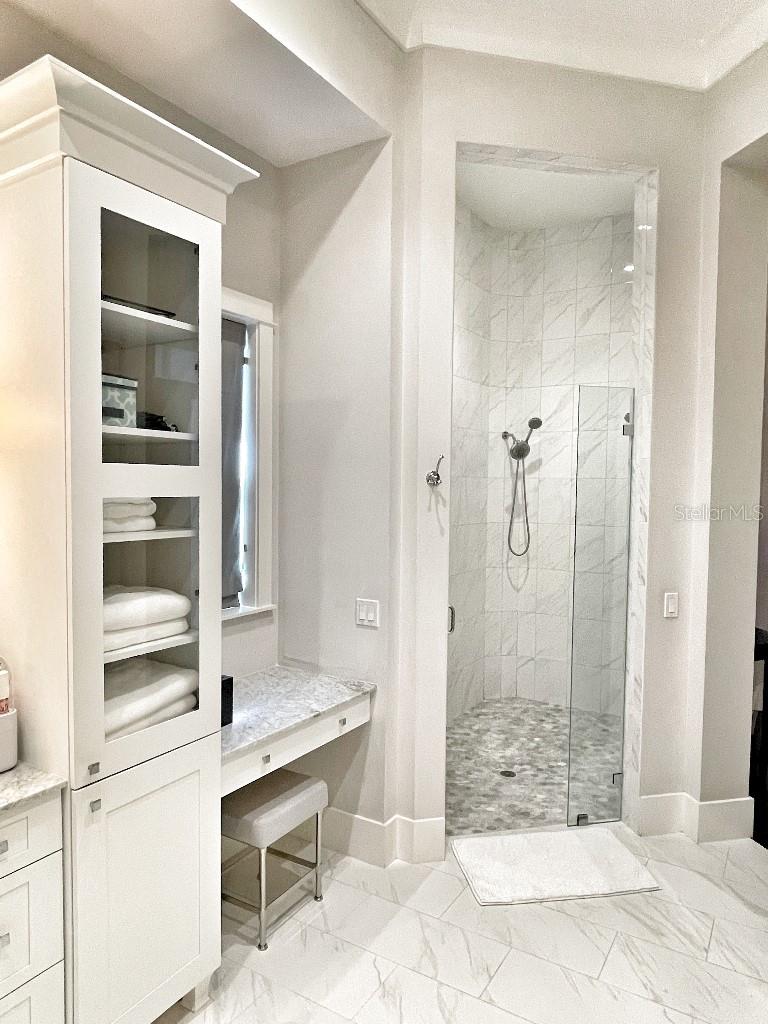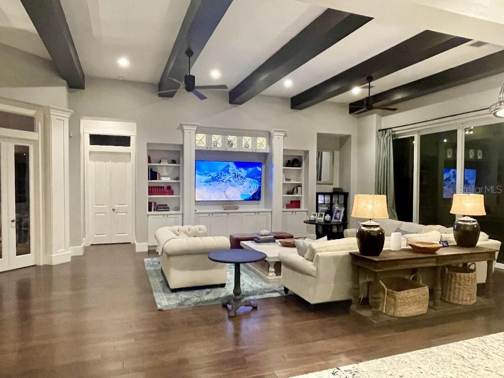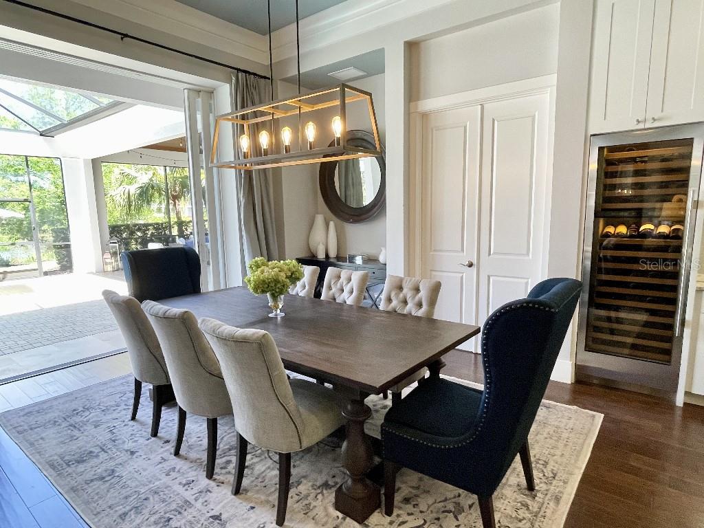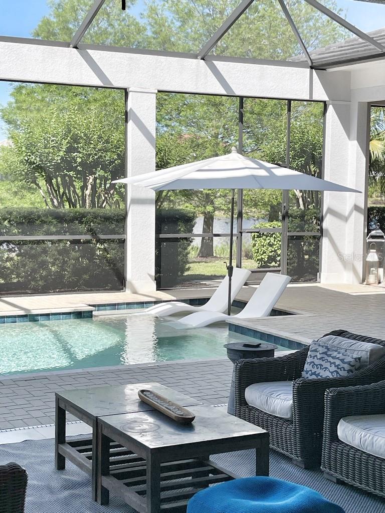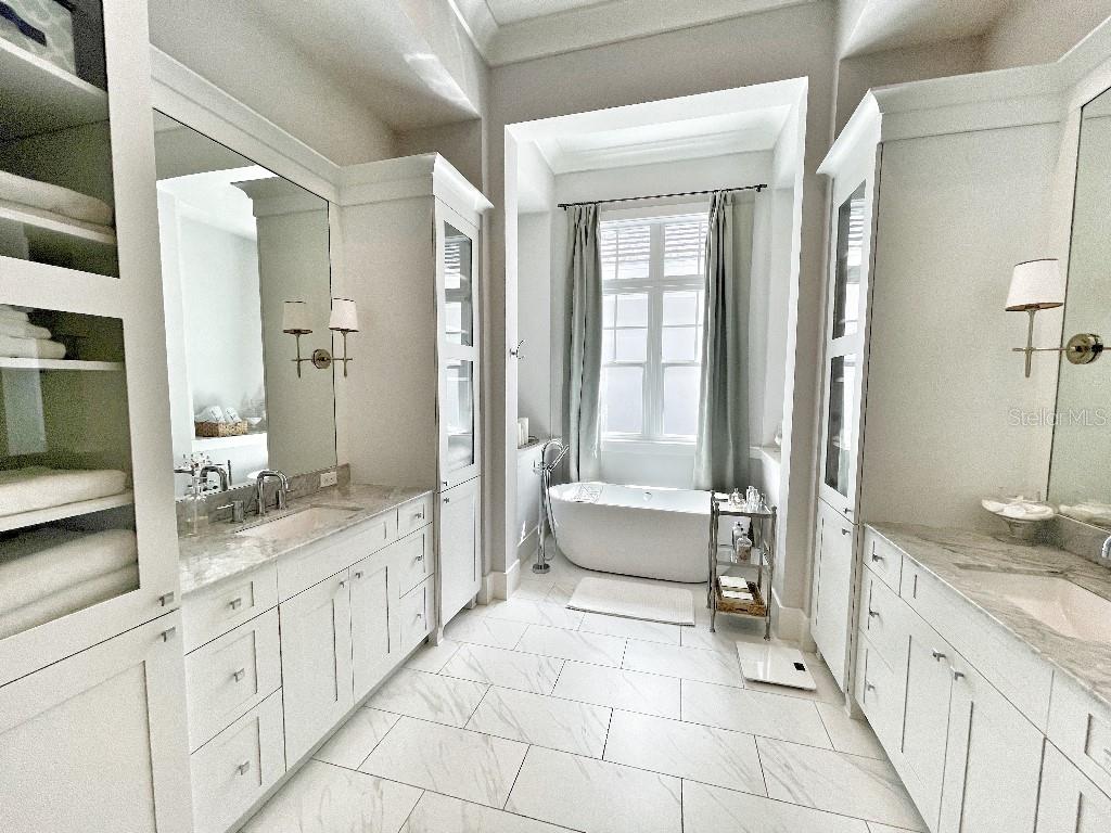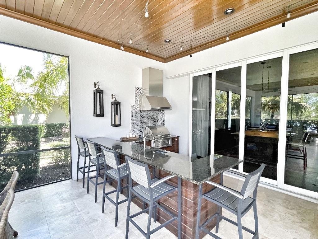 This is a rare opportunity to own an expansive, coastal contemporary lakefront home in the Lake Club, the most exclusive enclave of Lakewood Ranch. This custom-built home offers the pinnacle of relaxed luxury living with elegance and sophistication etched into every detail. Set in the heart of the Lake Club on a lakefront lot front by a serene linear park, this home provides a perfect balance of privacy and panoramic beauty. The architecture merges coastal elegance with contemporary grace, featuring soaring 13-foot ceilings that create an airy sanctuary on the first floor. Across 5,179 sq ft of impeccably designed interior living space incorporating 5 bedrooms and 4.5 baths and 7,829 Sq ft total under roof, the home hosts five bedrooms to comfortably accommodate family and guests. The heart of the home is the expansive great room and massive kitchen and island, equipped with a high-end Sub-Zero refrigerator, wine refrigerator, and Wolf dual-fuel stove, embodying the epitome of culinary luxury. Granite countertops and custom built-in cabinetry enhance the space, making it a hub for cooking and a centerpiece for social gatherings. The informal dining area is framed by zero corner sliders bar nook. In addition, two thoughtfully designed versatile spaces are attached to the great room, one currently used as a formal dining room and the other as an office. The main floor also includes a luxurious guest room with an ensuite bath. The seamless transition from the grand great room to the screened lanai through hurricane-rated pocket sliding doors invites the beauty of the outside in, offering a living experience that is both expansive and intimately connected with Florida's natural beauty. Step outside to a luxury outdoor living space with a gourmet kitchen, grill, refrigerator, and a seating area with a firepit overlooking the lake. Relax in the saltwater pool and hot tub, all overlooking stunning lake views that ensure endless relaxation and entertainment. The master suite is a sanctuary of luxury, complete with dual walk-in closets, an expansive walk-in shower, dual vanities, and a freestanding soaking tub. The thoughtfully designed and highly functional 2nd floor offers three additional bedrooms (one currently used as an office), two bathrooms, a movie room, another washer/dryer, a dedicated gym, and a beautiful screened-in patio perfect for catching the stunning sunrise and sunset over the lake. The Lake Club itself is a testament to luxury living, with amenities including a 20,000-square-foot grand clubhouse as the social heart of the Lake Club. Amenities abound: a restaurant and bar, two resort-style swimming pools, a fitness center, a massage and skincare room, a gaming and lifestyle center, and various sports facilities, including tennis, pickleball, and basketball courts. A dedicated staff provides a concierge luxury living experience and maintains a full calendar of social events. Located within a top-rated school district, with easy proximity to UTC Mall, dozens of restaurants, pristine beaches, and the vibrant Main Street and Waterside town centers of Lakewood Ranch, The Lake Club is more than a home; it's a lifestyle. Bedroom Closet Type: Walk-in Closet (Primary Bedroom).