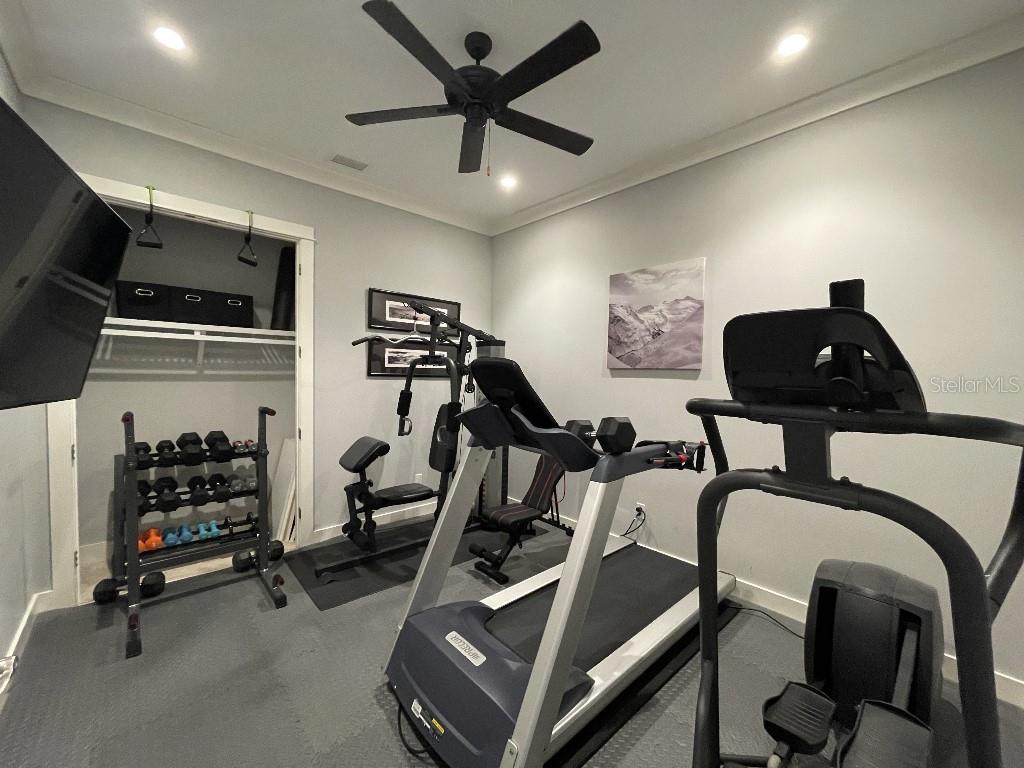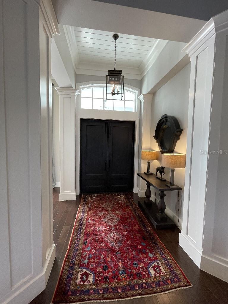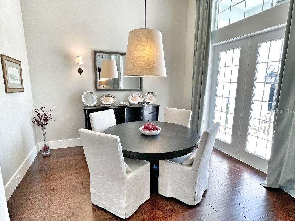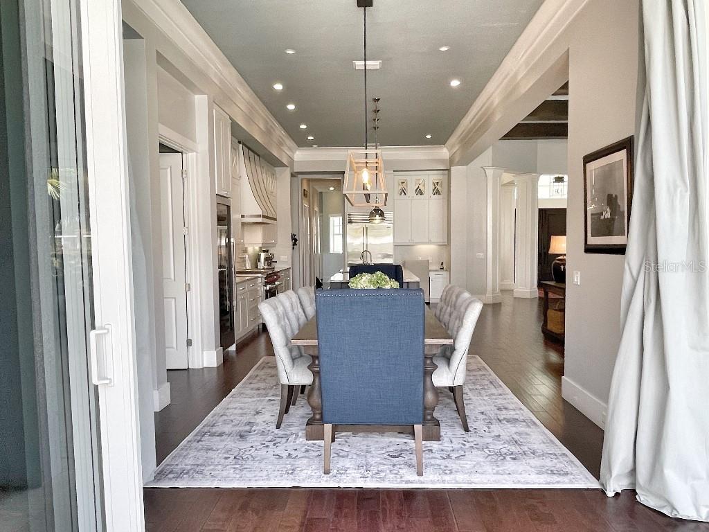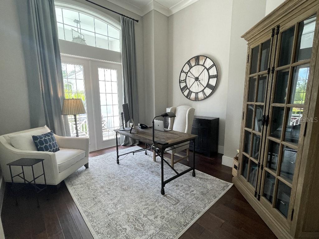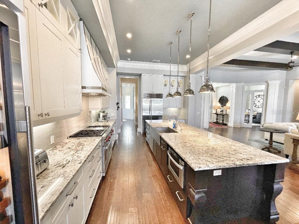This is a rare opportunity to own an expansive, coastal contemporary lakefront home in the Lake Club, the most exclusive enclave of Lakewood Ranch. This custom-built home offers the pinnacle of relaxed luxury living with elegance and sophistication etched into every detail. Set in the heart of the Lake Club on a lakefront lot front by a serene linear park, this home provides a perfect balance of privacy and panoramic beauty. The architecture merges coastal elegance with contemporary grace, featuring soaring 13-foot ceilings that create an airy sanctuary on the first floor. Across 5,179 sq ft of impeccably designed interior living space incorporating 5 bedrooms and 4.5 baths and 7,829 Sq ft total under roof, the home hosts five bedrooms to comfortably accommodate family and guests. The heart of the home is the expansive great room and massive kitchen and island, equipped with a high-end Sub-Zero refrigerator, wine refrigerator, and Wolf dual-fuel stove, embodying the epitome of culinary luxury. Granite countertops and custom built-in cabinetry enhance the space, making it a hub for cooking and a centerpiece for social gatherings. The informal dining area is framed by zero corner sliders bar nook. In addition, two thoughtfully designed versatile spaces are attached to the great room, one currently used as a formal dining room and the other as an office. The main floor also includes a luxurious guest room with an ensuite bath. The seamless transition from the grand great room to the screened lanai through hurricane-rated pocket sliding doors invites the beauty of the outside in, offering a living experience that is both expansive and intimately connected with Florida's natural beauty. Step outside to a luxury outdoor living space with a gourmet kitchen, grill, refrigerator, and a seating area with a firepit overlooking the lake. Relax in the saltwater pool and hot tub, all overlooking stunning lake views that ensure endless relaxation and entertainment. The master suite is a sanctuary of luxury, complete with dual walk-in closets, an expansive walk-in shower, dual vanities, and a freestanding soaking tub. The thoughtfully designed and highly functional 2nd floor offers three additional bedrooms (one currently used as an office), two bathrooms, a movie room, another washer/dryer, a dedicated gym, and a beautiful screened-in patio perfect for catching the stunning sunrise and sunset over the lake. The Lake Club itself is a testament to luxury living, with amenities including a 20,000-square-foot grand clubhouse as the social heart of the Lake Club. Amenities abound: a restaurant and bar, two resort-style swimming pools, a fitness center, a massage and skincare room, a gaming and lifestyle center, and various sports facilities, including tennis, pickleball, and basketball courts. A dedicated staff provides a concierge luxury living experience and maintains a full calendar of social events. Located within a top-rated school district, with easy proximity to UTC Mall, dozens of restaurants, pristine beaches, and the vibrant Main Street and Waterside town centers of Lakewood Ranch, The Lake Club is more than a home; it's a lifestyle. Bedroom Closet Type: Walk-in Closet (Primary Bedroom).