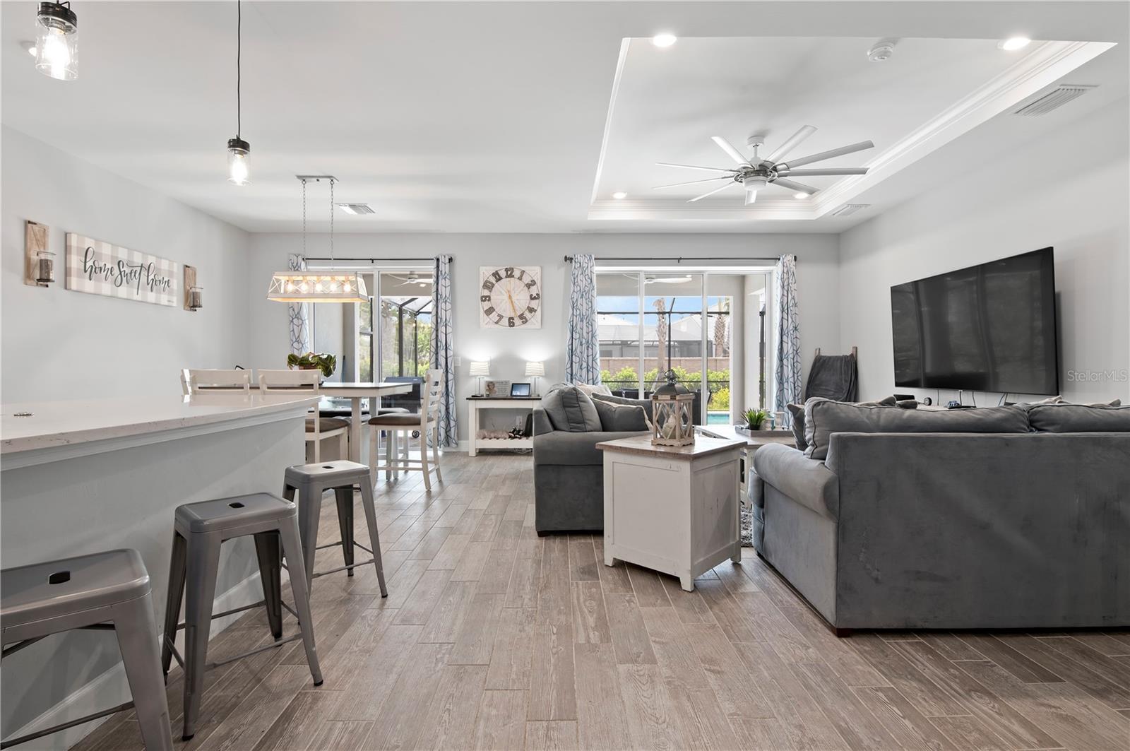 POOL - POOL - POOL with Spillover SPA and Screen Enclosure Luxury Living in Lakewood Ranch Welcome to your dream home in the heart of Lakewood Ranch! This exquisite 5-bedroom, 4-bathroom pool home, built just two years ago, embodies luxury and comfort at its finest. Thoughtful Design & Spacious Layout Step inside to discover a thoughtfully designed open floor plan that maximizes space and natural light, creating a warm and inviting atmosphere. The owner's suite, conveniently located on the main floor, serves as a tranquil retreat, featuring elegant finishes and ample privacy. Each area of the home is meticulously laid out, ensuring that there's no wasted space, making it perfect for family gatherings or entertaining guests. Gourmet Kitchen & Seamless Indoor-Outdoor Living Culinary enthusiasts will fall in love with the gourmet kitchen, complete with a spacious island and top-of-the-line appliances, including a gas stove. The heart of the home flows effortlessly to the lanai and pool area through stunning zero corner pocket slider doors, allowing you to enjoy breathtaking sunrises or unwind under the stars after a long day. Vibrant Community & Exceptional Amenities Located in Mallory Park, one of Lakewood Ranch's most sought-after villages, this home is surrounded by mature landscaping in a golf cart-friendly community. Residents enjoy access to a remarkable amenity center featuring a swimming pool, fitness center, pickleball and basketball courts, barbecue areas, and cozy fire pits. Just next door, Bob Gardner Park offers exciting playgrounds, a zip line, a dog park, scenic walking trails, ball fields, and even disc golf. Convenience & Peace of Mind With a private walking path leading directly to top-rated Lakewood Ranch Schools, daily commutes for the family are a breeze. Additionally, the property comes with the added assurance of a builders structural warranty that transfers to the new owner, allowing you to move in with complete peace of mind. Your New Home Awaits!