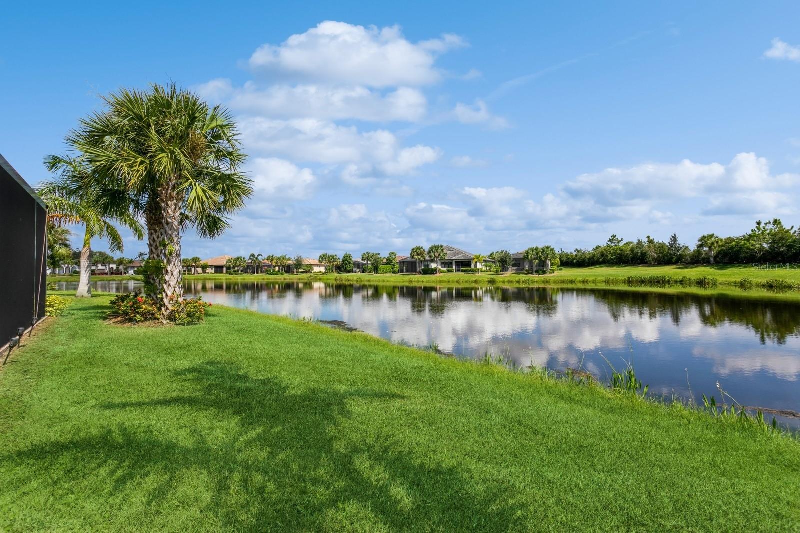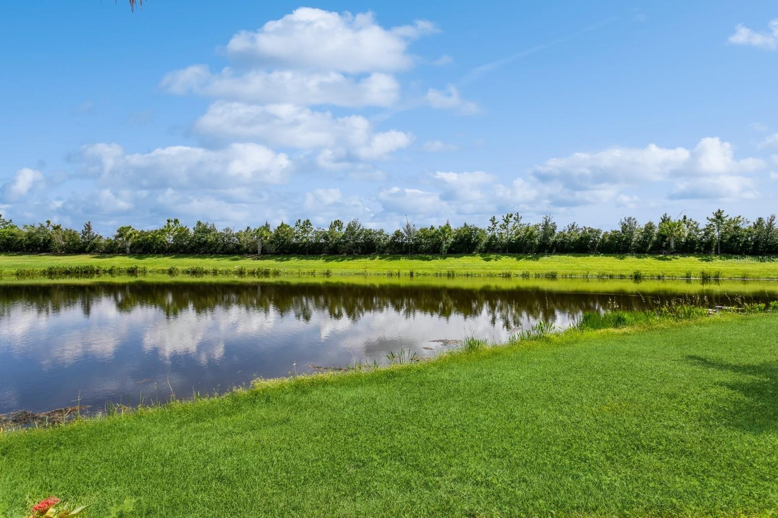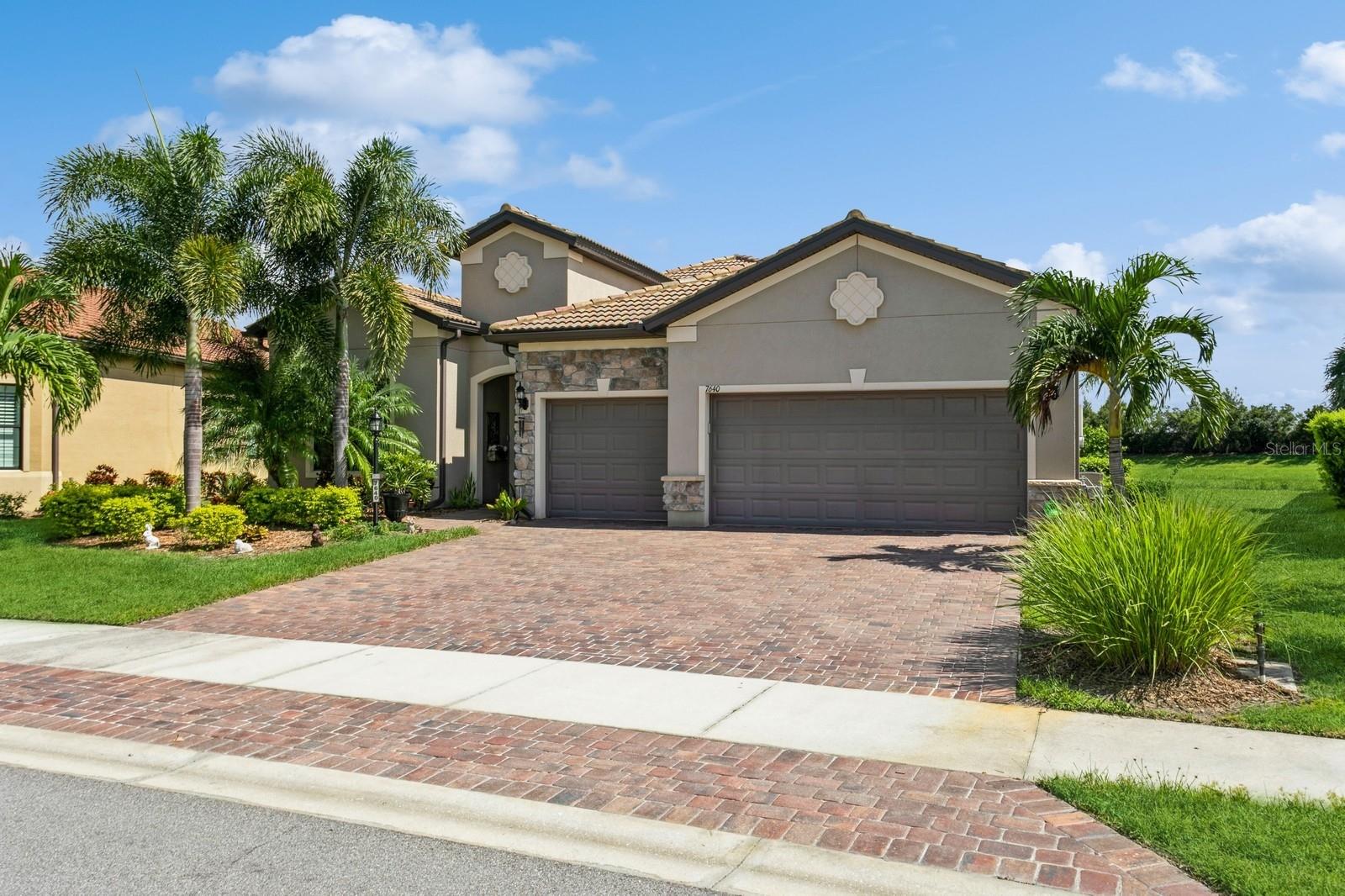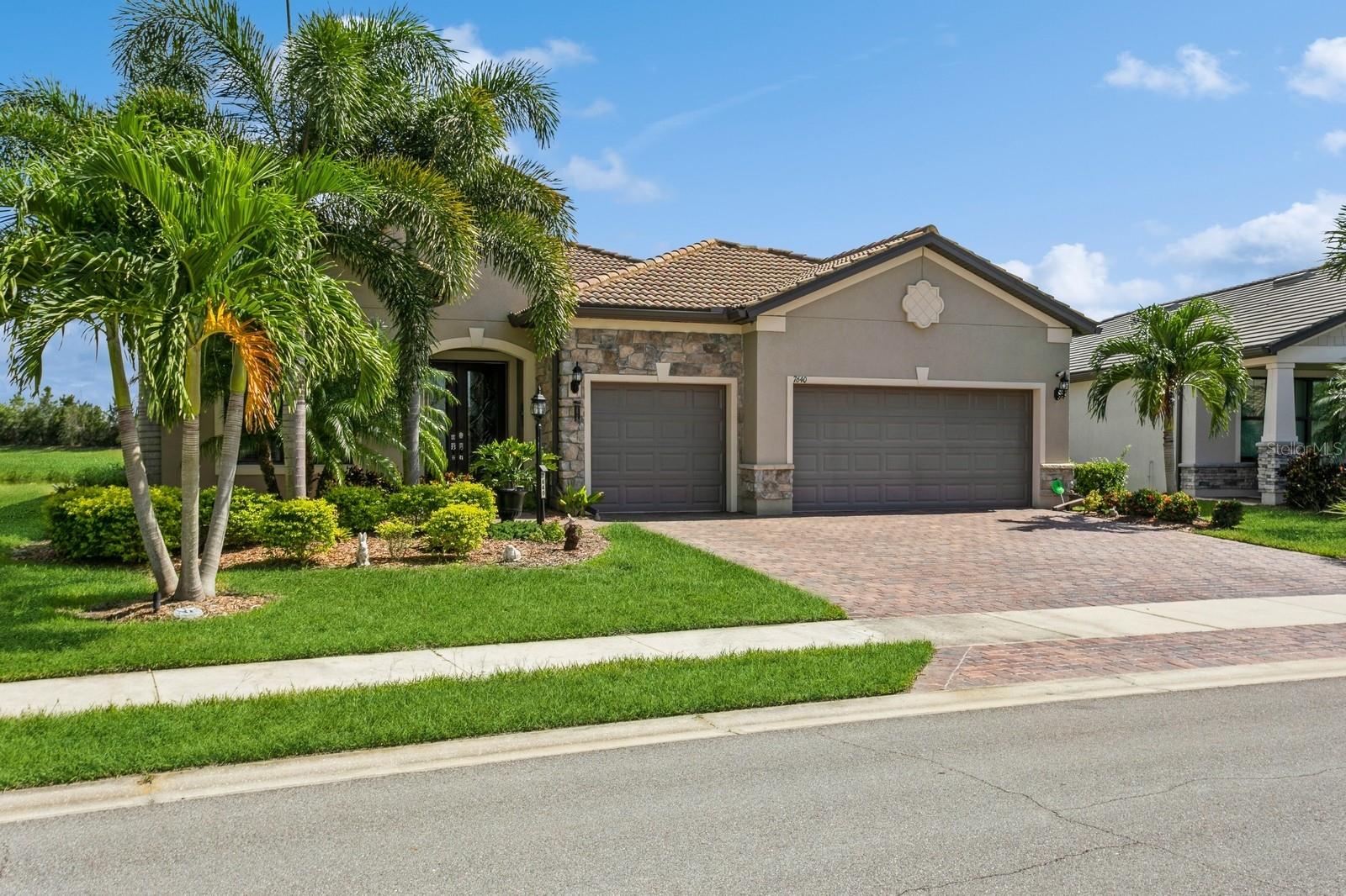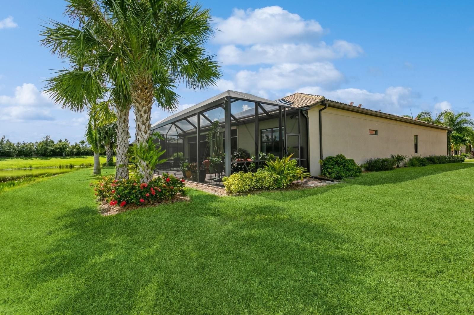 Elegant living can be yours in this HIGHLY SOUGHT AFTER GATED, 55+ DEL WEBB AT LAKEWOOD RANCH community. This stunning WATERFRONT Stonewater home is a designer's paradise featuring 3 Bedrooms, 3 FULL Bathrooms, & 3 CAR GARAGE WITH 4 FT EXT. Enter through the front Double Customs, Impact glass inserted, doors to the airy 12 FT high ceiling and private lake view that draws you to envision perfect entertaining on the 15 FT extended lanai with picture-frame screened cage. Porcelain tile flooring leads to the Great Dining room, Living room and Kitchen. Huge living room exudes an air of elegance with coffered ceiling, architectural Double Crown Molding, designer wall treatment, custom built-in cabinetry and ceiling speakers for surround sound entertainment. A Chef's dream kitchen features, premium KitchenAid stainless steel appliances, natural gas 5 burner cooktop, Double Convection wall ovens, counter depth French door refrigerator, large walk-in custom pantry. Premium stacked cabinetry with glass uppers for displays, 9.5 FT Quartz Island with large COMPOSITE sink, Touch Flow Faucet, INSTANT-HOT Water Tank. Added bonus of a DRY BAR with WINE COOLER in custom cabinets, elegant Crystal chandeliers, Marble mirrored back splash to complete this high in look. Primary bedroom suite, with lake and sunrise views has CROWN MOLDING, TRAY CEILING, Crystal glass Ceiling Fan, Glass double barn doors lead to EXTENDED SHOWER with Bench, Double Sinks, Granite countertop, private water closet, additional cabinetry for storage and generous Custom Finished Walk-In Closet! Bedrooms 2 has POCKET Door entry for privacy, Crystal Ceiling fan, crown molding, upgraded glass door shower, granite vanity top, custom closet shelving. Bedroom 3 has POCKET door for privacy, crystal ceiling fan, crown molding, Full bath with tiled tub/shower combination. The laundry room is designed for maximum storage with huge stainless-steel sink vanity with double upper cabinets, Full wall of FLOOR TO CEILING storage cabinets and LED expanded lighting for brightness. Entertain on the large lanai with the natural gas outdoor kitchen, featuring refrigerator, sink, gas grill, granite countertop and back splash. Custom granite countertop cabinetry to store equipment for outdoor theater with surround sound. Remote controlled drop-down HURRICANE SCREENS for added protection. Hurricane shutter for perfect fit over windows provide peace of mind. Professional landscape lighting for added ambiance, in front and back. This "SMART House" you experience LOW monthly electric bills due to the excellent 24 TESLA SOLAR PANELS which supply full power home usage, 2 TESLA POWERWALLS as generators. Security features ADT cameras, alarms, Nest doorbell, thermostat and Whole House Surge Protector! TANKLESS WATER HEATER and Water Softener enhances efficiency. Extended Garage has 2- 220V ELECTRIC CAR CHARGING STATIONS, exterior garage Keypad, rubberized flooring, tool boards and abundant built in cabinets. HOA dues provide lawn Maintenance and Irrigation System with reclaimed water. Enjoy Active Resort Style living throughout community starting at the 28,000 square foot "Oasis" amenity clubhouse, full-time lifestyle director, state-of-art Fitness room with classes, 2 heated pools and spa, card/game room, billiards, art classes, a plethora of activities/evening entertainment posted on monthly calendar. Outside tennis, pickleball, Disc golf, Bocce ball, walking trails and water volleyball.