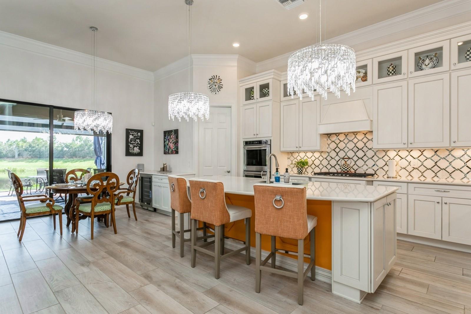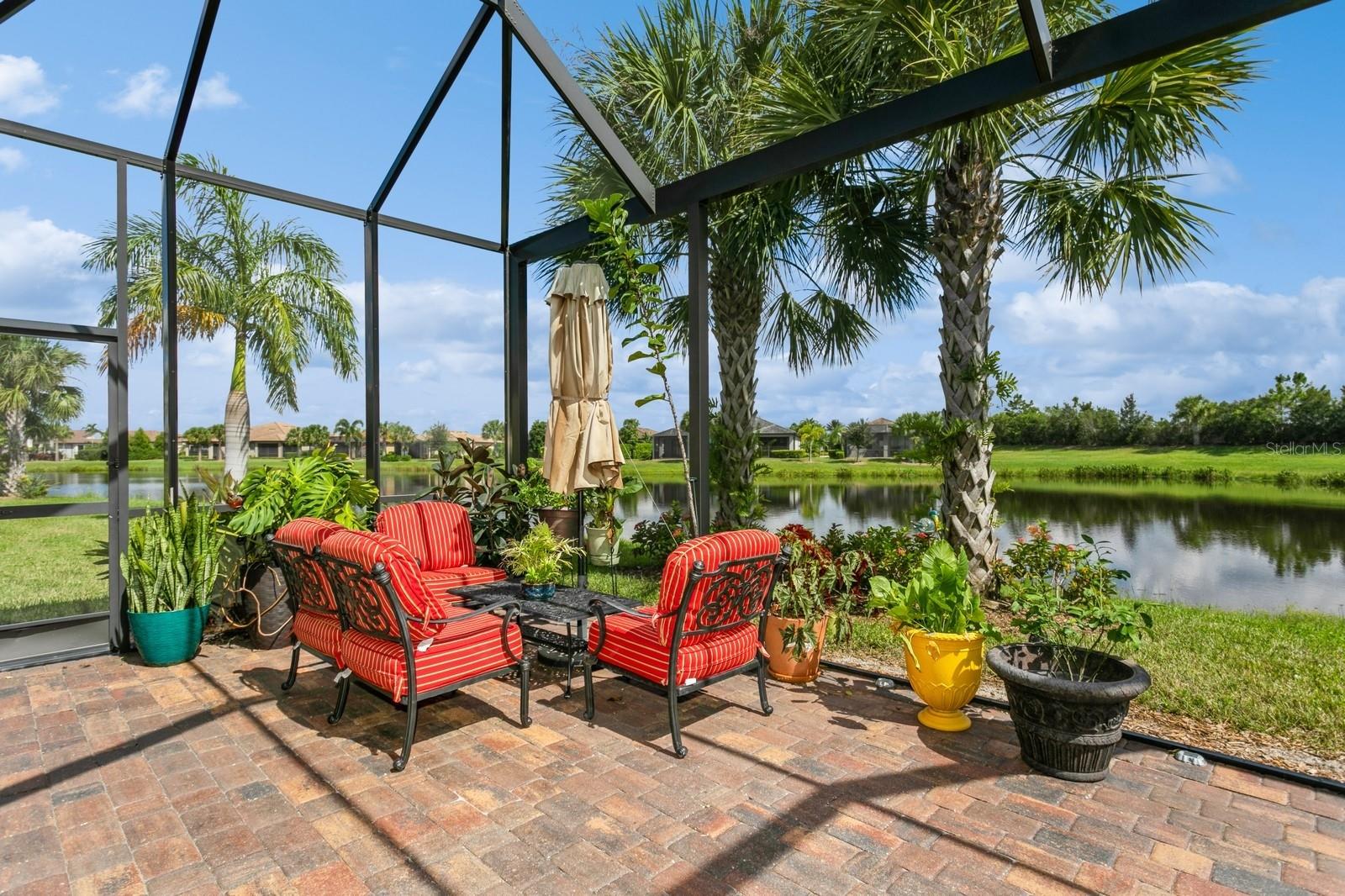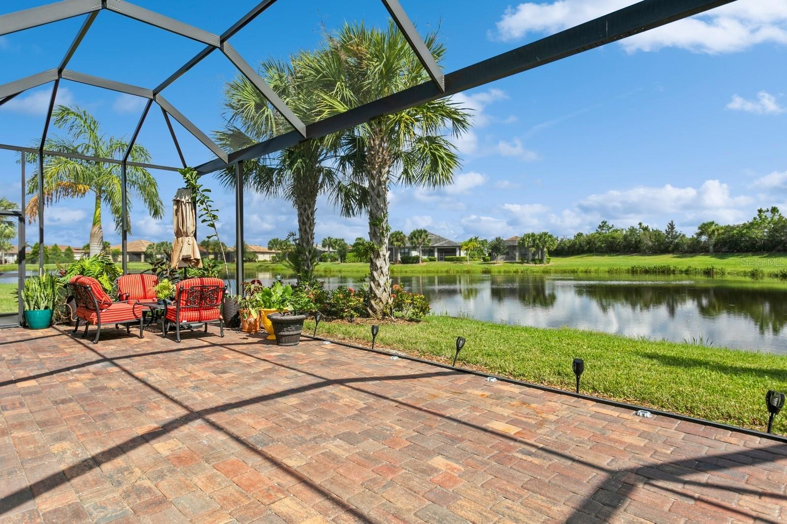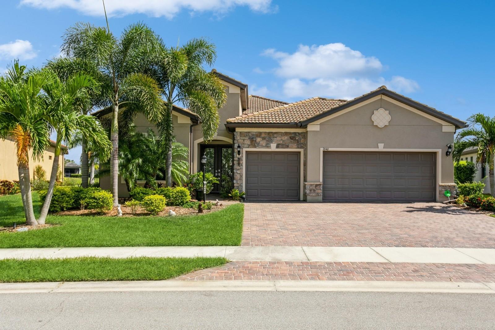 Elegant living can be yours in this HIGHLY SOUGHT AFTER GATED, 55+ DEL WEBB AT LAKEWOOD RANCH community. This stunning WATERFRONT Stonewater home is a designer's paradise featuring 3 Bedrooms, 3 FULL Bathrooms, & 3 CAR GARAGE WITH 4 FT EXT. Enter through the front Double Customs, Impact glass inserted, doors to the airy 12 FT high ceiling and private lake view that draws you to envision perfect entertaining on the 15 FT extended lanai with picture-frame screened cage. Porcelain tile flooring leads to the Great Dining room, Living room and Kitchen. Huge living room exudes an air of elegance with coffered ceiling, architectural Double Crown Molding, designer wall treatment, custom built-in cabinetry and ceiling speakers for surround sound entertainment. A Chef's dream kitchen features, premium KitchenAid stainless steel appliances, natural gas 5 burner cooktop, Double Convection wall ovens, counter depth French door refrigerator, large walk-in custom pantry. Premium stacked cabinetry with glass uppers for displays, 9.5 FT Quartz Island with large COMPOSITE sink, Touch Flow Faucet, INSTANT-HOT Water Tank. Added bonus of a DRY BAR with WINE COOLER in custom cabinets, elegant Crystal chandeliers, Marble mirrored back splash to complete this high in look. Primary bedroom suite, with lake and sunrise views has CROWN MOLDING, TRAY CEILING, Crystal glass Ceiling Fan, Glass double barn doors lead to EXTENDED SHOWER with Bench, Double Sinks, Granite countertop, private water closet, additional cabinetry for storage and generous Custom Finished Walk-In Closet! Bedrooms 2 has POCKET Door entry for privacy, Crystal Ceiling fan, crown molding, upgraded glass door shower, granite vanity top, custom closet shelving. Bedroom 3 has POCKET door for privacy, crystal ceiling fan, crown molding, Full bath with tiled tub/shower combination. The laundry room is designed for maximum storage with huge stainless-steel sink vanity with double upper cabinets, Full wall of FLOOR TO CEILING storage cabinets and LED expanded lighting for brightness. Entertain on the large lanai with the natural gas outdoor kitchen, featuring refrigerator, sink, gas grill, granite countertop and back splash. Custom granite countertop cabinetry to store equipment for outdoor theater with surround sound. Remote controlled drop-down HURRICANE SCREENS for added protection. Hurricane shutter for perfect fit over windows provide peace of mind. Professional landscape lighting for added ambiance, in front and back. This "SMART House" you experience LOW monthly electric bills due to the excellent 24 TESLA SOLAR PANELS which supply full power home usage, 2 TESLA POWERWALLS as generators. Security features ADT cameras, alarms, Nest doorbell, thermostat and Whole House Surge Protector! TANKLESS WATER HEATER and Water Softener enhances efficiency. Extended Garage has 2- 220V ELECTRIC CAR CHARGING STATIONS, exterior garage Keypad, rubberized flooring, tool boards and abundant built in cabinets. HOA dues provide lawn Maintenance and Irrigation System with reclaimed water. Enjoy Active Resort Style living throughout community starting at the 28,000 square foot "Oasis" amenity clubhouse, full-time lifestyle director, state-of-art Fitness room with classes, 2 heated pools and spa, card/game room, billiards, art classes, a plethora of activities/evening entertainment posted on monthly calendar. Outside tennis, pickleball, Disc golf, Bocce ball, walking trails and water volleyball.