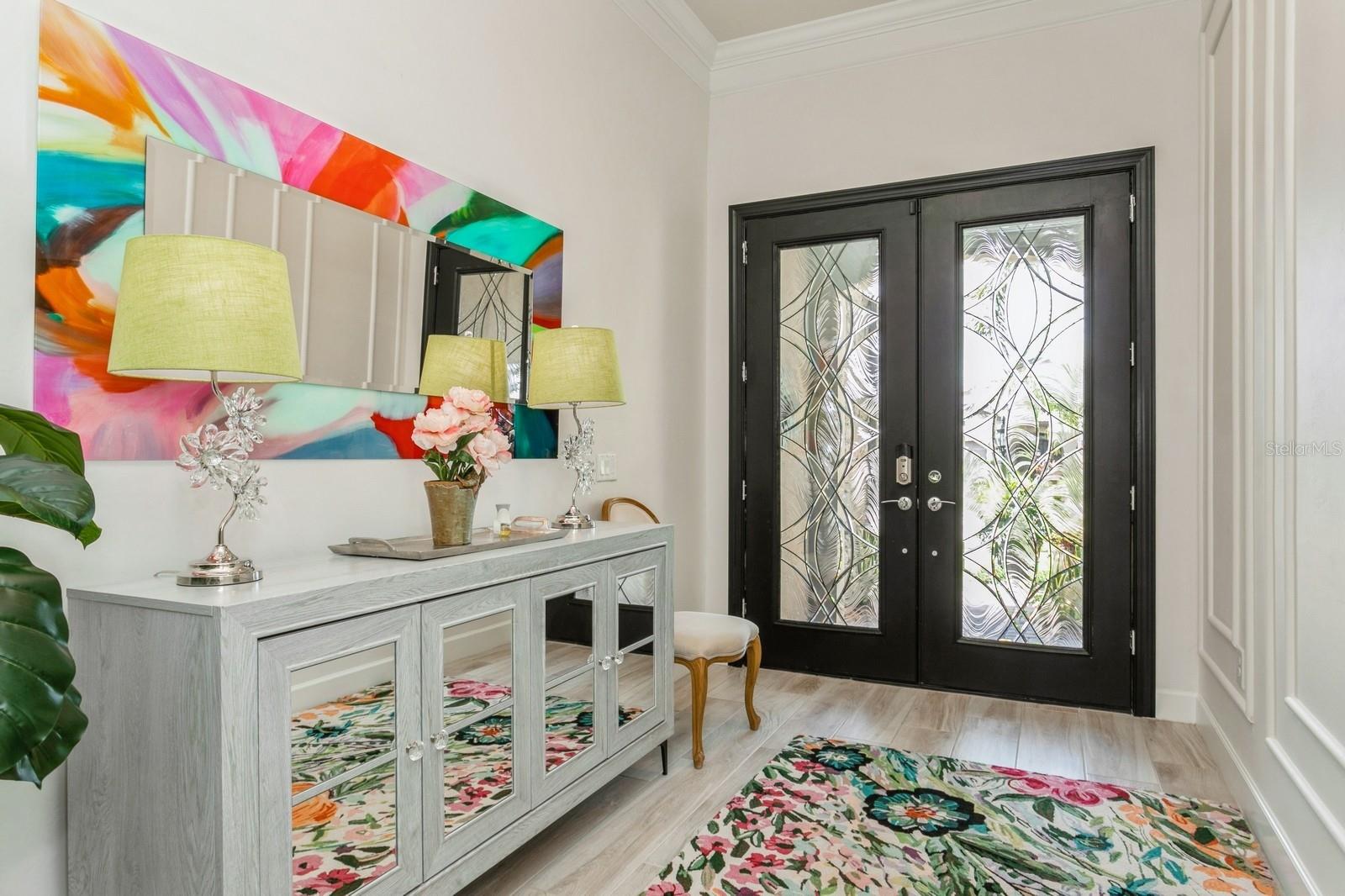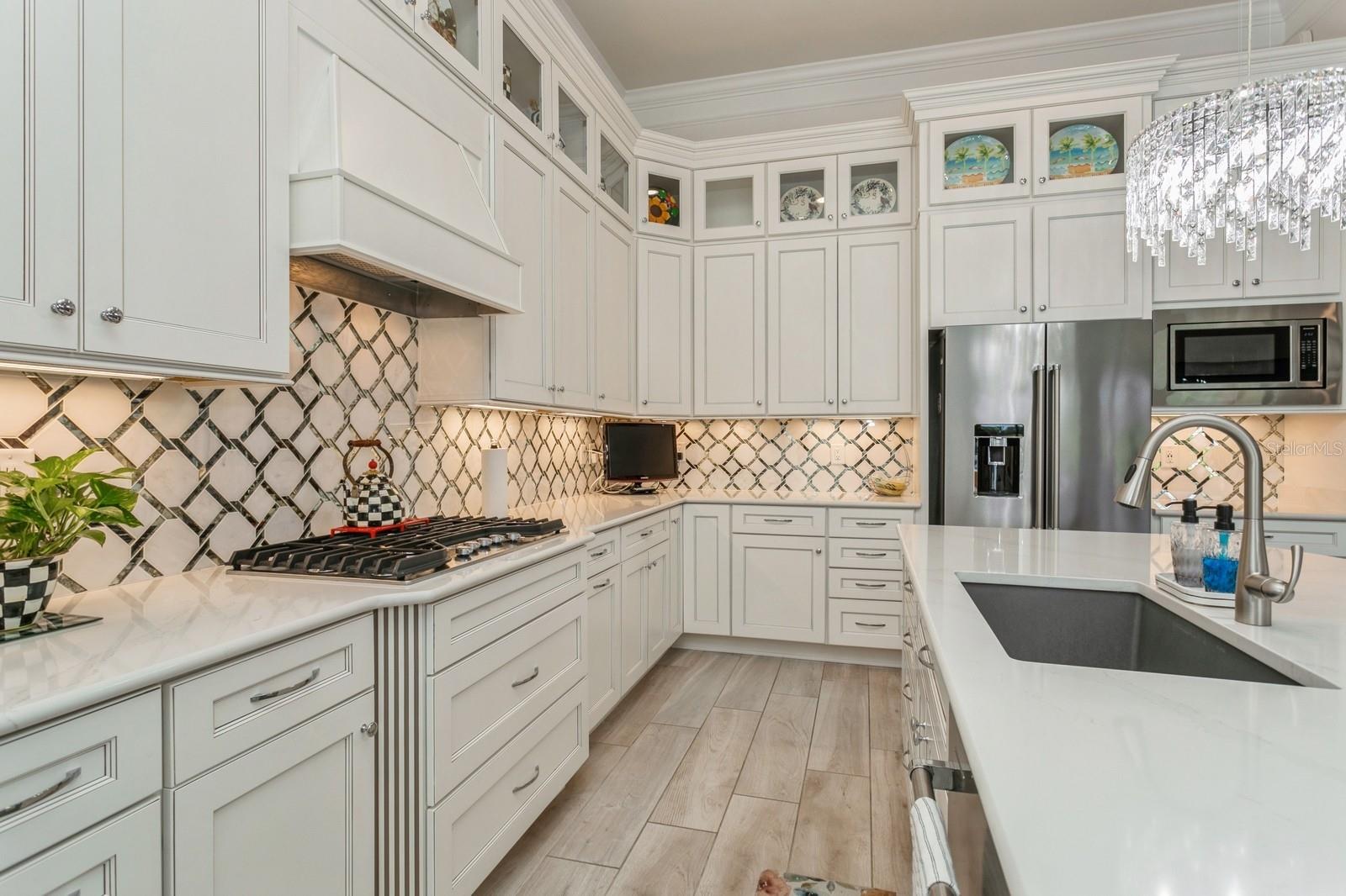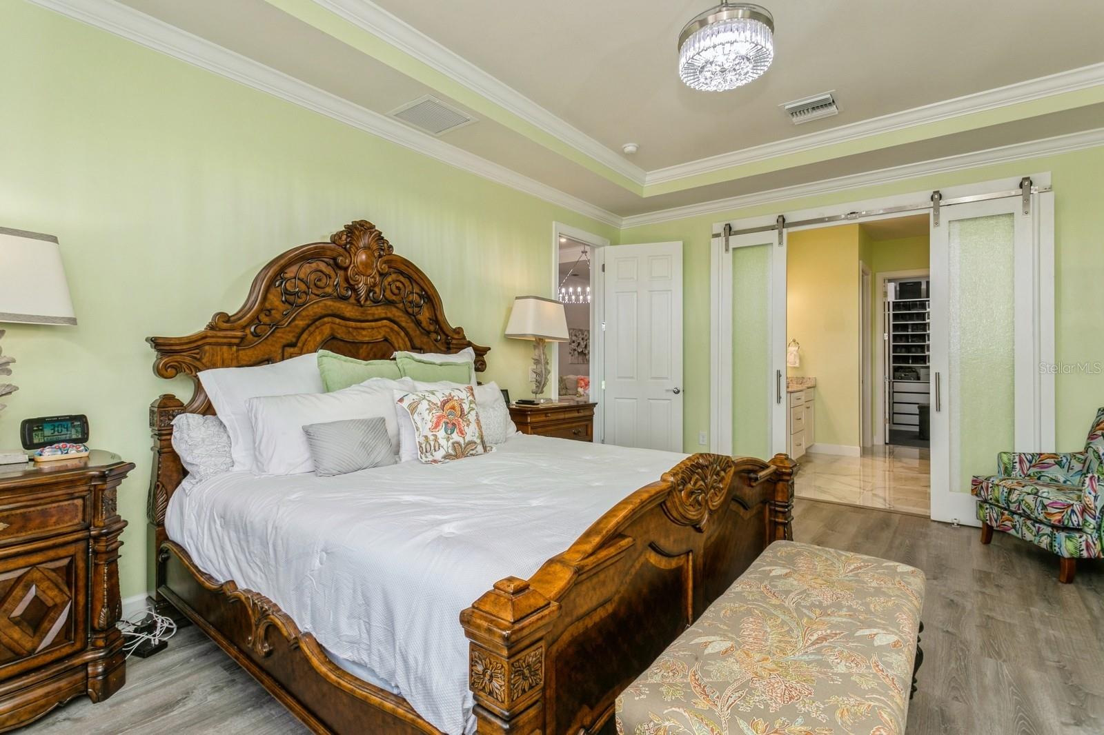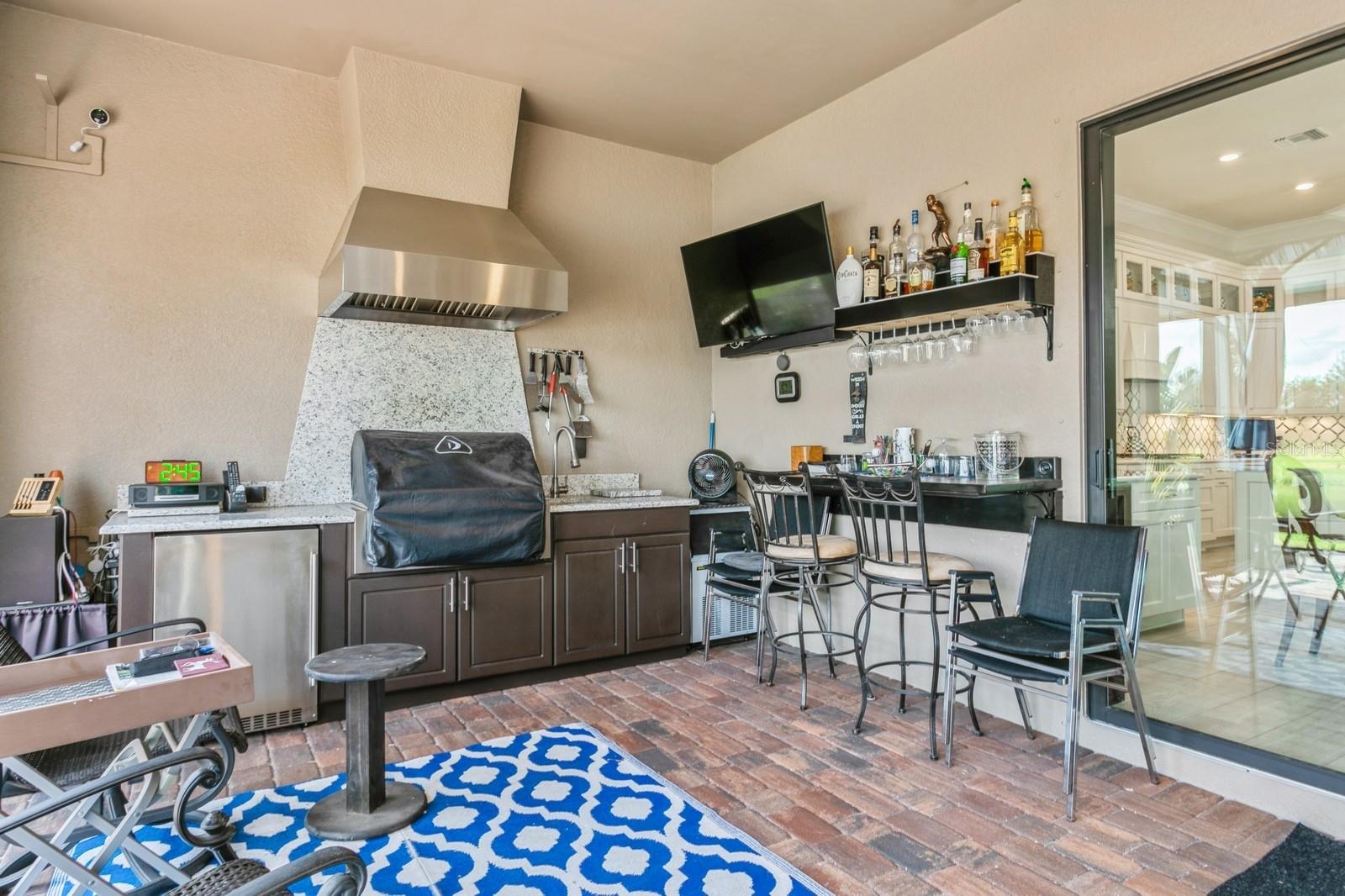 Elegant living can be yours in this HIGHLY SOUGHT AFTER GATED, 55+ DEL WEBB AT LAKEWOOD RANCH community. This stunning WATERFRONT Stonewater home is a designer's paradise featuring 3 Bedrooms, 3 FULL Bathrooms, & 3 CAR GARAGE WITH 4 FT EXT. Enter through the front Double Customs, Impact glass inserted, doors to the airy 12 FT high ceiling and private lake view that draws you to envision perfect entertaining on the 15 FT extended lanai with picture-frame screened cage. Porcelain tile flooring leads to the Great Dining room, Living room and Kitchen. Huge living room exudes an air of elegance with coffered ceiling, architectural Double Crown Molding, designer wall treatment, custom built-in cabinetry and ceiling speakers for surround sound entertainment. A Chef's dream kitchen features, premium KitchenAid stainless steel appliances, natural gas 5 burner cooktop, Double Convection wall ovens, counter depth French door refrigerator, large walk-in custom pantry. Premium stacked cabinetry with glass uppers for displays, 9.5 FT Quartz Island with large COMPOSITE sink, Touch Flow Faucet, INSTANT-HOT Water Tank. Added bonus of a DRY BAR with WINE COOLER in custom cabinets, elegant Crystal chandeliers, Marble mirrored back splash to complete this high in look. Primary bedroom suite, with lake and sunrise views has CROWN MOLDING, TRAY CEILING, Crystal glass Ceiling Fan, Glass double barn doors lead to EXTENDED SHOWER with Bench, Double Sinks, Granite countertop, private water closet, additional cabinetry for storage and generous Custom Finished Walk-In Closet! Bedrooms 2 has POCKET Door entry for privacy, Crystal Ceiling fan, crown molding, upgraded glass door shower, granite vanity top, custom closet shelving. Bedroom 3 has POCKET door for privacy, crystal ceiling fan, crown molding, Full bath with tiled tub/shower combination. The laundry room is designed for maximum storage with huge stainless-steel sink vanity with double upper cabinets, Full wall of FLOOR TO CEILING storage cabinets and LED expanded lighting for brightness. Entertain on the large lanai with the natural gas outdoor kitchen, featuring refrigerator, sink, gas grill, granite countertop and back splash. Custom granite countertop cabinetry to store equipment for outdoor theater with surround sound. Remote controlled drop-down HURRICANE SCREENS for added protection. Hurricane shutter for perfect fit over windows provide peace of mind. Professional landscape lighting for added ambiance, in front and back. This "SMART House" you experience LOW monthly electric bills due to the excellent 24 TESLA SOLAR PANELS which supply full power home usage, 2 TESLA POWERWALLS as generators. Security features ADT cameras, alarms, Nest doorbell, thermostat and Whole House Surge Protector! TANKLESS WATER HEATER and Water Softener enhances efficiency. Extended Garage has 2- 220V ELECTRIC CAR CHARGING STATIONS, exterior garage Keypad, rubberized flooring, tool boards and abundant built in cabinets. HOA dues provide lawn Maintenance and Irrigation System with reclaimed water. Enjoy Active Resort Style living throughout community starting at the 28,000 square foot "Oasis" amenity clubhouse, full-time lifestyle director, state-of-art Fitness room with classes, 2 heated pools and spa, card/game room, billiards, art classes, a plethora of activities/evening entertainment posted on monthly calendar. Outside tennis, pickleball, Disc golf, Bocce ball, walking trails and water volleyball.