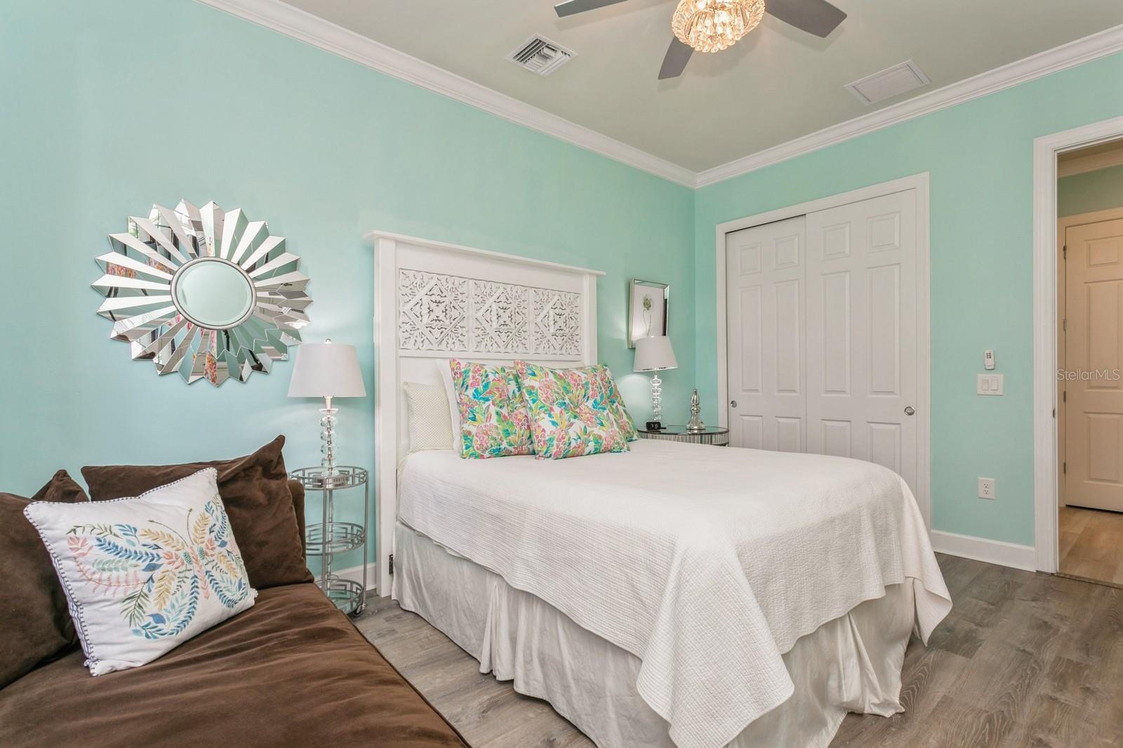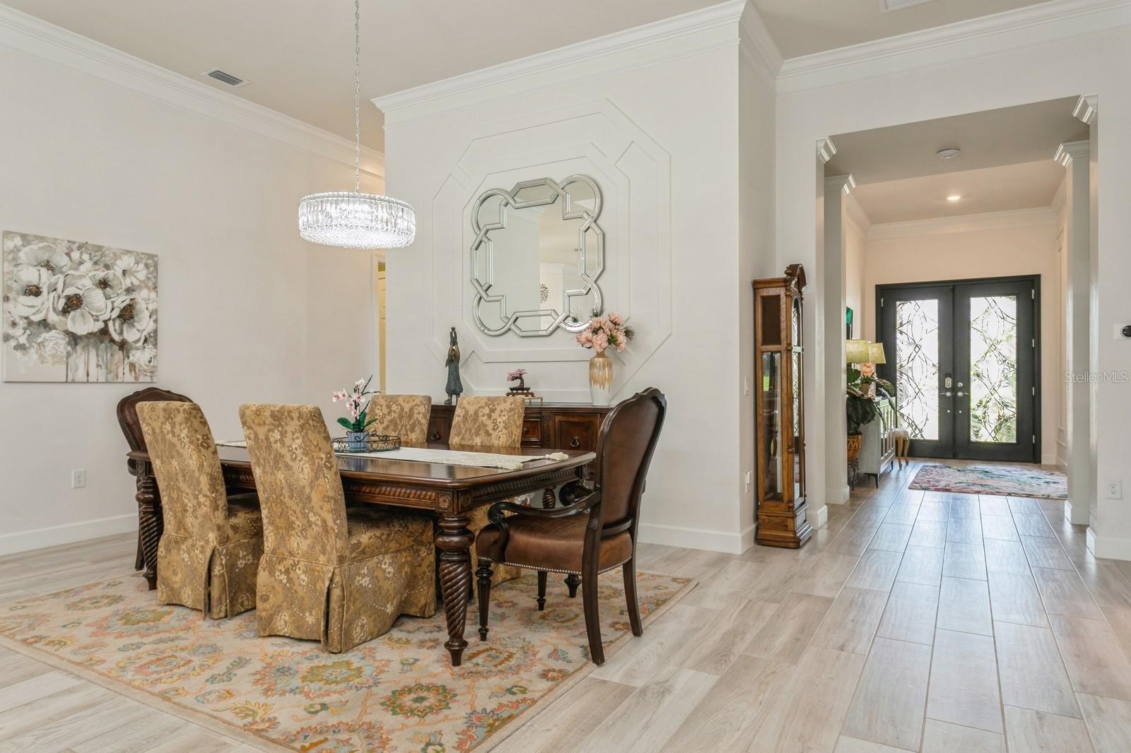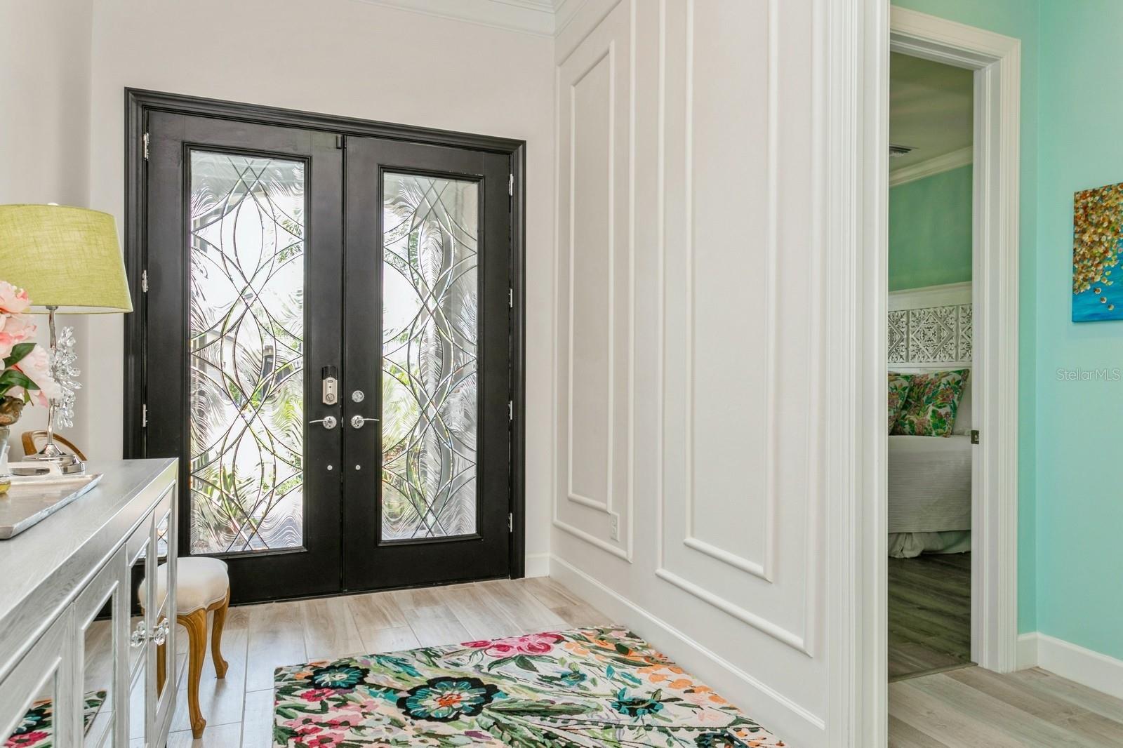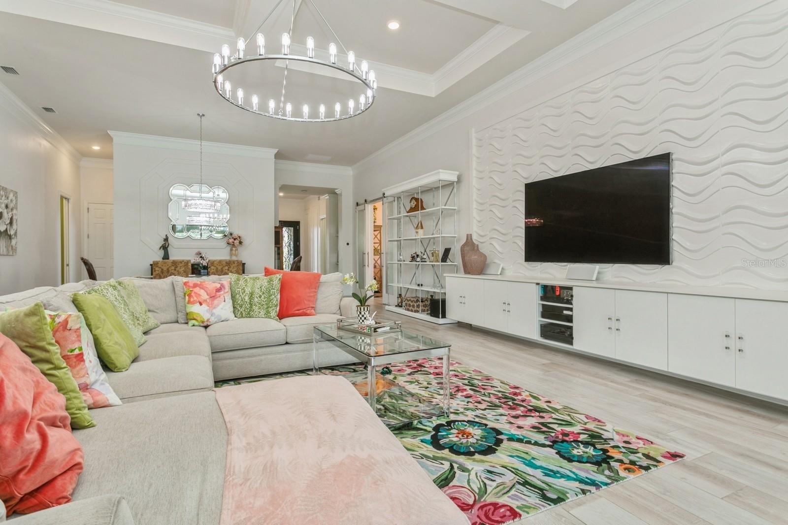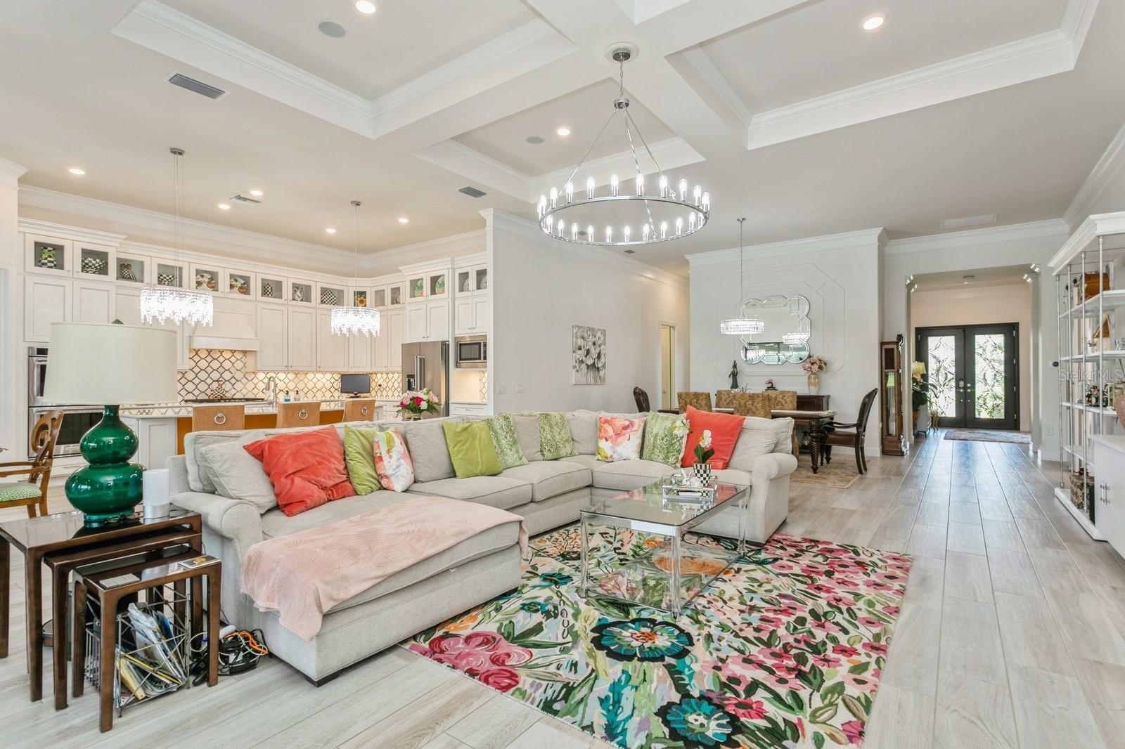 Elegant living can be yours in this HIGHLY SOUGHT AFTER GATED, 55+ DEL WEBB AT LAKEWOOD RANCH community. This stunning WATERFRONT Stonewater home is a designer's paradise featuring 3 Bedrooms, 3 FULL Bathrooms, & 3 CAR GARAGE WITH 4 FT EXT. Enter through the front Double Customs, Impact glass inserted, doors to the airy 12 FT high ceiling and private lake view that draws you to envision perfect entertaining on the 15 FT extended lanai with picture-frame screened cage. Porcelain tile flooring leads to the Great Dining room, Living room and Kitchen. Huge living room exudes an air of elegance with coffered ceiling, architectural Double Crown Molding, designer wall treatment, custom built-in cabinetry and ceiling speakers for surround sound entertainment. A Chef's dream kitchen features, premium KitchenAid stainless steel appliances, natural gas 5 burner cooktop, Double Convection wall ovens, counter depth French door refrigerator, large walk-in custom pantry. Premium stacked cabinetry with glass uppers for displays, 9.5 FT Quartz Island with large COMPOSITE sink, Touch Flow Faucet, INSTANT-HOT Water Tank. Added bonus of a DRY BAR with WINE COOLER in custom cabinets, elegant Crystal chandeliers, Marble mirrored back splash to complete this high in look. Primary bedroom suite, with lake and sunrise views has CROWN MOLDING, TRAY CEILING, Crystal glass Ceiling Fan, Glass double barn doors lead to EXTENDED SHOWER with Bench, Double Sinks, Granite countertop, private water closet, additional cabinetry for storage and generous Custom Finished Walk-In Closet! Bedrooms 2 has POCKET Door entry for privacy, Crystal Ceiling fan, crown molding, upgraded glass door shower, granite vanity top, custom closet shelving. Bedroom 3 has POCKET door for privacy, crystal ceiling fan, crown molding, Full bath with tiled tub/shower combination. The laundry room is designed for maximum storage with huge stainless-steel sink vanity with double upper cabinets, Full wall of FLOOR TO CEILING storage cabinets and LED expanded lighting for brightness. Entertain on the large lanai with the natural gas outdoor kitchen, featuring refrigerator, sink, gas grill, granite countertop and back splash. Custom granite countertop cabinetry to store equipment for outdoor theater with surround sound. Remote controlled drop-down HURRICANE SCREENS for added protection. Hurricane shutter for perfect fit over windows provide peace of mind. Professional landscape lighting for added ambiance, in front and back. This "SMART House" you experience LOW monthly electric bills due to the excellent 24 TESLA SOLAR PANELS which supply full power home usage, 2 TESLA POWERWALLS as generators. Security features ADT cameras, alarms, Nest doorbell, thermostat and Whole House Surge Protector! TANKLESS WATER HEATER and Water Softener enhances efficiency. Extended Garage has 2- 220V ELECTRIC CAR CHARGING STATIONS, exterior garage Keypad, rubberized flooring, tool boards and abundant built in cabinets. HOA dues provide lawn Maintenance and Irrigation System with reclaimed water. Enjoy Active Resort Style living throughout community starting at the 28,000 square foot "Oasis" amenity clubhouse, full-time lifestyle director, state-of-art Fitness room with classes, 2 heated pools and spa, card/game room, billiards, art classes, a plethora of activities/evening entertainment posted on monthly calendar. Outside tennis, pickleball, Disc golf, Bocce ball, walking trails and water volleyball.