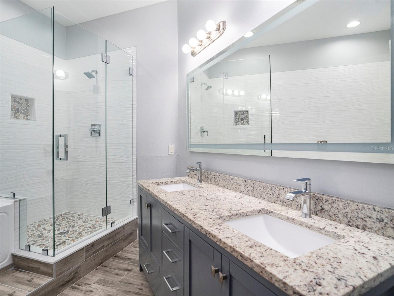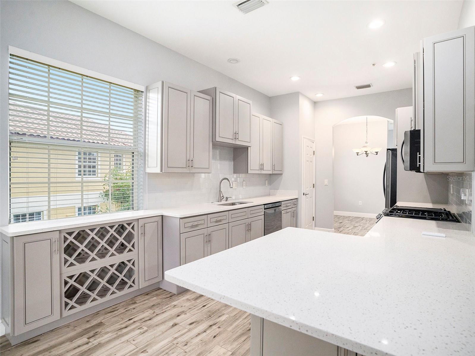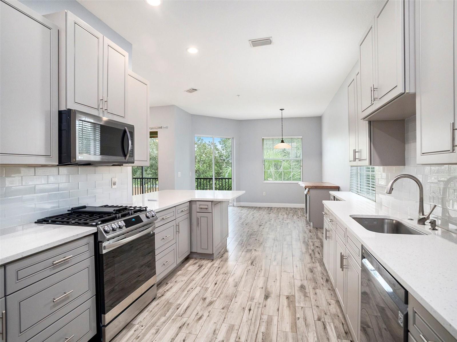 Discover a rare gem in the highly desirable gated community of Miramar—this stunning 4-bedroom, 2-bathroom end-unit townhome offers the perfect blend of luxurious comfort and one-story convenience. With soaring ceilings and an open-concept design, the home feels expansive and airy. The gourmet kitchen is a chef’s dream, featuring raised-panel soft-close cabinetry, sleek stainless steel appliances, a gas range, built-in wine rack, and quartz countertops. Enjoy casual dining at the bar-height counter, which flows seamlessly into the inviting great room—perfect for both entertaining and daily living. The home is adorned with modern plank porcelain tile flooring throughout, lending elegance and durability to every space. The flexible floorplan includes two dining areas, a cozy eat-in kitchen, and a utility room with front-load washer and dryer for added convenience. The master suite serves as a luxurious retreat, with two walk-in closets and a spa-like en suite bathroom complete with a double vanity, illuminated mirror, heated and jetted tub, and an oversized shower. Enjoy direct access to your private balcony from the master suite, great room, or breakfast nook, ideal for quiet mornings or evening relaxation. Resort-Style Amenities at Your Fingertips Miramar offers a wealth of amenities, including a heated pool, hot tub, spa, and a scenic outdoor tiki area. The clubhouse features a fully equipped kitchen, fitness center, and restrooms with locker facilities. A summer kitchen is available for outdoor grilling, perfect for gatherings under the Florida sun. All of these exceptional amenities are available at no additional cost to residents. Located just moments from I-75, Lakewood Ranch Main Street, and Waterside, and within walking distance to shops and restaurants, this townhome combines luxurious living with unmatched convenience. Don’t miss the opportunity to live large in this elegant one-level townhome at Miramar!