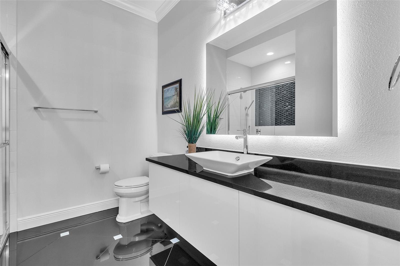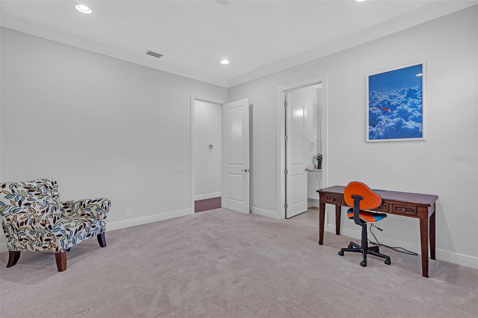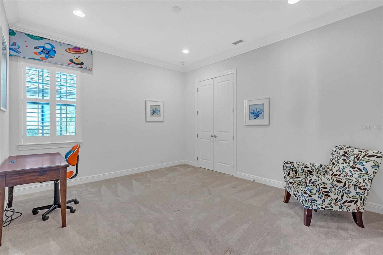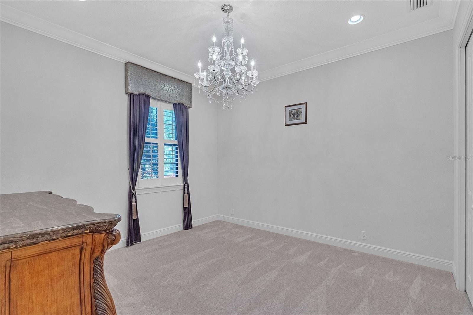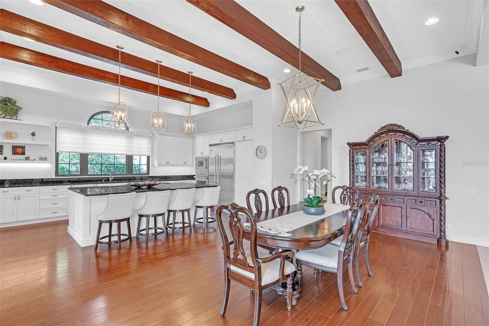 Discover this stunning custom home featuring 3 bedrooms, 3.5 bathrooms, a bonus room, and an office, built by John Cannon. Located in the beautiful enclave of a gated community in Country Club East, this elegant residence boasts magnificent arched double iron-glass front doors that define the entry. The open living space showcases 12-foot beamed ceilings and a gas fireplace. The gourmet chef's kitchen is equipped with custom cabinets, granite countertops, top-of-the-line Viking appliances, and a walk-in pantry. A massive island provides ample space for entertainment. The large bonus room offers flexible space for media and entertainment, while the spacious office adds functionality. The master bedroom suite features a generous layout, sitting area, and dual walk-in closets. The luxurious master bathroom includes a double sink vanity, free-standing modern bathtub, and a spacious walk-in shower with frameless glass enclosure. Custom plantation shutters and custom window treatments adorn the entire house. An impressive outdoor view of the golf course and lake greets residents. The oversized screened lanai features a heated saltwater pool and spa. An outdoor kitchen boasts a stainless steel grill, sink, and extractor fan, all overlooking a tropical oasis. Additional features include a spacious laundry room with ample cabinet space and an oversized three-car garage. Residents of this exceptional estate also enjoy access to amenities including three pools, a fitness center, and a clubhouse. Optional membership to the Lakewood Ranch Country Club is available. The property is zoned for A-rated schools and is in close proximity to shopping, dining, and world-class beaches. Seize this opportunity to experience upscale living.