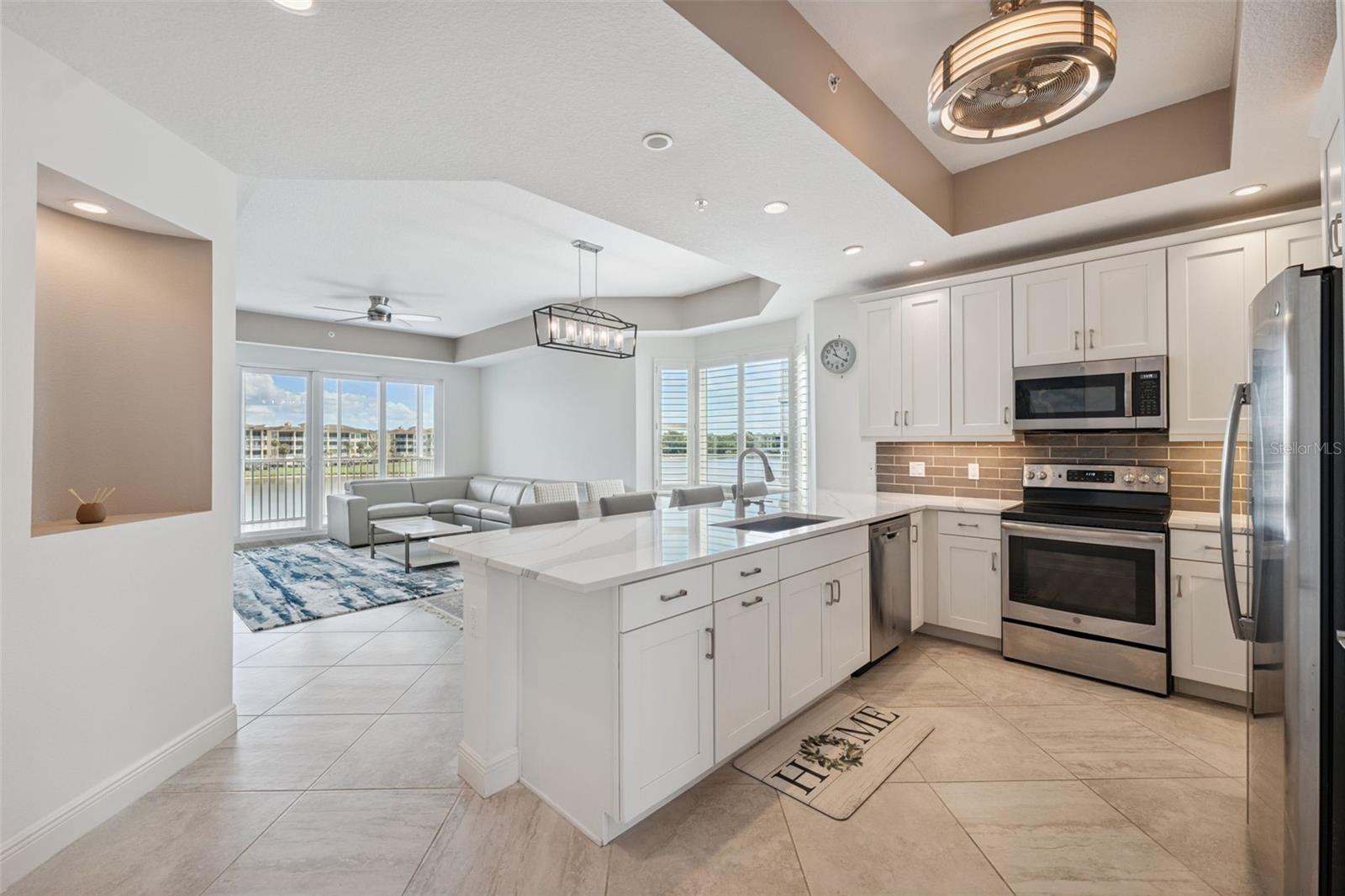HUGE PRICE REDUCTION! 50K! This rare end-corner unit is within the waterfront at main street is situated at the heart of Lakewood Ranch! Location, Location, Location. The unit includes an assigned parking and a storage unit in the the building. Expansive hurricane-impact windows and sliding doors thought out allow abundant natural light while showcasing peaceful lake views. A spacious screened balcony extends your living area outdoors, providing the perfect setting for morning coffee, evening gatherings, or quiet reflection with a water backdrop. The home also offers a large laundry room with extra space for storing household supplies, cabinets, and a utility sink with folding area. U-shaped kitchen with a breakfast bar provides ample wood cabinet storage boasts quartz countertop, double oven, monogram stainless appliances. Whether you’re cooking for yourself or entertaining guests, the kitchen flows seamlessly into the family room. High ceilings, crown molding and ceiling fans, enhance the open floor plan overlooking the lake view. The master suite offers direct access to the balcony, allowing you to wake up to stunning views of Lake Uihlein. The suite includes a well-sized master bathroom boasting dual sinks, a walk-in shower with a frameless glass door, a modern cabinet tower providing ample storage, and an enclosed toilet room. Two additional bedrooms, each with their own closets and easy access to a second full bath, provide plenty of space for family, guests, or a dedicated office. The gated waterfront condo offers resort-style amenities, including saltwater pool, spa, outdoor kitchen with grill and sink, on-site manager, and fitness center. Also with the CDD already paid off, new owners only pay $176 annually. This well-maintained condominium features secured access to both the gate and the building. With the added benefit of an adjoining 153-acre private Lake Uihlein, offering serene views, bird watching, direct access for kayaking and canoeing, and ramps for boating and recreational vessels. Step outside the gates, and you can stroll to stylish boutiques, international restaurants, and the open-air plaza known for hosting events, concerts, festivals, and farmers’ markets. Lakewood Ranch’s Main Street is also home to Starbucks, yoga and barre studios, and other fitness centers. Enjoy dining out with family or entertaining guests at Lakewood Ranch Cinemas, The Fish Hole miniature golf, or restaurants such as Ed's Tavern, Paris Bistro, and Pinchers Crab Shack. The proximity to Downtown Sarasota, Sarasota International Airport, renowned beaches, rivers, state parks, hospitals, shopping malls, universities, and various golf and country clubs makes Lakewood Ranch one of the best multi-generational communities in the country. Just one exit away, you’ll find Siesta Key Beach, Lido Key Beach, Ringling Museum, Marie Selby Botanical Garden, Sarasota Opera House, and St. Armands Circle. Sarasota Bradenton International Airport is only 18 minutes away, while the Manatee River, Anna Maria Island, and Costco are just a short drive (two exits) from the community.