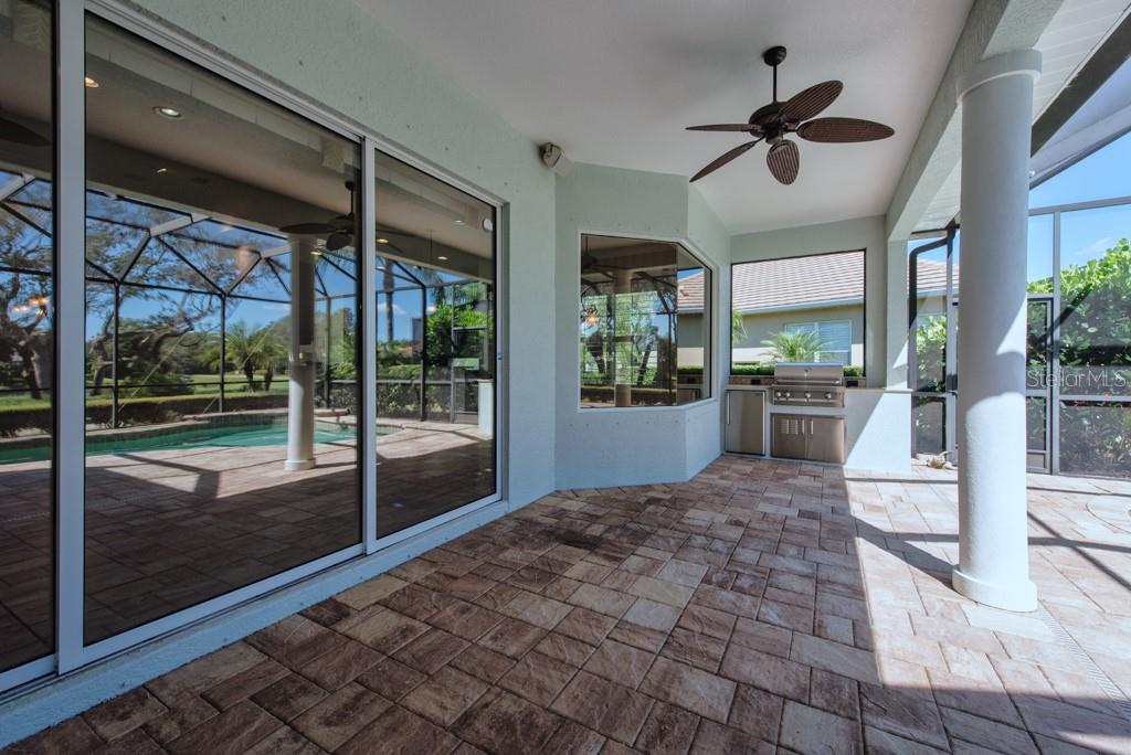 Golf Course Serenity Meets Luxury Living in Lakewood Ranch Country Club! This stunning 3-bedroom, 2-bathroom pool home is perfectly positioned on the prime 4th hole, par-3 of the Lakewood Ranch Golf & Country Club course—offering sweeping views of the lake, lush fairways, and surrounding nature. Freshly painted in October 2025, the exterior shines with exceptional curb appeal in one of America’s #1 master-planned communities. Step inside to find a thoughtfully designed floor plan featuring a custom office/den with built-ins and elegant tray ceilings. The spacious kitchen includes a breakfast bar and nook that overlooks the golf course—ideal for enjoying morning coffee with a view. Expansive hurricane glass pocket sliders extend the living space outdoors, opening to a screened lanai and gas-heated pool surrounded by a paver deck and built-in outdoor kitchen, perfect for entertaining or relaxing in your private retreat. The primary suite offers direct access to the pool area, creating a seamless indoor-outdoor flow. Additional features include a pool bath, hurricane shutters stored in the garage, and a well-maintained pool cage. Located within a guarded and gated community, residents enjoy security, privacy, and a maintenance-friendly lifestyle with low HOA fees. Lakewood Ranch Golf & Country Club provides access to four championship golf courses, tennis and pickleball courts, a junior Olympic pool, a fitness center, clubhouse dining, and more—all available through optional membership. Conveniently close to Waterside Place, UTC Mall, fine dining, SRQ Airport, and world-class Gulf beaches, this home places you near everything Lakewood Ranch has to offer. A-rated schools, vibrant community events, and an active lifestyle make this home an exceptional choice for those seeking the perfect blend of comfort, location, and leisure. Experience the best of Lakewood Ranch Country Club living—where golf course views, elegant design, and resort-style amenities create a home that truly stands out. Call now and schedule your viewing today!***FREE 1/0 Rate Buy Down when using the seller's preferred lender!***