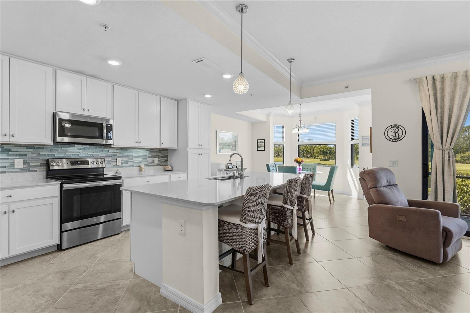 FOR SALE BY OWNER: The asking price is $298,000. Luxury living at Lakewood National Golf Club; enjoy 2 beautifully manicured Arnold Palmer designed golf courses. First floor unit offers breathtaking views of the 7th hole (formally the 16th hole) of the Piper Course. This Birkdale model features 2 / 2 accented backsplash and pendant lighting. The Master bedroom features a spacious walk-in closet, an en suite bath with a walk-in shower and quartz vanity. The home comes with an assigned covered parking spot in addition to your own spacious storage shed, both located steps from your front door. With this unit, you will enjoy one of the most beautiful lake and golf course views from your screened-in lanai. Membership Included to this private community boasts access to 36 holes of golf, fitness center, 4 pickleball courts, (3 additional to be built) 2 bocce courts, 8 lighted Har-Tru tennis courts, full-service salon/spa, 6 Satellite pools, Plus the main Resort style pool with waterfalls and a lap pool. Enjoy dining or a cool refreshment poolside at the Tiki Bar & Grill or a Full service dining experience at the newly finished clubhouse. In addition, you will also enjoy activities & holiday gatherings scheduled by our full-time Activities Director. Lastly, the club has a 24-hr fitness center, full-time fitness director, a certified personal trainer, group fitness classes and more. This Club is 24-hr gated security with nightly patrol. Enjoy beautiful Sunrises & Sunsets from your private lanai with your morning coffee or evening glass of wine.