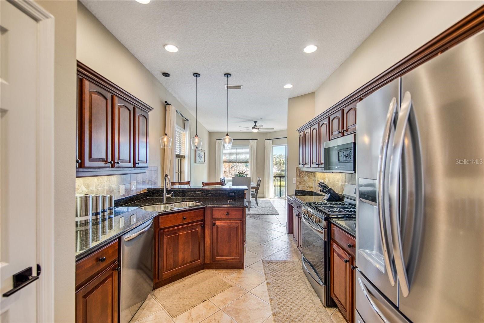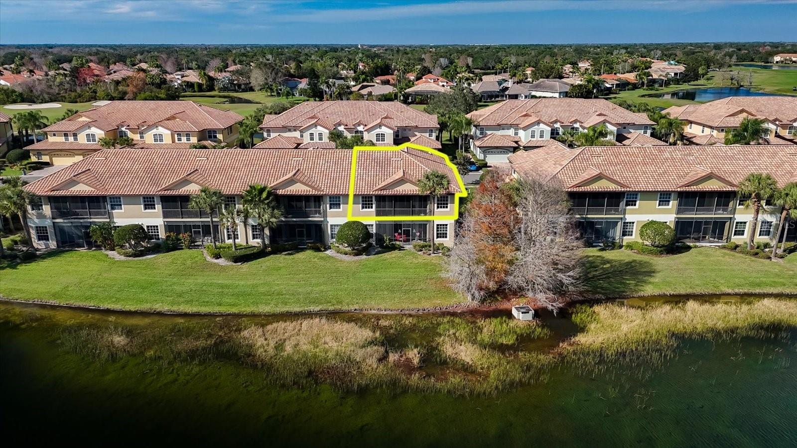 One or more photo(s) was virtually staged: photo of the office. Welcome to the beautifully maintained community of Miramar Lagoons at Lakewood Ranch situated along the Legacy Golf Course. Lakewood Ranch Golf and Country Club has recently acquired the Legacy Golf Club, as their fourth private golf course, third Arnold Palmer design, and excited to announce there is no longer a membership waitlist. They have golf, fitness, and social memberships available! The end unit home features 3 bedrooms, 2 bathrooms, an office, 2-car garage, and tile flooring throughout the main floor, offers a perfect blend of style and functionality. As you enter, the front door and garage entry are located adjacent from one another, and carpet cushioned stairs whisk you and guests upstairs to the main living area. You are greeted with a large formal dining room, also versatile as an extension of the main living space, sets the tone for gracious entertaining. The master bedroom was thoughtfully designed with a privacy corridor which has access to 2 walk-in closets and a linen closet. The ensuite bathroom features a garden tub, walk-in glass shower, and dual sink vanity. The 2 spacious guest bedrooms are situated in the front of the home with convenient access to the Hollywood bathroom with 2 separate vanities and shares access to the den. This flexible 4th room can be utilized as an office or workout space and is equipped with a window and ceiling fan. The kitchen boasts stainless steel appliances, granite counters, closet pantry, gas connected range for the culinary enthusiast, and bar seating space. The kitchen freely flows into an additional dining area and the main living area is perfectly positioned in the center of the home. With three access points to the screened patio offering a tranquil pond view, it becomes the ideal spot to relax after a sun-filled weekend or a productive workday. Convenience is key with the laundry room located on the second floor and additional storage space in the garage. This gated community proudly welcomes its residents with gorgeous landscaping, paver driveways, tile roofs, and ample guest parking. The amenities include a large heated pool & spa, spacious clubhouse with a full kitchen, conference room, well equipped fitness center, outdoor BBQ, and dock with gazebo to capture serene sunsets. Miramar is ideally located within close proximity to I75, Waterside Place, University Town Center Mall, and Lakewood Ranch Main Street. Don't miss the opportunity to make this meticulously maintained townhouse your new home! Bedroom Closet Type: Walk-in Closet (Primary Bedroom).