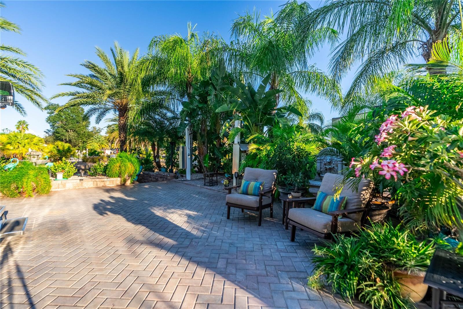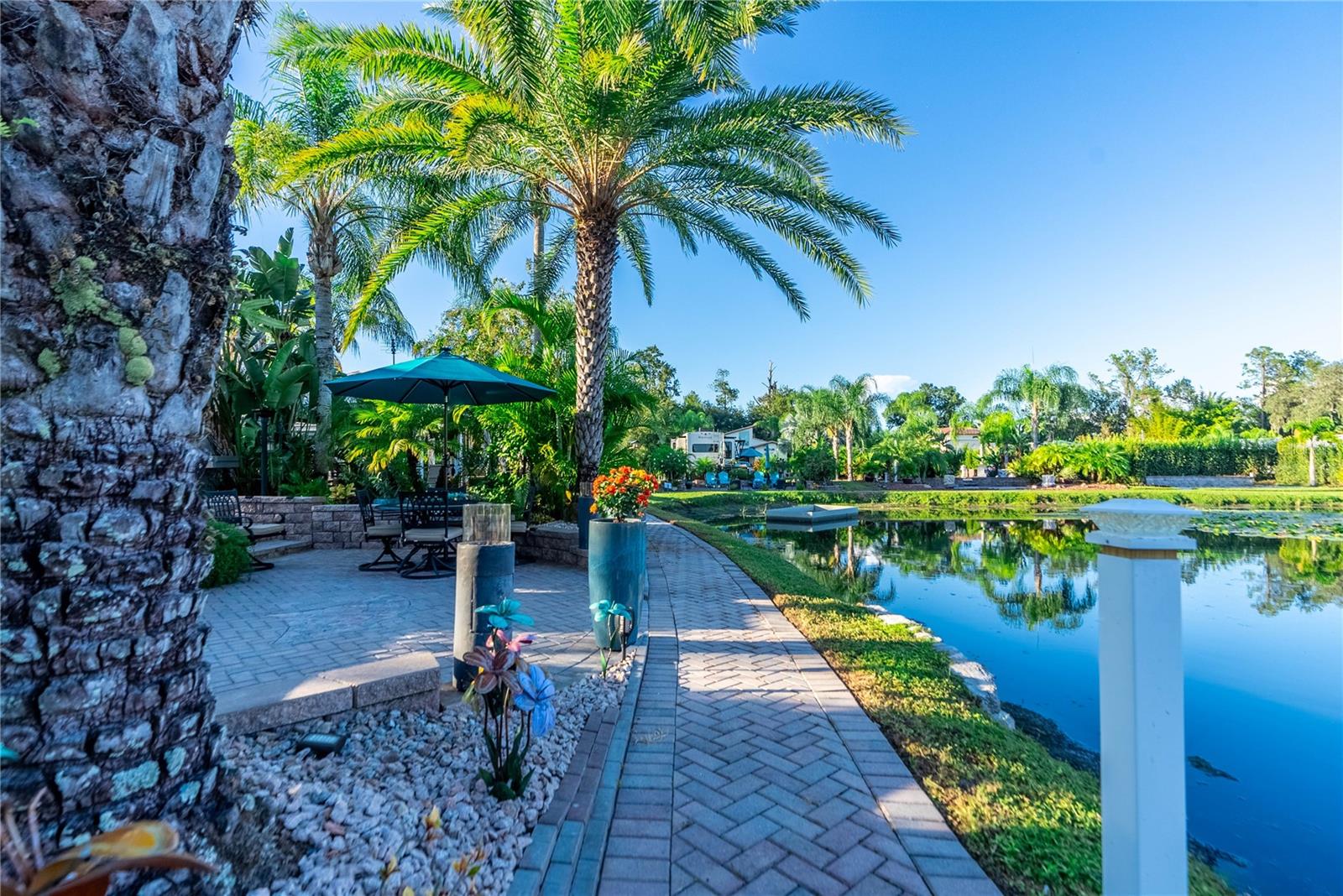This has to be the most stunning Luxury Motorcoach lot I have seen in Pasco County. When you arrive you will feel certain you have arrived at a 5 Star LUXURY Resort. The only difference is you won't be paying the yearly dues that go with 5 Star Resorts or the cost of land in South Florida's Luxury Motorcoach Resorts. The HUGE BONUS buying here is the added "Value" of being in a CLOTHING OPTIONAL/NUDIST community (PRICELESS!). Here are some of the most notable features of this property: Metal propane Tiki Torches, Barrel propane torches, New Orleans propane street lights, solar lantern lights, and 27 110 Volt Outdoor Flood Lights (set on timers) are among some of the lights featured here. Water features on the property provide that rapturing zen vibe you won't want to walk away from. The property has more than one irrigation system; one system that accesses water from the community watering system and also a system that provides city water. A 100 gallon propane tank is on the property to provide fuel for the gas grill, two water heaters for the shower, the torches and New Orleans Street lights (brought in from Baton Rouge). The divine outdoor showers have custom built metal shelters around the components of the heaters to protect them from weather. The showers have four shower heads which are surrounded by Birds of Paradise and Palms. Both sides of the lot are adorned with tropical plants and palms. The lot has raised beds and has a tier that steps down to the patio area that overlooks the water. A brick paver sidewalk leads to the the club house, pool, and hot tubs. The location of this lot enables the owner to enjoy Sunrises in the morning over the water and nice sunsets to the West. The decor of potted flowering plants truly has that WOW Factor. Everything coordinates so nicely you will want it all. The variety of mature palms and lush foliage paired with a vast range of creative lighting components puts this property in a class of its own.The outdoor furnishings embedded in various landscaped nook's provide several places to enjoy living outdoors throughout the day, twilight hours and night. The owners deserve great Kudos for their brilliant architectural landscape. At night you might think you got transported from the Starship Enterprise to the courtyard at the Versace mansion in South Beach Miami. The place is absolutely gorgeous. ASIDE from being stunning the design is actually very functional and effective for RV living. The soil, subsurface of the lot was designed to park the largest RV Coaches built today. If you have pets there is a doggie park reasonably close to this lot and a fire hydrant next door. Do you like to cruise around the neighborhood in a golf cart or scooter? That is welcome too! No Clothes, No Shoes, No Problem; You will be welcomed at the club house in your Birthday suit. The need to go bare is well understood in this clothing optional community. So if you want to just take a dip in the pool Nude Alamode GO FOR IT! Luxury Motorcoach communities are prevalent in South Florida and the Florida Keys but you can't go bare there. So if this sounds like a dream come true, schedule your tour with your Realtor today. A final bonus is the Seller says the furniture, grill, water features & potted plants convey. Consider the many aspects of owning in Pasco County. Low taxes, less than 1 hr to Gulf Beaches, 35 min to TPA Airport, Near public golf courses, shopping & World Renown nudist resorts(Next door to Caliente too).