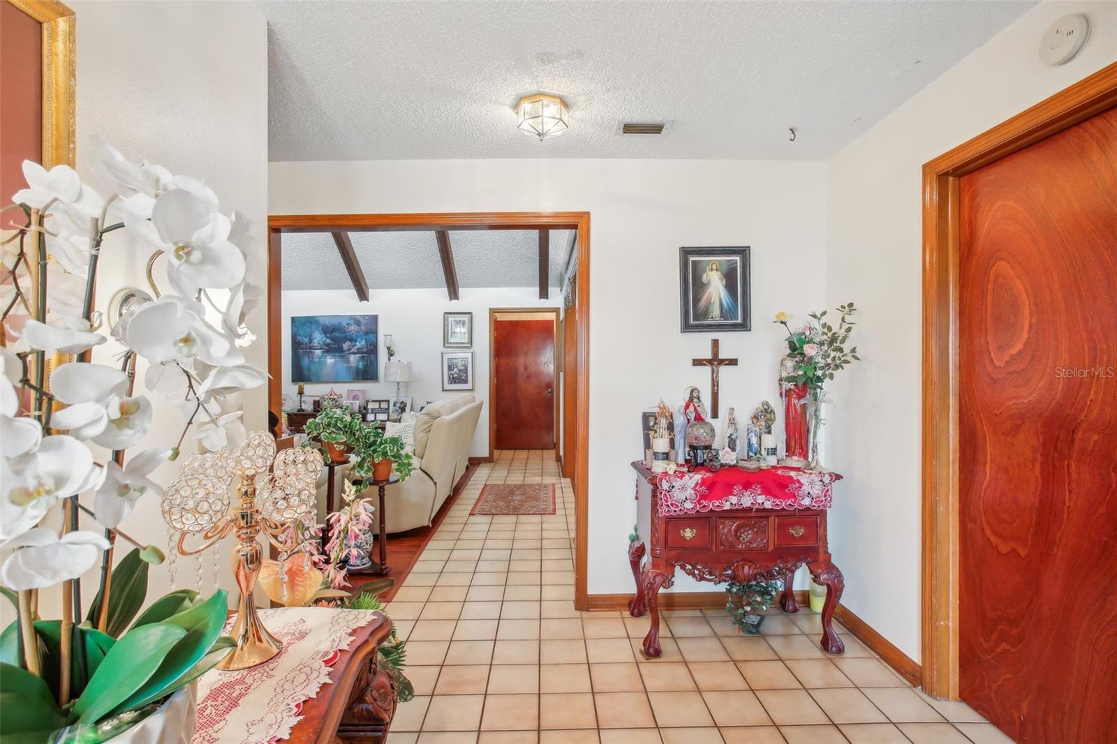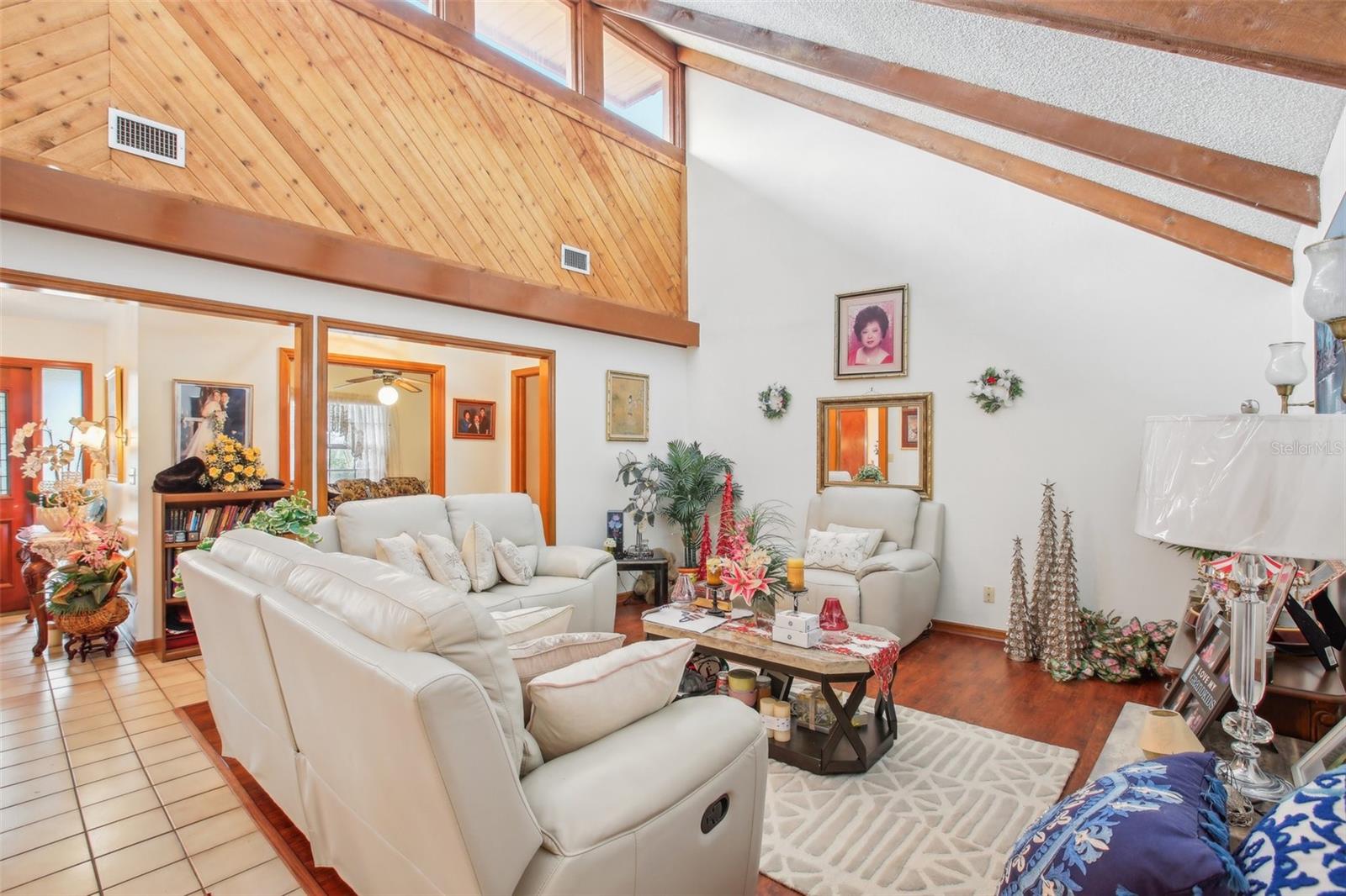 Nestled on a generous lot in the highly sought-after Lake Paget Estates, this stunning four-bedroom, two-bathroom residence is the perfect blend of comfort, potential and convenience. Boasting CBS construction and a spacious two-car garage, this home offers almost 2,700 square feet of living space designed for both relaxation and entertainment. As you step inside, you’ll be greeted by soaring vaulted ceilings and an abundance of natural light streaming through beautiful windows. The inviting living room features a cozy fireplace, creating a warm atmosphere for gatherings with family and friends. The open layout seamlessly connects the living areas, making it easy to host celebrations or enjoy quiet evenings at home. Tile and laminate flooring throughout provides low maintenance and durability and With a dedicated laundry great for storage. The spacious private backyard is a tranquil oasis, perfect for outdoor activities or simply unwinding under the sun. Enjoy the screened-in patio, ideal for dining or lounging while taking in the serene surroundings. Located directly across from the community pool, park, tennis courts, playground, and picnic area, you’ll have ample opportunities for recreation and relaxation—all without any CDD fees! This is more than just a home; it’s a lifestyle. Don’t miss the chance to make this beautiful property your own. Bring your personal touches and turn this spacious gem into the home of your dreams! Schedule a viewing today and experience all that Lake Paget Estates has to offer.