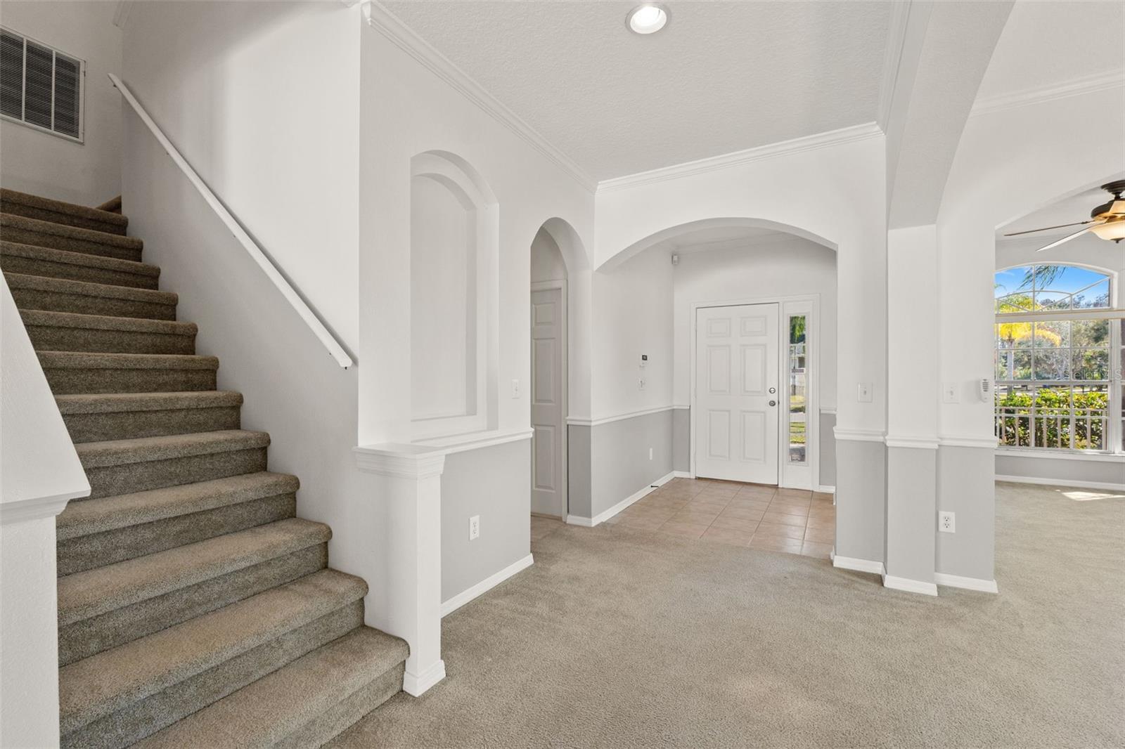 Welcome to 17343 Lawn Orchid Loop in the desirable SunCoast Meadows community of Land O Lakes. This spacious 4 bedroom 2.5 bath home offers 2340 square feet of living space and a oversized first floor primary suite and three large secondary bedrooms plus bonus area upstairs. Major system updates provide peace of mind including a new roof installed June 2024 with wind mitigation report, new AC system installed October 2025 with transferable 10 year warranty covering parts labor and maintenance, and new water heater installed October 2025. Interior features include crown molding throughout the downstairs, multiple living areas including living room dining room family room kitchen and dinette, large covered front and rear porches, great storage with under stair storage and garage attic storage with pull down stairs, and all appliances included stove refrigerator microwave dishwasher washer and dryer. Situated on a fenced corner lot with in ground irrigation system. Low HOA approximately 124 quarterly. SunCoast Meadows amenities include community pool pavilion park playground dog friendly walking areas waste stations and play areas throughout the neighborhood. Convenient location just 3 minutes to Veterans Expressway with easy access to Tampa International Airport, shopping, dining, grocery, medical offices urgent care including HCA ER Sunlake, Advent ER TGH Urgent Care and hospitals including HCA Hospital St Josephs North and AdventHealth all within close proximity. Beaches including Robert K Rees Memorial Park Crystal Beach and Howard Park Beach within approximately 40 to 45 minutes. Zoned for Oakstead Elementary Bexley Elementary Charles S Rushe Middle School Sunlake High School and Imagine Charter K8. Move in ready home with major updates completed offering space storage location and community amenities in one of Land O Lakes most convenient neighborhoods.