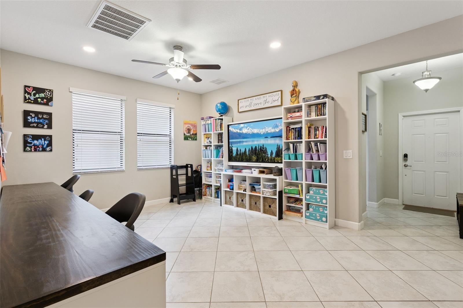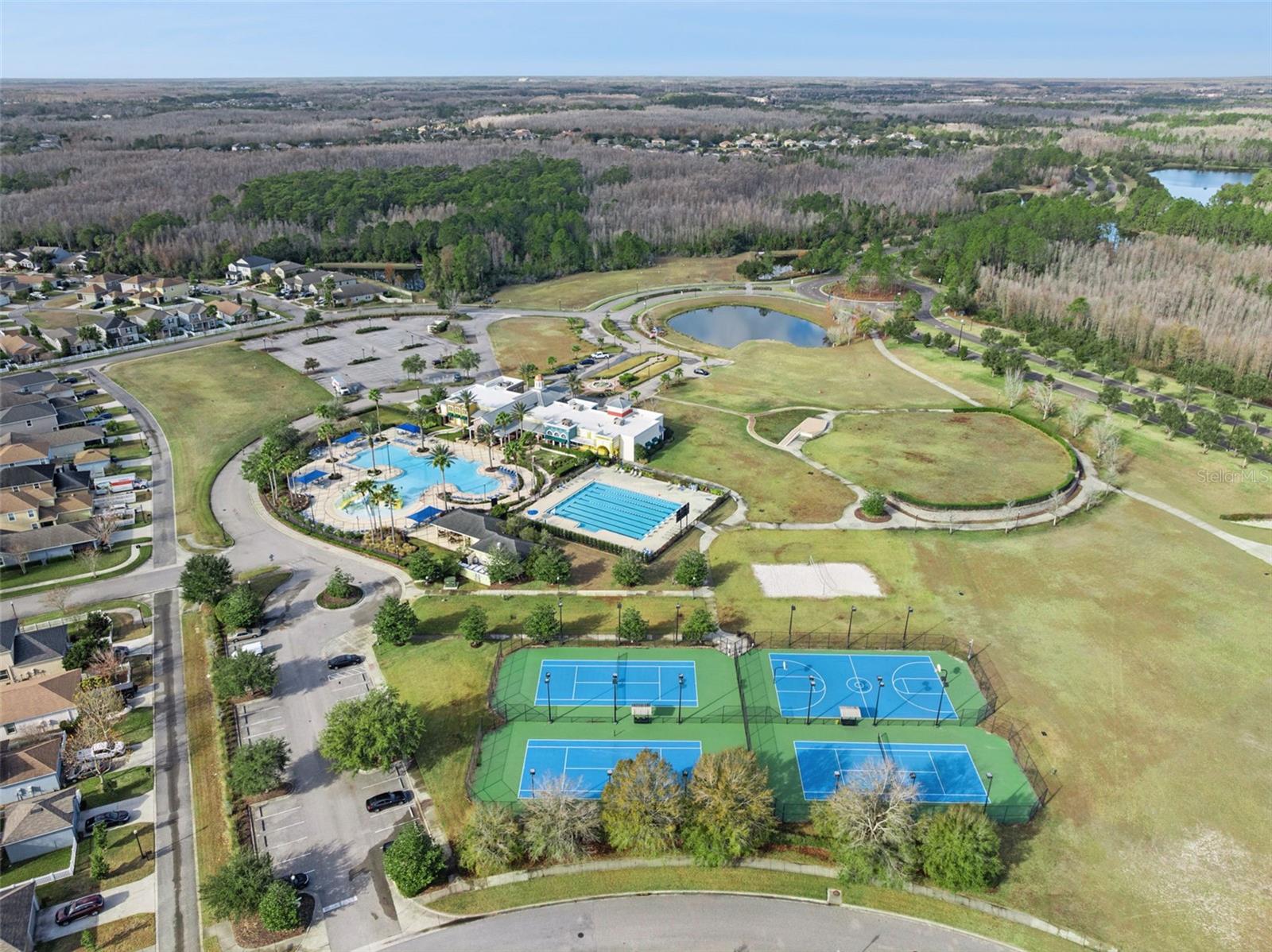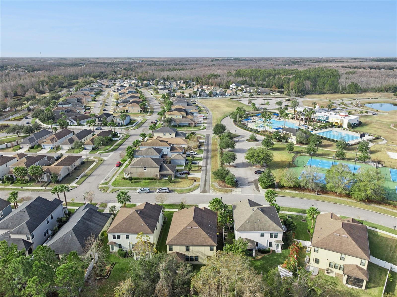Beautiful five bedroom, three bathroom home on a conservation lot, with no rear neighbors, and just steps away from the community center! Welcome home to this spacious, move-in-ready two-story home offering 3,291 square feet of an open-concept living space. This home features five bedrooms, including a convenient bedroom and full bath on the main level—ideal for guests or multigenerational living—along with three full bathrooms, a formal dining room, a main-floor office, a generous upstairs bonus room, and a three-car tandem garage. Perfectly situated on a conservation lot, the home offers privacy and peaceful views from the backyard, while the inviting front porch is ideal for relaxing in the beautiful Florida weather. An extended driveway provides additional parking, and the home is just a short walk to the clubhouse and community amenities. The kitchen is designed for both function and style, featuring stainless steel appliances, granite countertops, ample cabinetry, and a large pantry. Ceramic tile flooring flows throughout the main living areas, including the foyer, kitchen, dining and flex spaces, office, bathrooms, and laundry room. The open-concept great room connects seamlessly to the kitchen and opens through sliding glass doors to the backyard, perfect for hosting and entertaining your guests. Upstairs, the owner’s suite is a true retreat with dual walk-in closets and a spacious en-suite bath offering a soaking tub, separate vanities, a large walk-in shower, and a private water closet. All additional upstairs bedrooms include walk-in closets for plenty of storage. This energy-efficient home is equipped with a 15-SEER high-efficiency HVAC system, a tankless gas water heater, and reclaimed water irrigation for lower utility bills. Smart-home features include a Nest thermostat, smart garage door, and smart lighting. Located in the award-winning Connerton community, residents enjoy the perfect blend of nature and resort-style living. Amenities include scenic bike trails, lakes, and wetlands, as well as a splash park, resort pool, fitness center, beach volleyball, basketball courts, and a full calendar of community events. Take a golf-cart ride in this golf-cart friendly community to all the nearby shopping and dining. Schedule your private showing today and experience all this exceptional home and community have to offer.