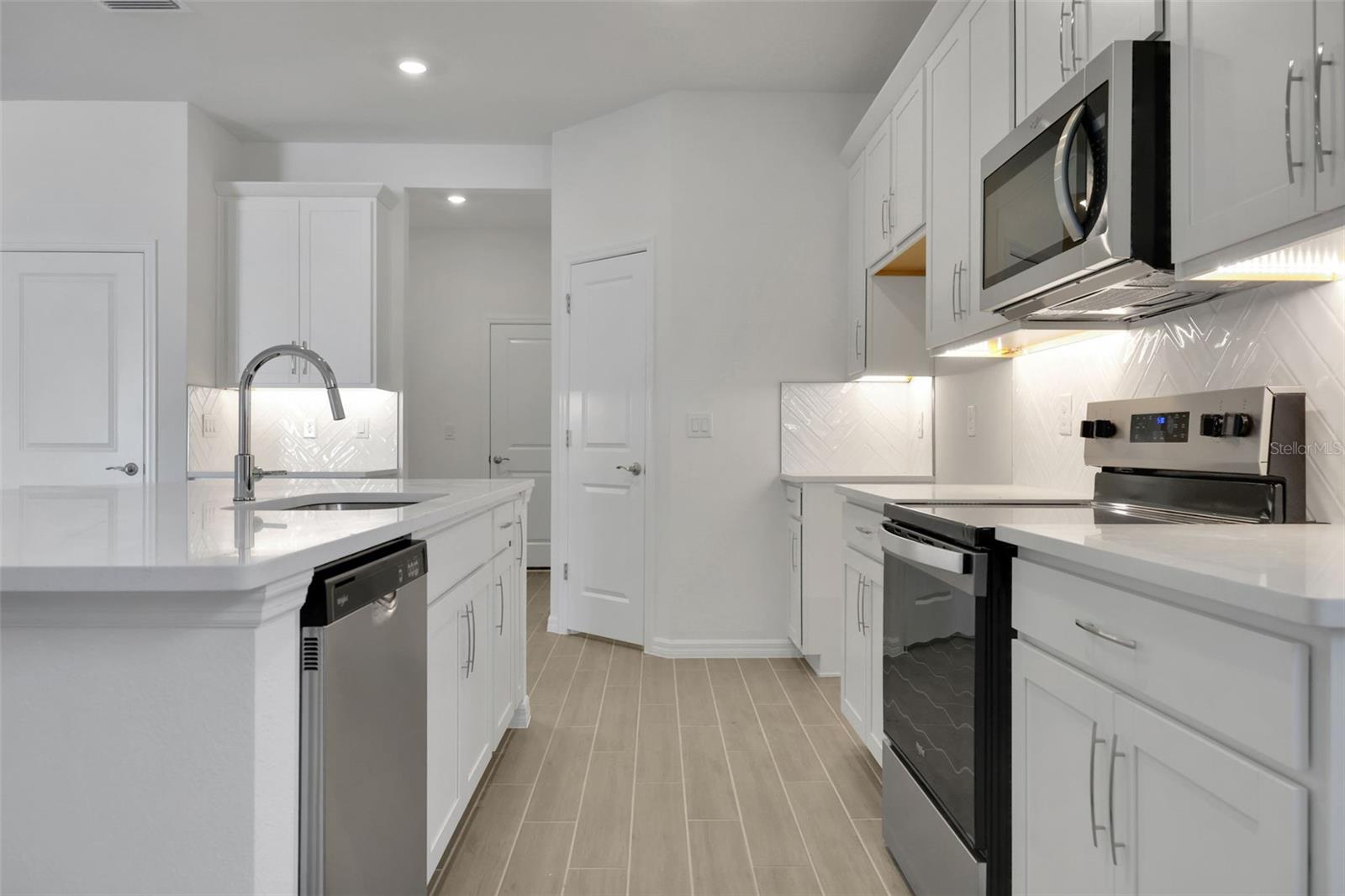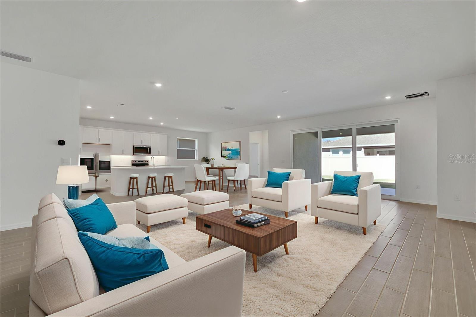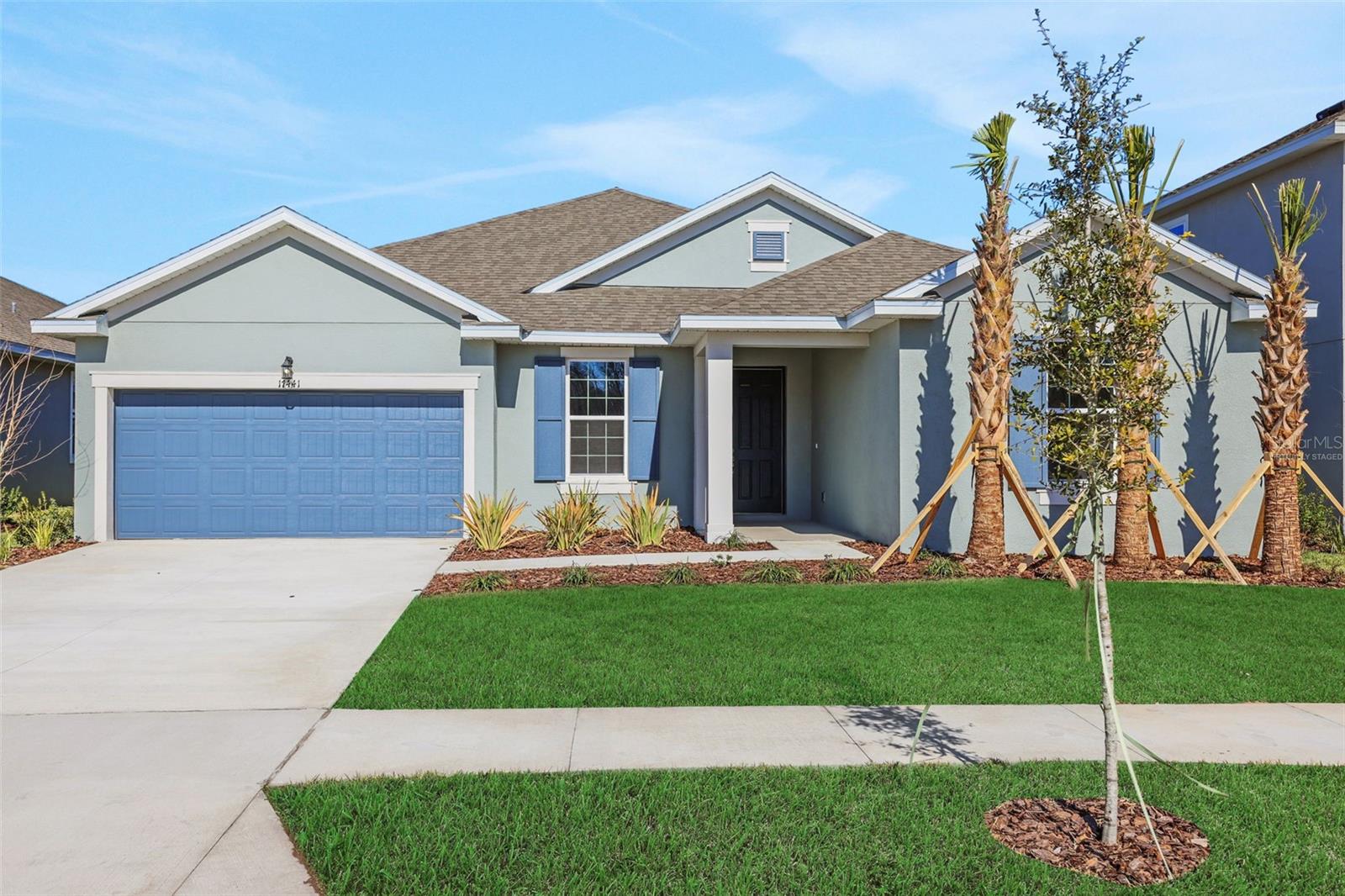 One or more photo(s) has been virtually staged. Welcome to the Arlington floor plan by Dream Finders Homes, a spacious single story residence offering 4 bedrooms, 3 bathrooms, and 2687 square feet of thoughtfully designed living space in Angeline. This open-concept home features tile flooring throughout the great room, kitchen, dining area, and bathrooms, creating a seamless and inviting layout ideal for everyday living and entertaining. The chef-inspired kitchen showcases 42” cabinets with under-cabinet lighting, 3cm quartz countertops, stainless steel appliances, soft-close cabinet doors, and a herringbone tile backsplash. The primary suite offers a private retreat with tray ceilings, huge walk-in closet, and a spa-style en-suite bathroom featuring a glass-enclosed shower and quartz finishes. Located in the award-winning Angeline master-planned community, residents enjoy miles of trails, a community farm, future parks and lakes, a resort-style lagoon, top-rated STEM schools, and a planned city center with dining and entertainment. Conveniently positioned with easy access to Tampa and major highways, Angeline offers a forward-thinking lifestyle in a true city in the making.