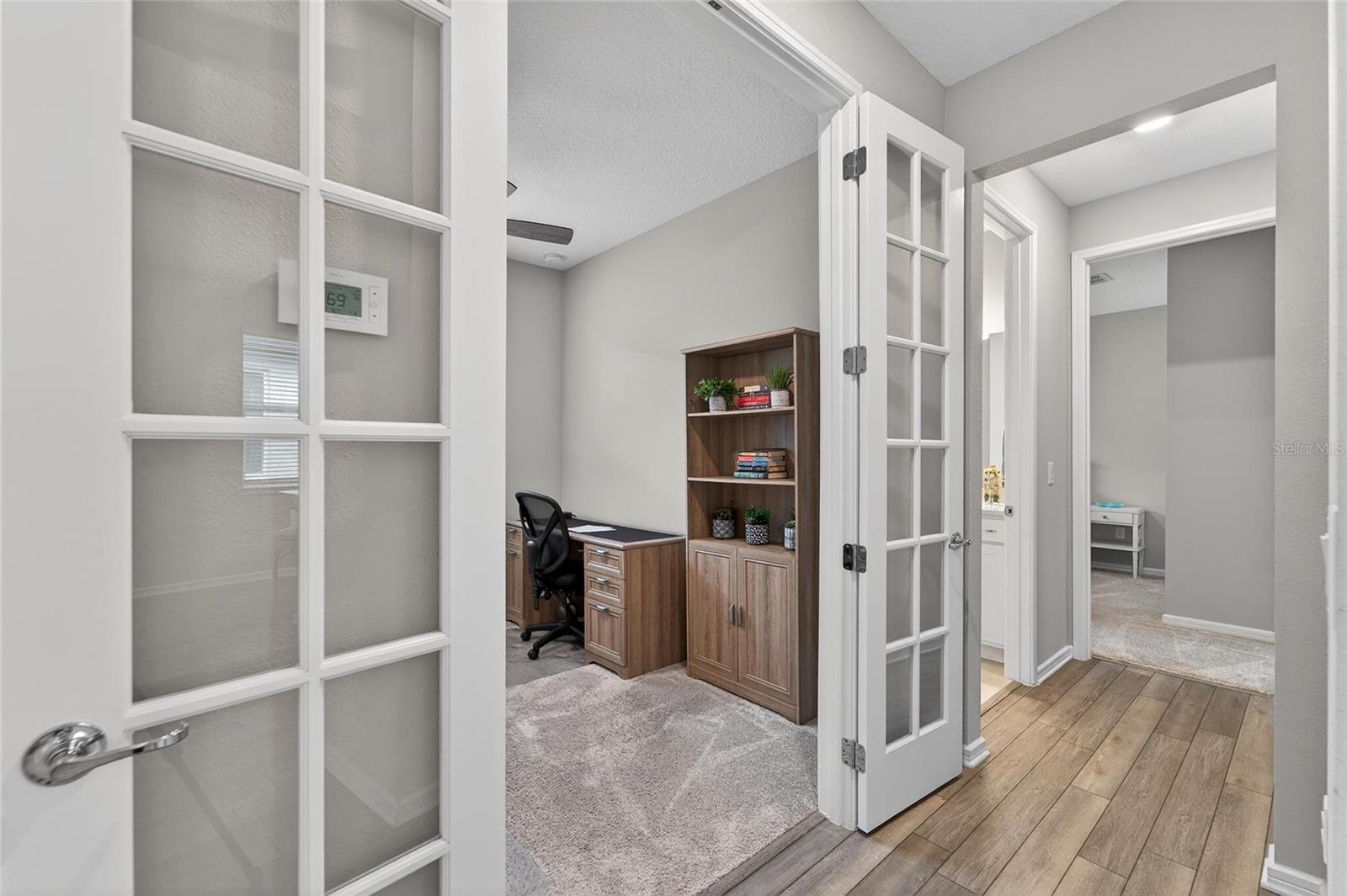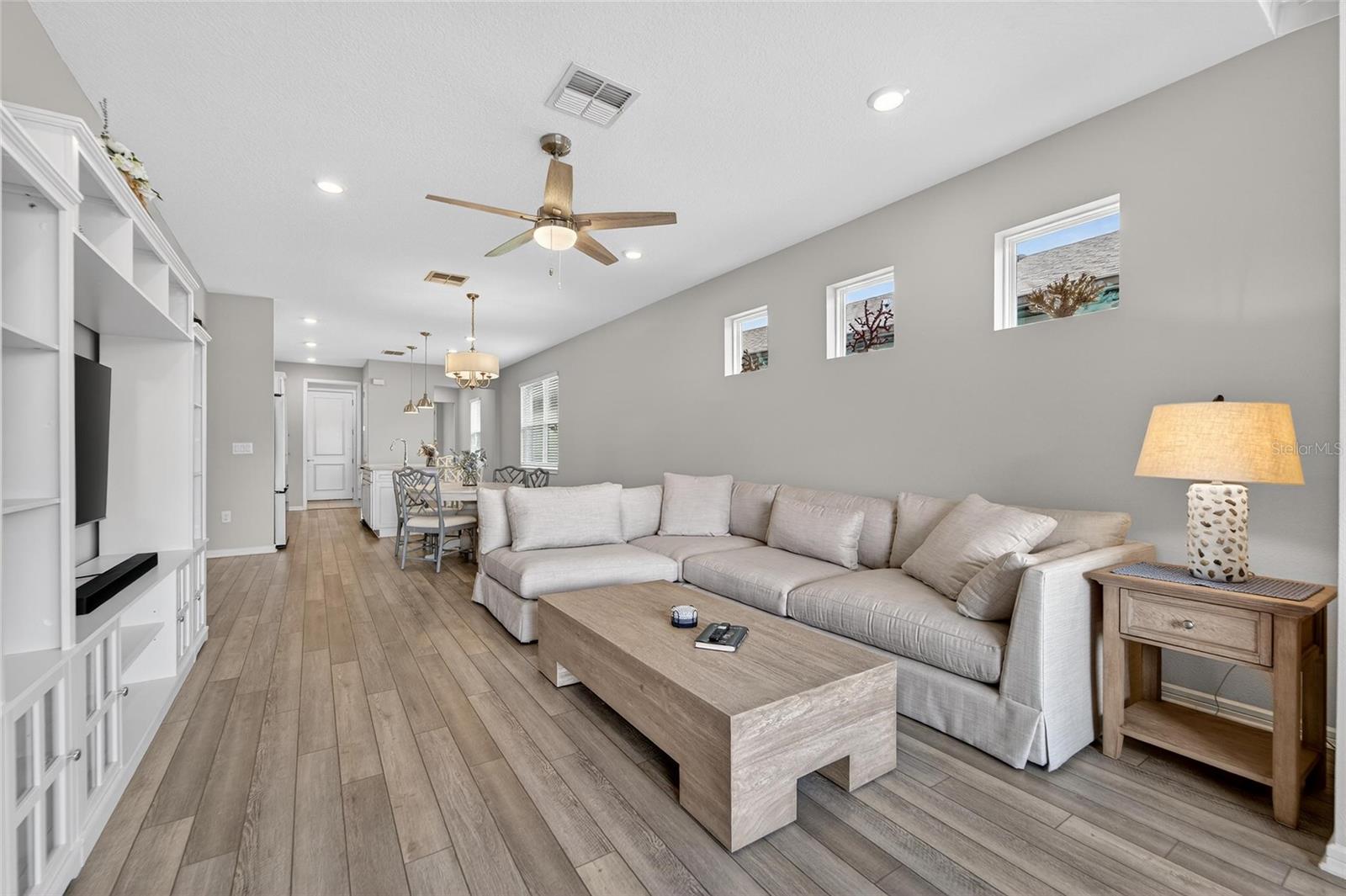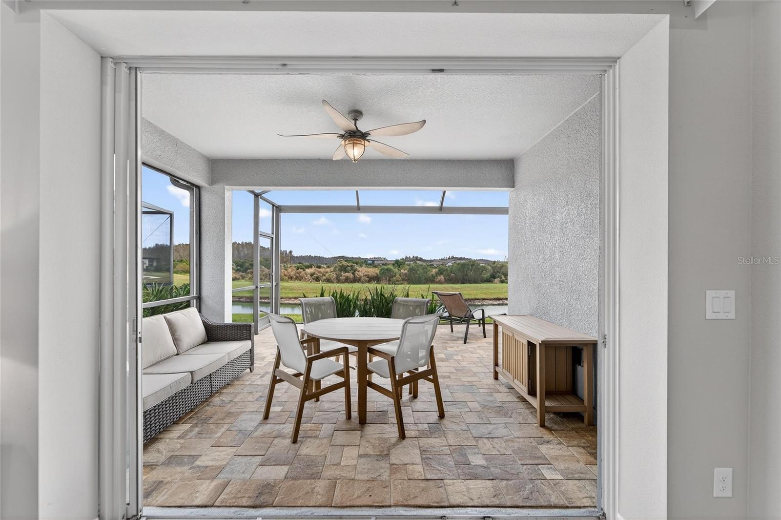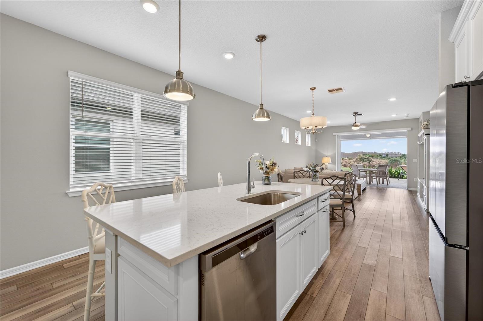 POND VIEW 3 bedroom home in ACTIVE ADULT 55+ community! Live your best life in the gated resort style community of Del Webb Bexley! You will love this three bedroom - two bathroom home (just like new - only used a few weeks each year for vacations) located on one of the quietest streets in the entire neighborhood! The kitchen is the Heart of the Home and will steal your breath away! You'll enjoy all of the storage space the tall 42 inch white cabinets provide. There is even crown molding, soft close drawers with double roll out trays and decorative end panels. GAS COOKING! Gorgeous gray glossy glass backsplash tile coordinates with the pendant lighting and stainless steel appliance package. The great room has a pocket sliding glass door that looks out over the brand new recently extended lanai where you can watch the sun rise. Enjoy the well manicured back yard and pond - there is nothing better than WATER VIEW! LED lighting package! UV light added to the A/C. Upgraded two tone paint enhances this homes beauty! There is a gas line stub out for easy outside grilling. Plumbed for a future water softener. As you enter the home from the large four foot extended two car epoxy floor garage, you will find a convenient laundry room that includes the washer and dryer. All three bedrooms have upgraded carpet and the 3rd bedroom with glass doors is currently being used as a home office/den. The primary has two large closets and is located in the back of the home where you wake up each morning to a view of the pond! Both bathrooms are spacious and have beautiful upgraded wall and floor tile. The HOA fee includes internet and cable, use and maintenance of state of the art amenities, landscaping within the common areas inside of the gates and maintenance of the landscape within your home site. The 19,000 square foot clubhouse offers residents a fitness center, ball room, multi-purpose rooms, clubs, planned activities, bistro and more! Outdoors you will enjoy bocce ball, pickle ball, a resort style zero entry heated pool with lap lanes and an additional walking resistance pool, spa, community garden and even dog park! A full time activities director and her staff will keep you as busy as you want to be!
