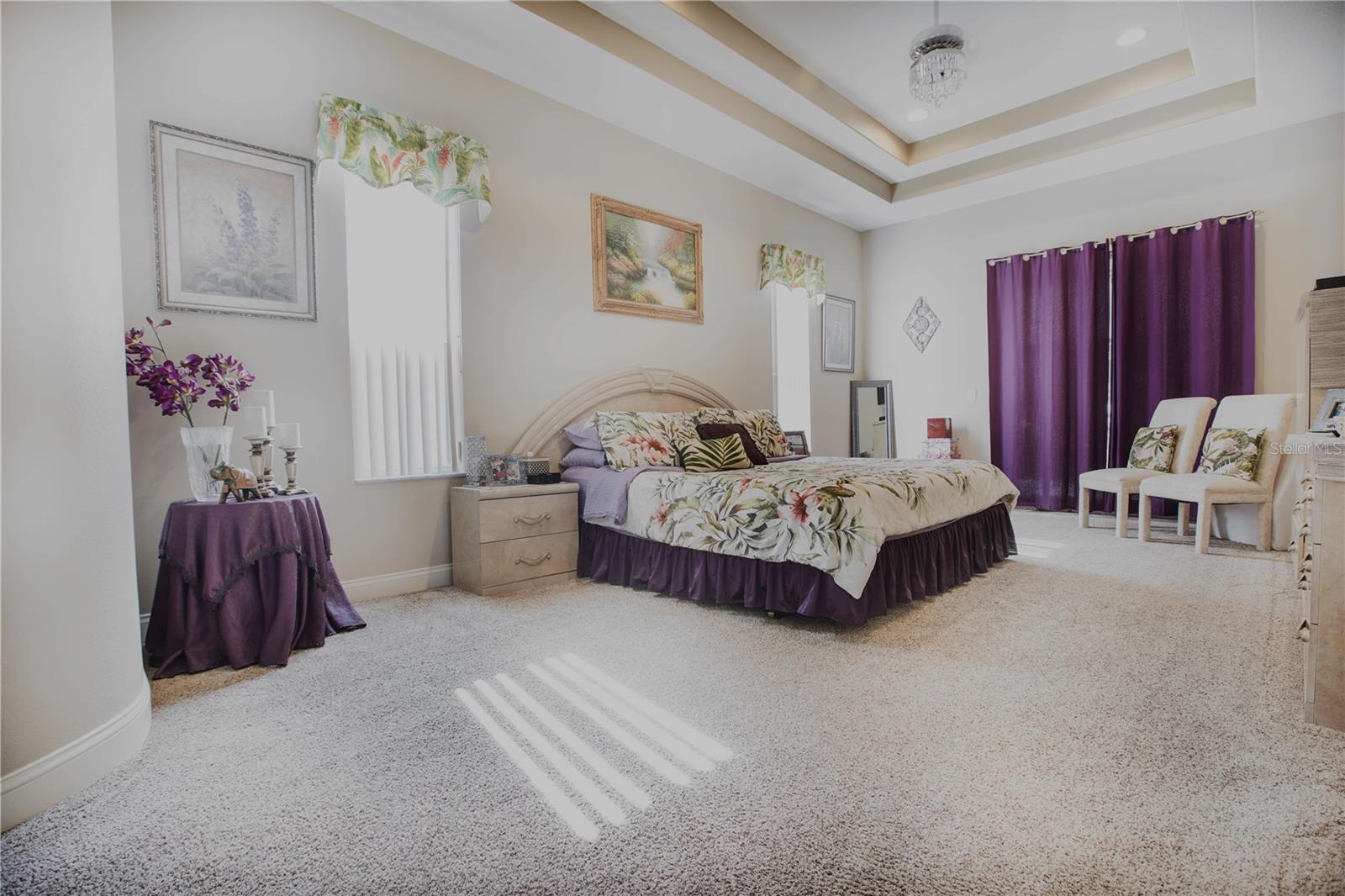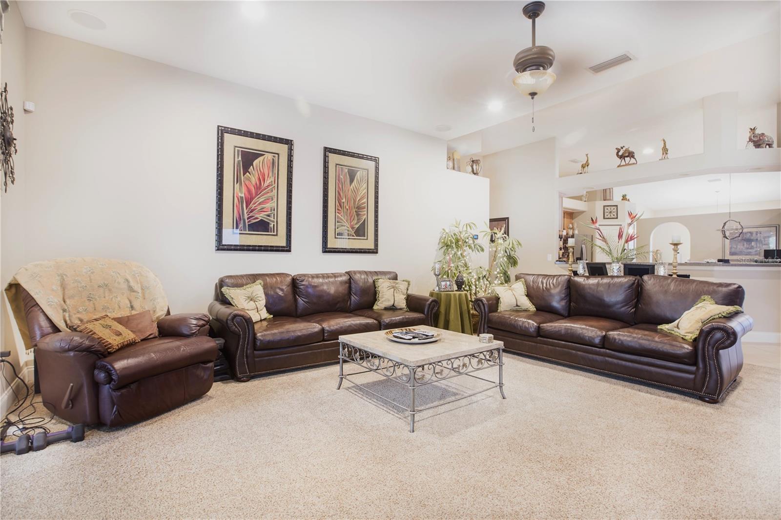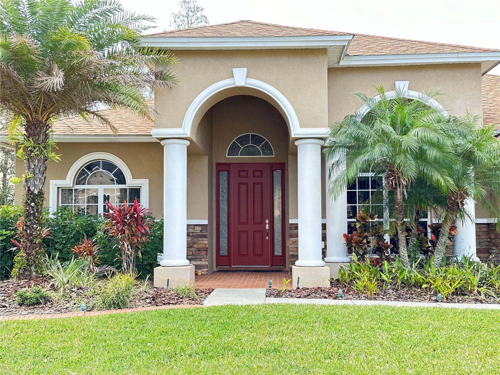 READY FOR IMMEDIATE CLOSE Welcome Home to this executive style house located in the prestigious, gated community of Stonegate with NO CDD. This 4 bedroom + bonus room, 3 1/2 bath, 3 car garage home features a bright and open split floorplan. This home boasts high ceilings, decorative art niches, closets galore, a large eat-in kitchen with quartz top island, formal living & dining room, and large family room with triple sliding pocket doors which lead to an 800 square-foot screened-in lanai with built in outdoor kitchen and free standing hot tub. The owners retreat features an 8 foot double door entry, tray ceiling, double sliding pocket door to lanai, soaking tub, walk-in shower, and dual vanities. Guest suite with private ensuite bathroom is also perfect for a home office. Upstairs bonus room features a half bath and is perfect for a theater room or as a fifth bedroom. The laundry room comes with brand new (2023) LG washer and dryer. The home is situated on a beautiful conservation lot with peaceful views and no rear neighbors. This home has been well maintained with a new roof (2017), new A/C (2023), new water softener (2023), Brand new water heater (2024) upgraded carpet with upgraded padding, and new ceiling fans throughout. The Stonegate community features a clubhouse with community pool and fitness equipment, fishing pier, playground and more. Zoned for highly desired schools, and closely located near I75 and the Suncoast Expressway. Approximately 30 minutes to Tampa International Airport or downtown Tampa. Premium Outlet Mall, The Shops at Wiregrass, Lowes, and Costco are conveniently nearby.