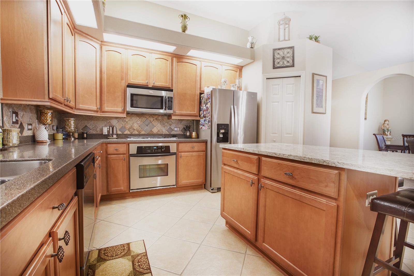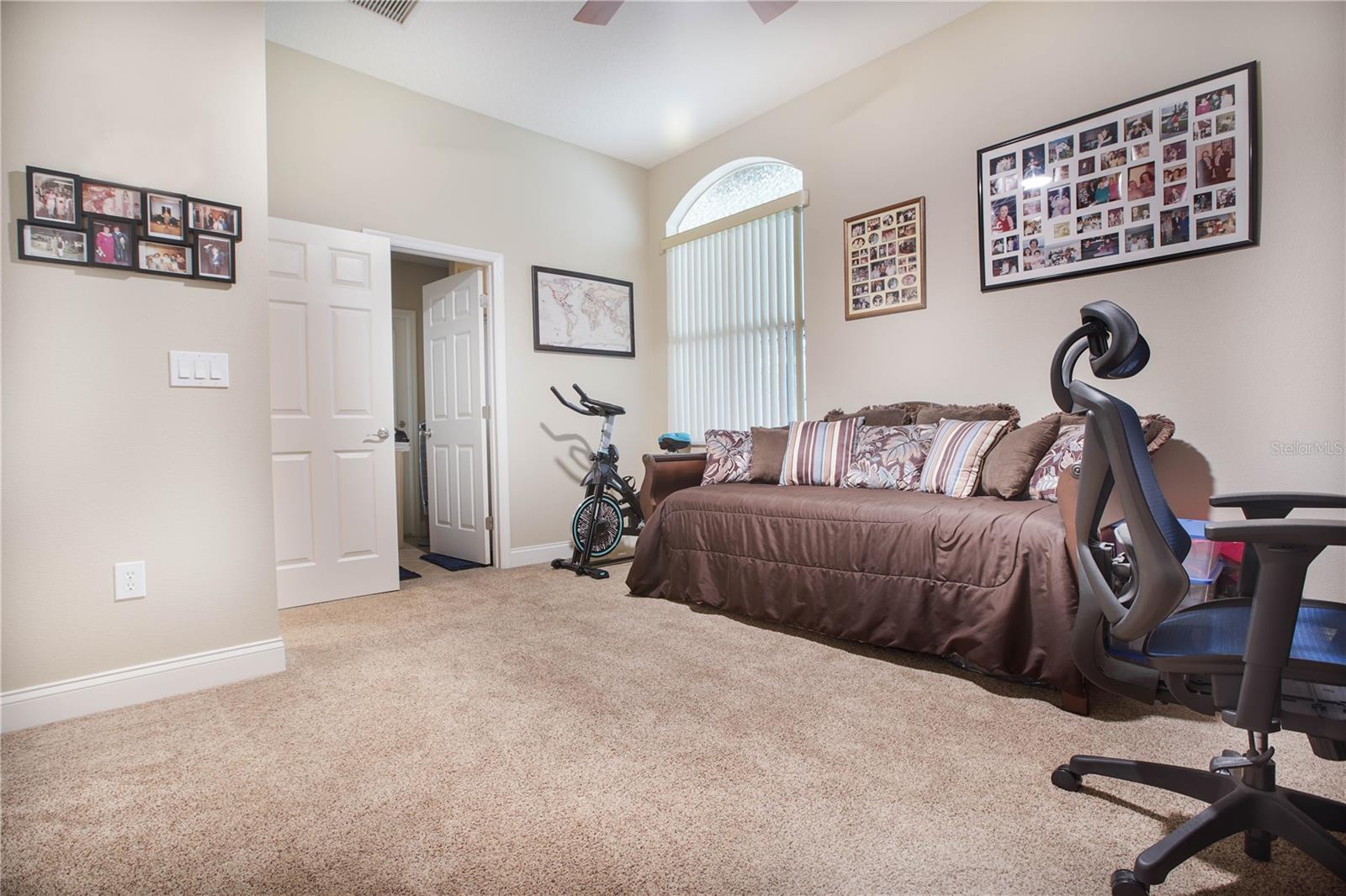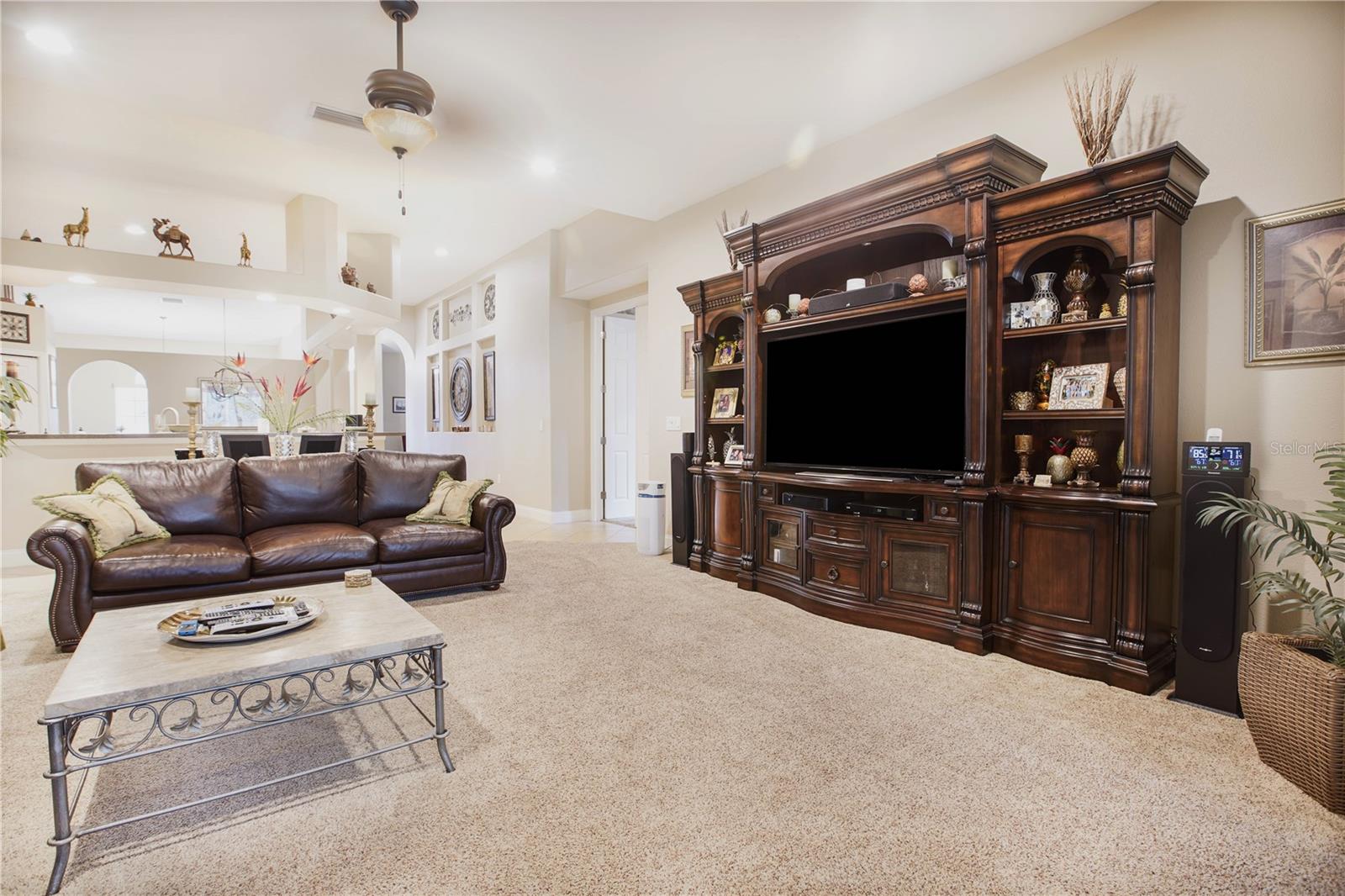 READY FOR IMMEDIATE CLOSE Welcome Home to this executive style house located in the prestigious, gated community of Stonegate with NO CDD. This 4 bedroom + bonus room, 3 1/2 bath, 3 car garage home features a bright and open split floorplan. This home boasts high ceilings, decorative art niches, closets galore, a large eat-in kitchen with quartz top island, formal living & dining room, and large family room with triple sliding pocket doors which lead to an 800 square-foot screened-in lanai with built in outdoor kitchen and free standing hot tub. The owners retreat features an 8 foot double door entry, tray ceiling, double sliding pocket door to lanai, soaking tub, walk-in shower, and dual vanities. Guest suite with private ensuite bathroom is also perfect for a home office. Upstairs bonus room features a half bath and is perfect for a theater room or as a fifth bedroom. The laundry room comes with brand new (2023) LG washer and dryer. The home is situated on a beautiful conservation lot with peaceful views and no rear neighbors. This home has been well maintained with a new roof (2017), new A/C (2023), new water softener (2023), Brand new water heater (2024) upgraded carpet with upgraded padding, and new ceiling fans throughout. The Stonegate community features a clubhouse with community pool and fitness equipment, fishing pier, playground and more. Zoned for highly desired schools, and closely located near I75 and the Suncoast Expressway. Approximately 30 minutes to Tampa International Airport or downtown Tampa. Premium Outlet Mall, The Shops at Wiregrass, Lowes, and Costco are conveniently nearby.