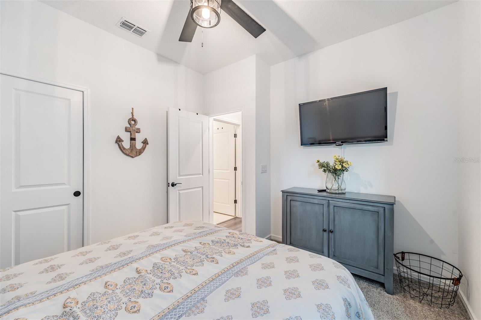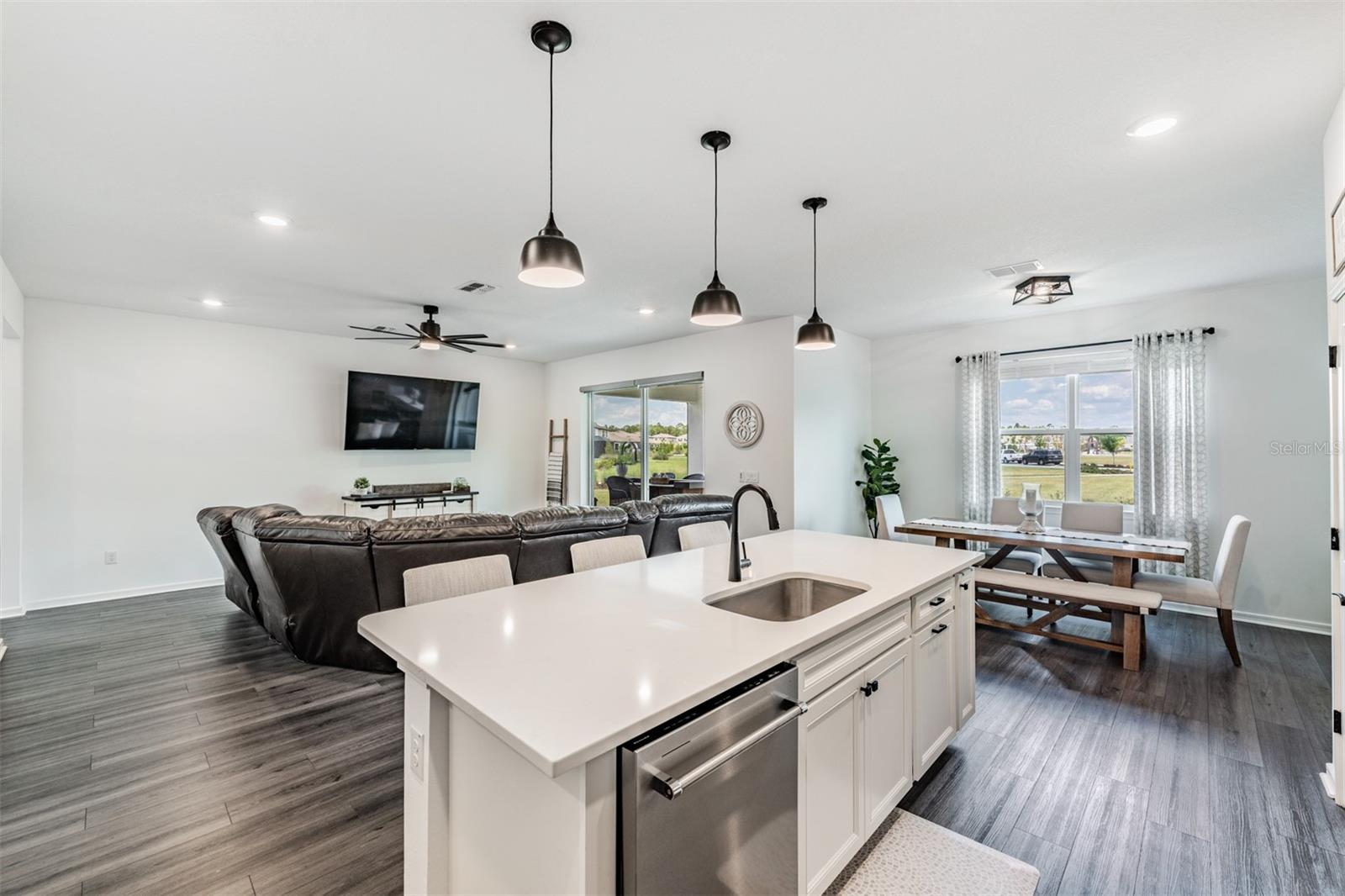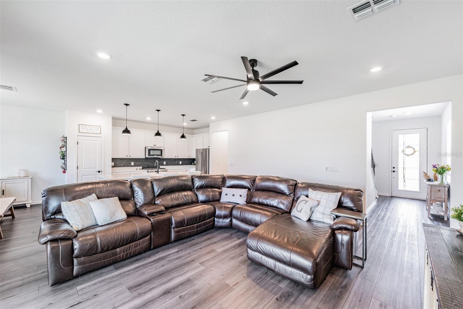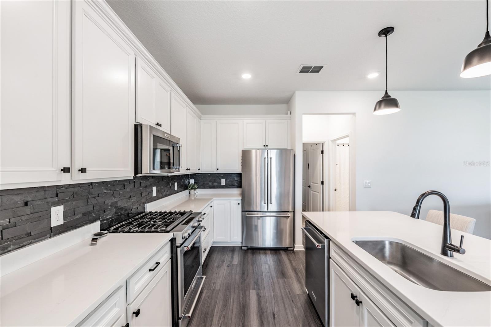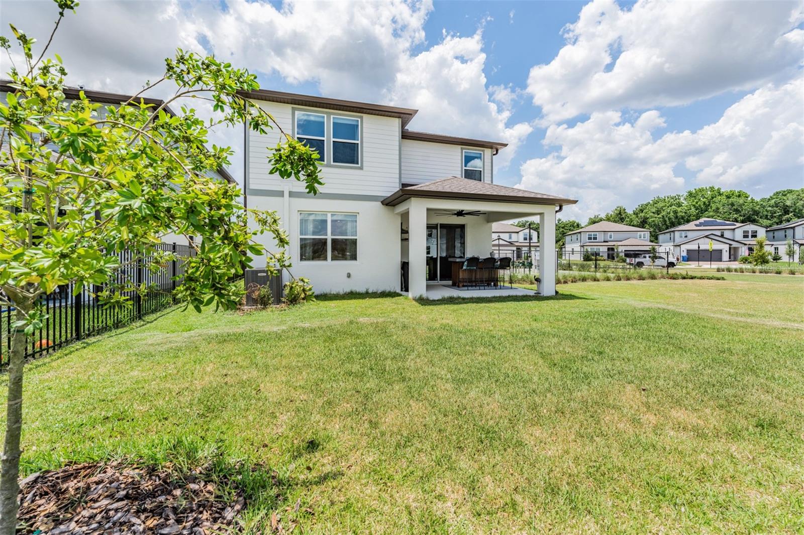 Pristinely kept, like new 5 BR 3 Bath home in the highly desirable community of Bexley. This Pulte home has an open concept floorplan featuring a combined living, dining, and kitchen area—neutral tones throughout the home with durable luxury vinyl flooring on the first floor. The kitchen has a large center island, custom backsplash, 42" cabinets, gas stove, quartz counters, and stainless steel appliances. There is a bedroom with a bath conveniently located on the first floor. Upstairs is the master suite with a large walk-in shower, dual sinks, and a walk-in closet. The remaining 3 bedrooms are generous in size. A roomy loft area in the center is great for an office space or family time. A separate laundry room comes complete with a washer & dryer. Enjoy cooking out under the covered lanai that overlooks one of the community parks. This neighborhood has many amenities such as multiple pools, a fitness center, a cafe, a playground, dog park, BMX park, trails, sports fields, and the new Bexley Hub. Come experience one of Tampa's most sought-after communities!