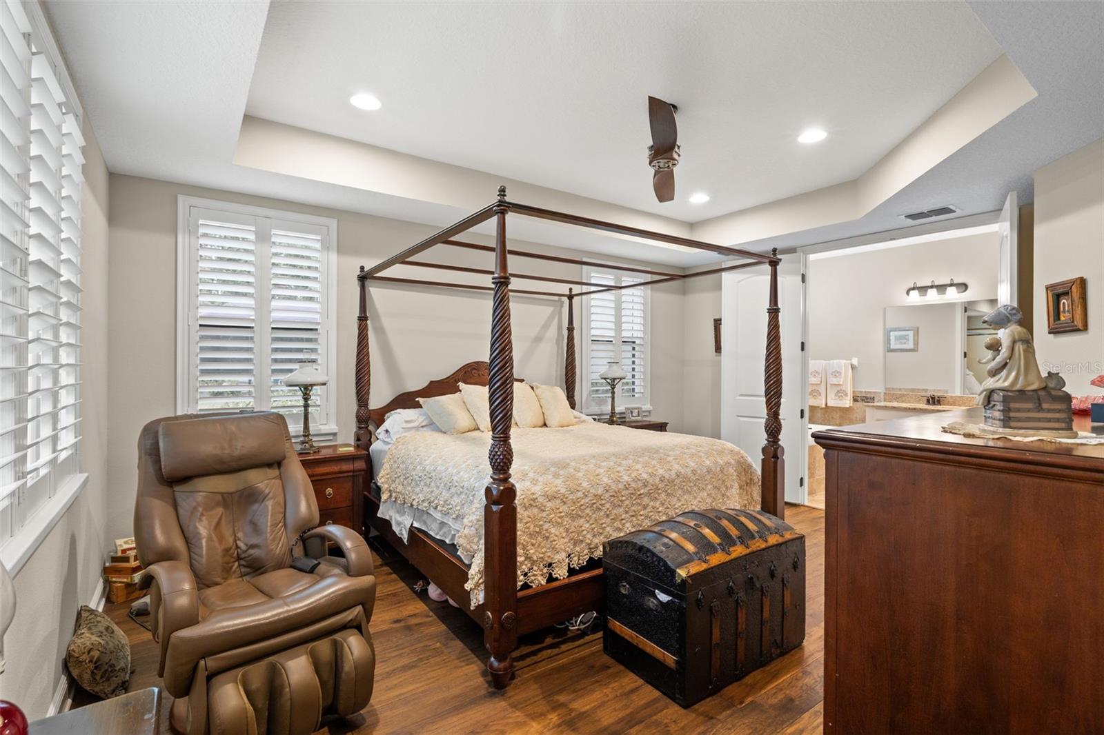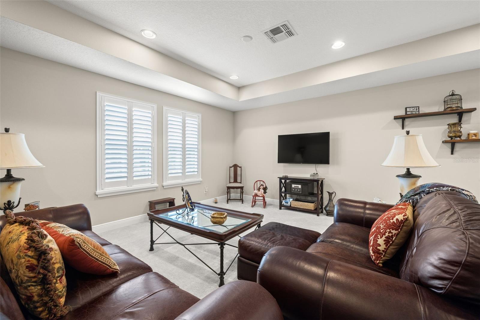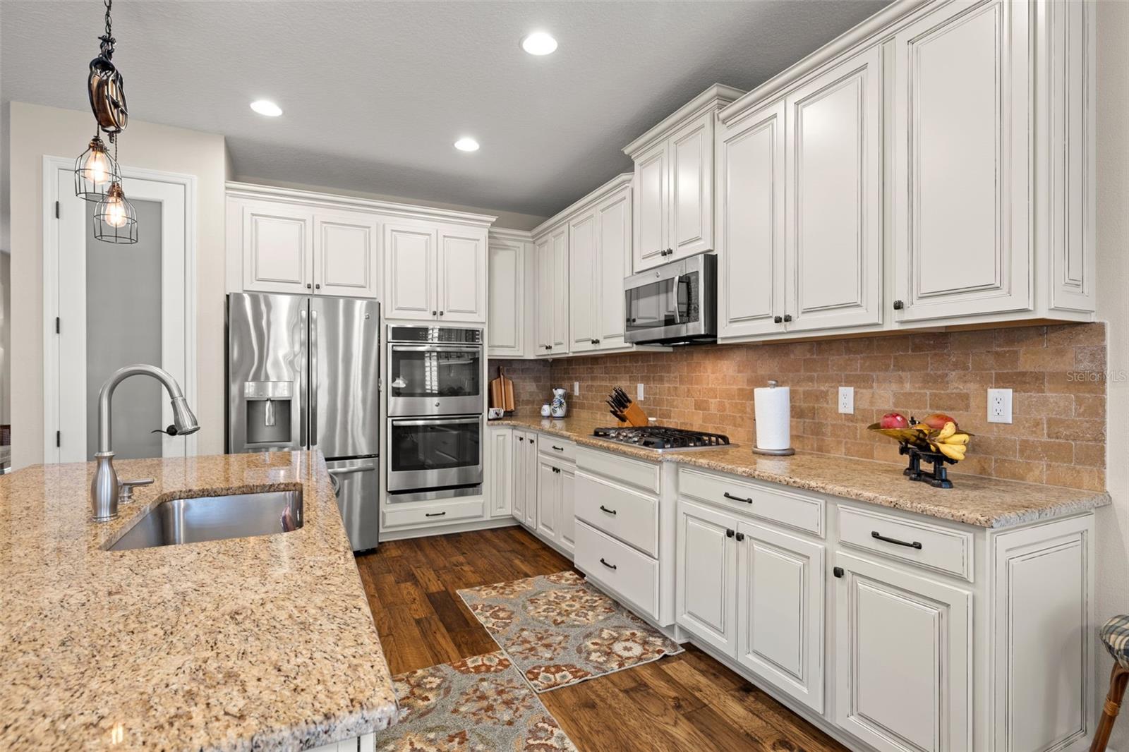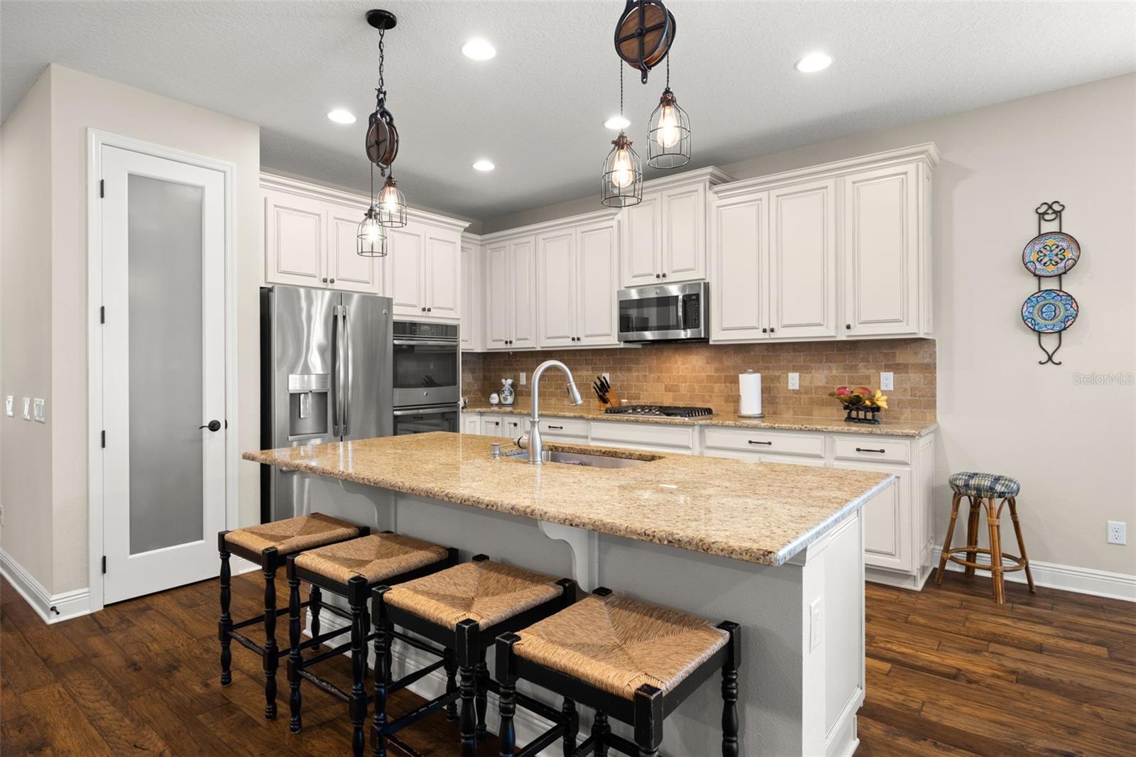 Don’t miss this stunning executive home in Connerton, Pasco’s premier community. At over 3,100 square feet this open concept Roxbury II from M/I Homes is sprinkled w/upgrades throughout. This luxurious home features hardwood flooring throughout the main living area, 10-foot ceilings, 8-foot doors, 6” baseboards, custom farmhouse light fixtures, hand-picked ceiling fans and plantation shutters. Enter the home into the foyer and immediately to your right is the archway into the ample sized formal living room/den/office. A few feet further to the left and you will find bedrooms 2/3 with a full bath in-between w/granite countertops and a custom step-in shower w/decorative Listello Tile. Follow a few more feet to the right and you will find the archway leading to the powder bathroom, large laundry room w/cabinets, sink and storage closet and door to the garage. From here you can also take the hardwood covered stairs up to the enormous 2nd story bonus room w/trey ceiling. Let your imagination run wild. Man cave, theater room, entertainment space, 4th-bedroom, guest quarters, music room its entirely up to you. 2nd story also finds a conveniently placed full bathroom and is also plumbed for a wet-bar. Back down the stairs and to your right is the main living area with the invitingly bright and roomy family room and a formal dining area w/room for a large table. The open concept means you will never miss out on the action while in your dream kitchen featuring granite countertops, oversized island and breakfast bar, a spacious pantry w/upgraded shelving and decorative frosted glass pantry door. The kitchen has LEVEL 4 upgraded 42" Timberlake cabinets w/caramel glaze and crown molding, tile backsplash, stainless steel GE Profile appliances w/the desirable gourmet kitchen package featuring a double oven and natural gas cooktop. There is also a kitchenette next to the sliders out to the screened-in lanai. The rear of the home is the location of the lavish Master Suite with the bedroom featuring a large trey-ceiling, hardwood floors and his and hers closets w/organizers and a drop-dead gorgeous master bathroom w/French Door entry and dual sinks, granite countertops, a garden tub w/decorative LISTELLO tile, a large stand-up walk-in shower featuring a rain shower head and matching LISTELLO tile and a private water closet. This fabulous fully updated home also features a large screened-in lanai w/privacy shades and a pavered multi-purpose area. The craftsman style elevation features beautiful exterior stone accents and a large front porch. Some additional features found in this extraordinary home include; water softener, reclaimed-water irrigation system, rain gutters, brand new AC unit, natural gas appliances, Ring doorbell and cameras, 3-car garage and oversized ¼ acre+ lot and more. Award winning Connerton provides the ideal mix of nature and resort style living. This self-contained master-planned community offers miles of walking trails and designated conservation spaces and is centered around Club Connerton the 10,000 square foot clubhouse, which serves as the social hub and sports and recreation center of the community. With amenities such as, resort style pool and waterpark, fitness center, Kidz Zone club and Conner Town Café, tennis, volleyball, basketball, outdoor amphitheater, playground, park and the community’s own Connerton Elementary School and Fire Station and is near shops, restaurants and the Suncoast Expressway for easy commuting.