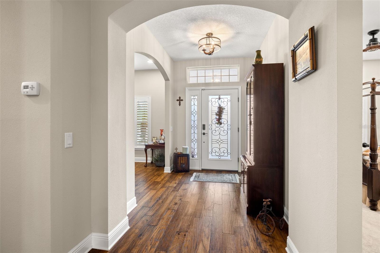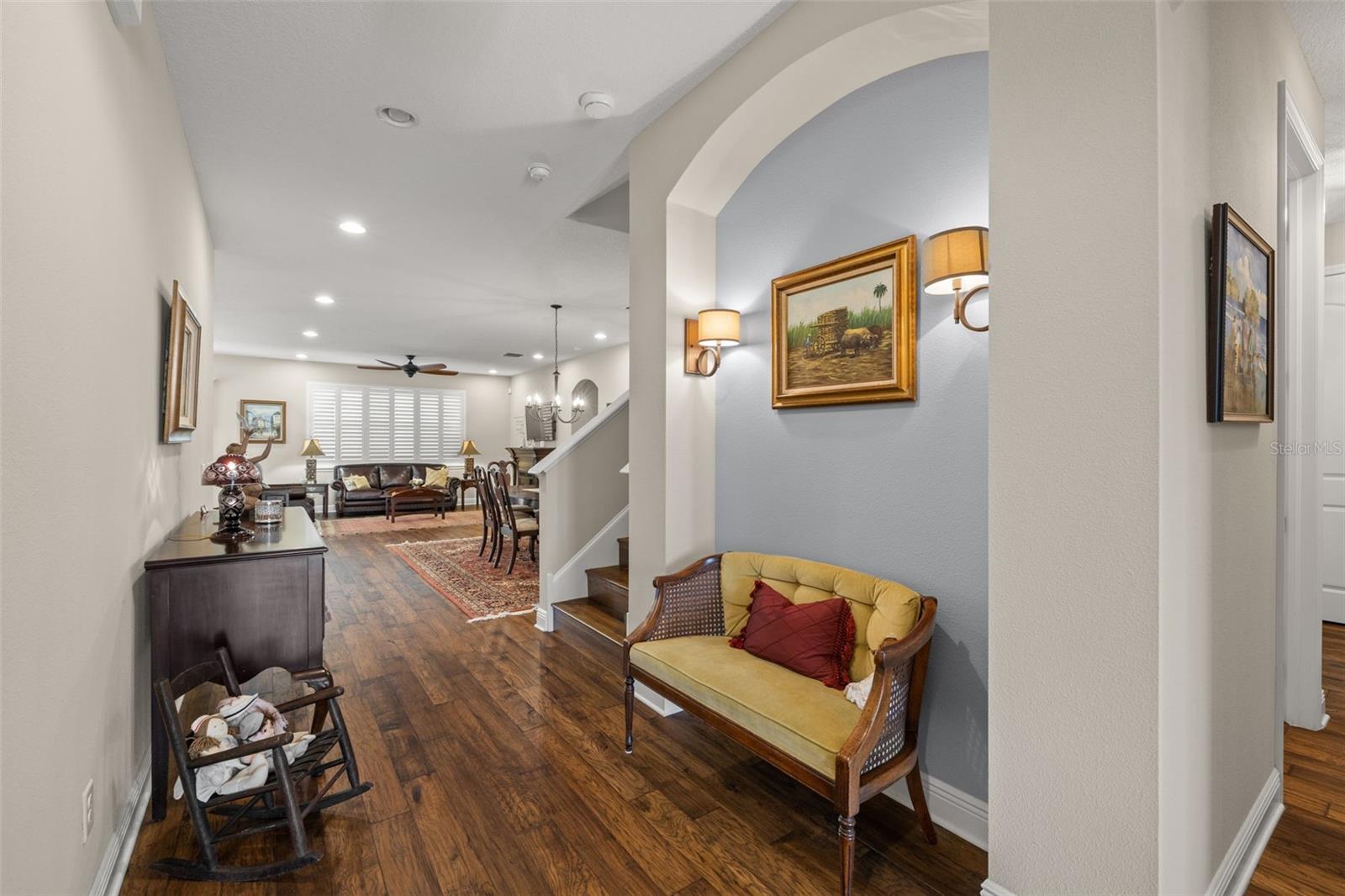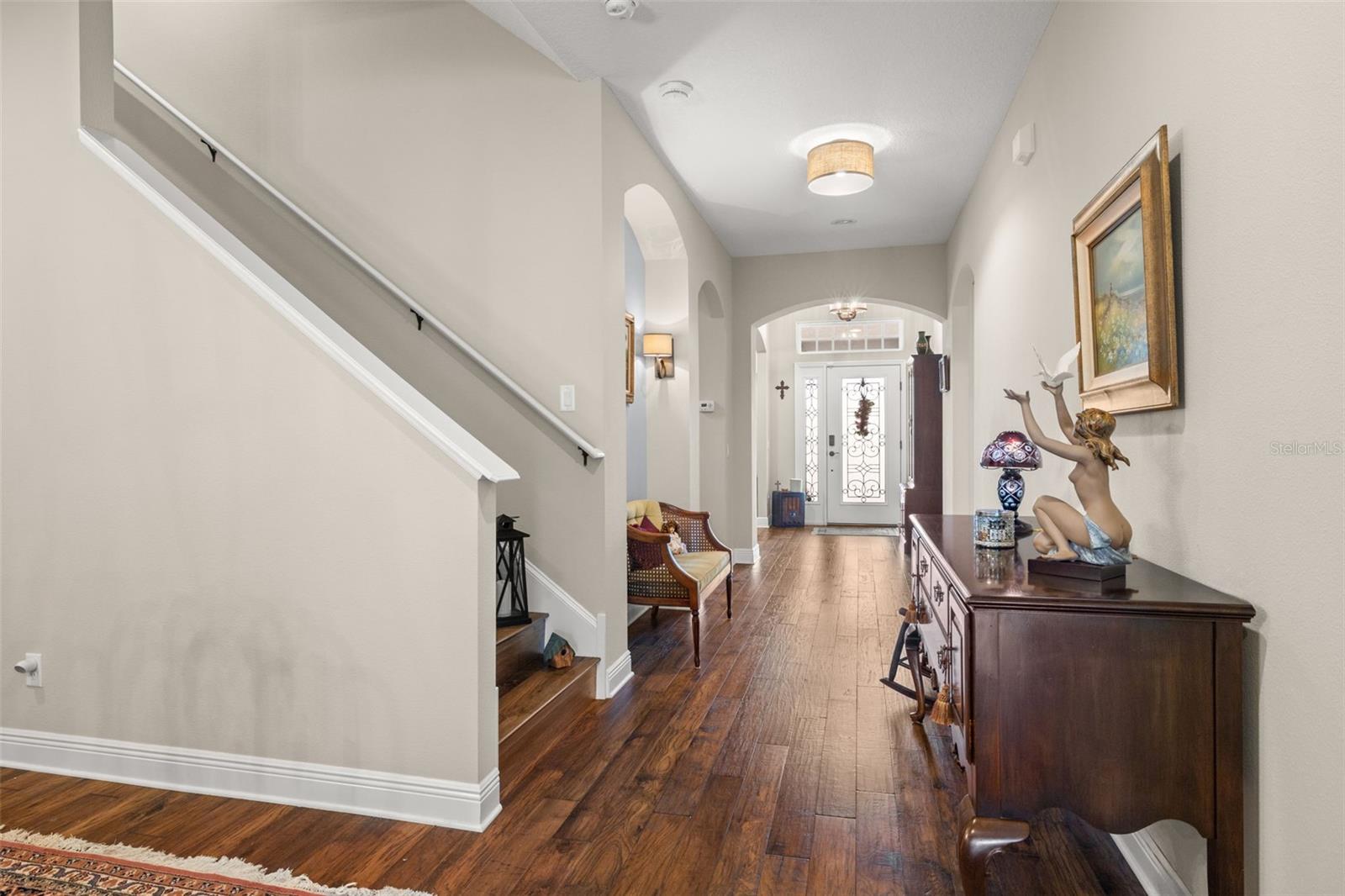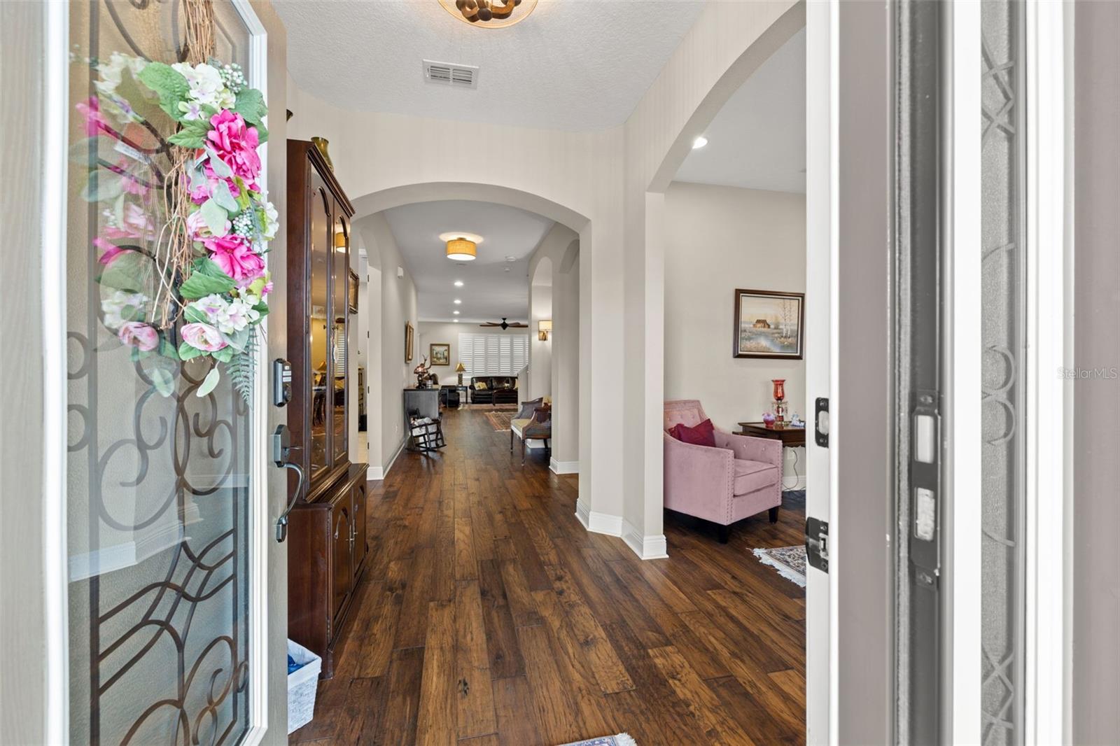 Don’t miss this stunning executive home in Connerton, Pasco’s premier community. At over 3,100 square feet this open concept Roxbury II from M/I Homes is sprinkled w/upgrades throughout. This luxurious home features hardwood flooring throughout the main living area, 10-foot ceilings, 8-foot doors, 6” baseboards, custom farmhouse light fixtures, hand-picked ceiling fans and plantation shutters. Enter the home into the foyer and immediately to your right is the archway into the ample sized formal living room/den/office. A few feet further to the left and you will find bedrooms 2/3 with a full bath in-between w/granite countertops and a custom step-in shower w/decorative Listello Tile. Follow a few more feet to the right and you will find the archway leading to the powder bathroom, large laundry room w/cabinets, sink and storage closet and door to the garage. From here you can also take the hardwood covered stairs up to the enormous 2nd story bonus room w/trey ceiling. Let your imagination run wild. Man cave, theater room, entertainment space, 4th-bedroom, guest quarters, music room its entirely up to you. 2nd story also finds a conveniently placed full bathroom and is also plumbed for a wet-bar. Back down the stairs and to your right is the main living area with the invitingly bright and roomy family room and a formal dining area w/room for a large table. The open concept means you will never miss out on the action while in your dream kitchen featuring granite countertops, oversized island and breakfast bar, a spacious pantry w/upgraded shelving and decorative frosted glass pantry door. The kitchen has LEVEL 4 upgraded 42" Timberlake cabinets w/caramel glaze and crown molding, tile backsplash, stainless steel GE Profile appliances w/the desirable gourmet kitchen package featuring a double oven and natural gas cooktop. There is also a kitchenette next to the sliders out to the screened-in lanai. The rear of the home is the location of the lavish Master Suite with the bedroom featuring a large trey-ceiling, hardwood floors and his and hers closets w/organizers and a drop-dead gorgeous master bathroom w/French Door entry and dual sinks, granite countertops, a garden tub w/decorative LISTELLO tile, a large stand-up walk-in shower featuring a rain shower head and matching LISTELLO tile and a private water closet. This fabulous fully updated home also features a large screened-in lanai w/privacy shades and a pavered multi-purpose area. The craftsman style elevation features beautiful exterior stone accents and a large front porch. Some additional features found in this extraordinary home include; water softener, reclaimed-water irrigation system, rain gutters, brand new AC unit, natural gas appliances, Ring doorbell and cameras, 3-car garage and oversized ¼ acre+ lot and more. Award winning Connerton provides the ideal mix of nature and resort style living. This self-contained master-planned community offers miles of walking trails and designated conservation spaces and is centered around Club Connerton the 10,000 square foot clubhouse, which serves as the social hub and sports and recreation center of the community. With amenities such as, resort style pool and waterpark, fitness center, Kidz Zone club and Conner Town Café, tennis, volleyball, basketball, outdoor amphitheater, playground, park and the community’s own Connerton Elementary School and Fire Station and is near shops, restaurants and the Suncoast Expressway for easy commuting.