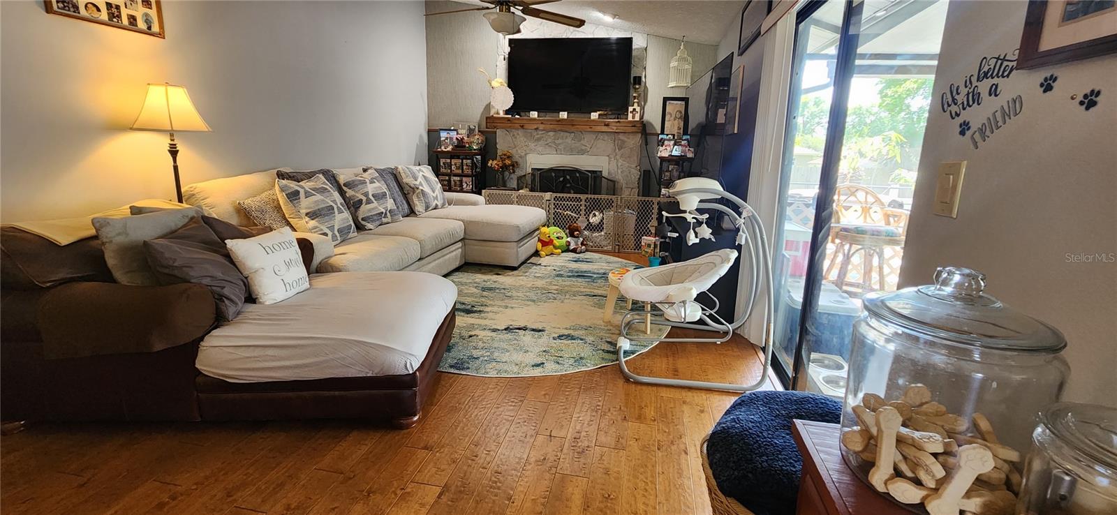 Welcome to your new home in the desirable Lake Padgett Estates East! This stunning 3-bedroom, 2-bathroom split floor plan offers a perfect blend of comfort and style. As you step inside, you'll be greeted by beautiful wood floors that extend throughout the home. The spacious family room features a cozy wood-burning fireplace, creating an inviting atmosphere for gatherings. Step outside to discover your own private retreat—a large screened patio and sundeck, perfect for relaxing or entertaining. Situated on over a 1/4 acre lot, there's ample space for pets and outdoor activities. Solar panels have also been installed to significantly reduce your electric bill. This community truly has it all. Enjoy access to the clubhouse and unwind by the community pool. For outdoor enthusiasts, there are racquetball courts, basketball courts, and a walking/running track, playground and more. Lake Padgett Estates East is conveniently located near shopping, restaurants, and entertainment. Commuting to Tampa is a breeze with quick access to I-75 and the Suncoast Parkway. Don't miss out on the chance to own this beautiful home in a prime location. Come see it today!