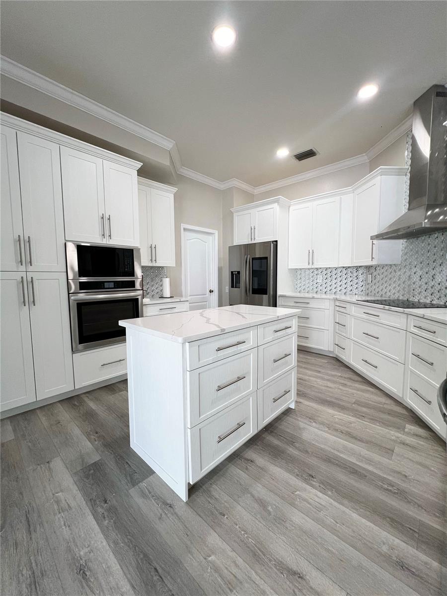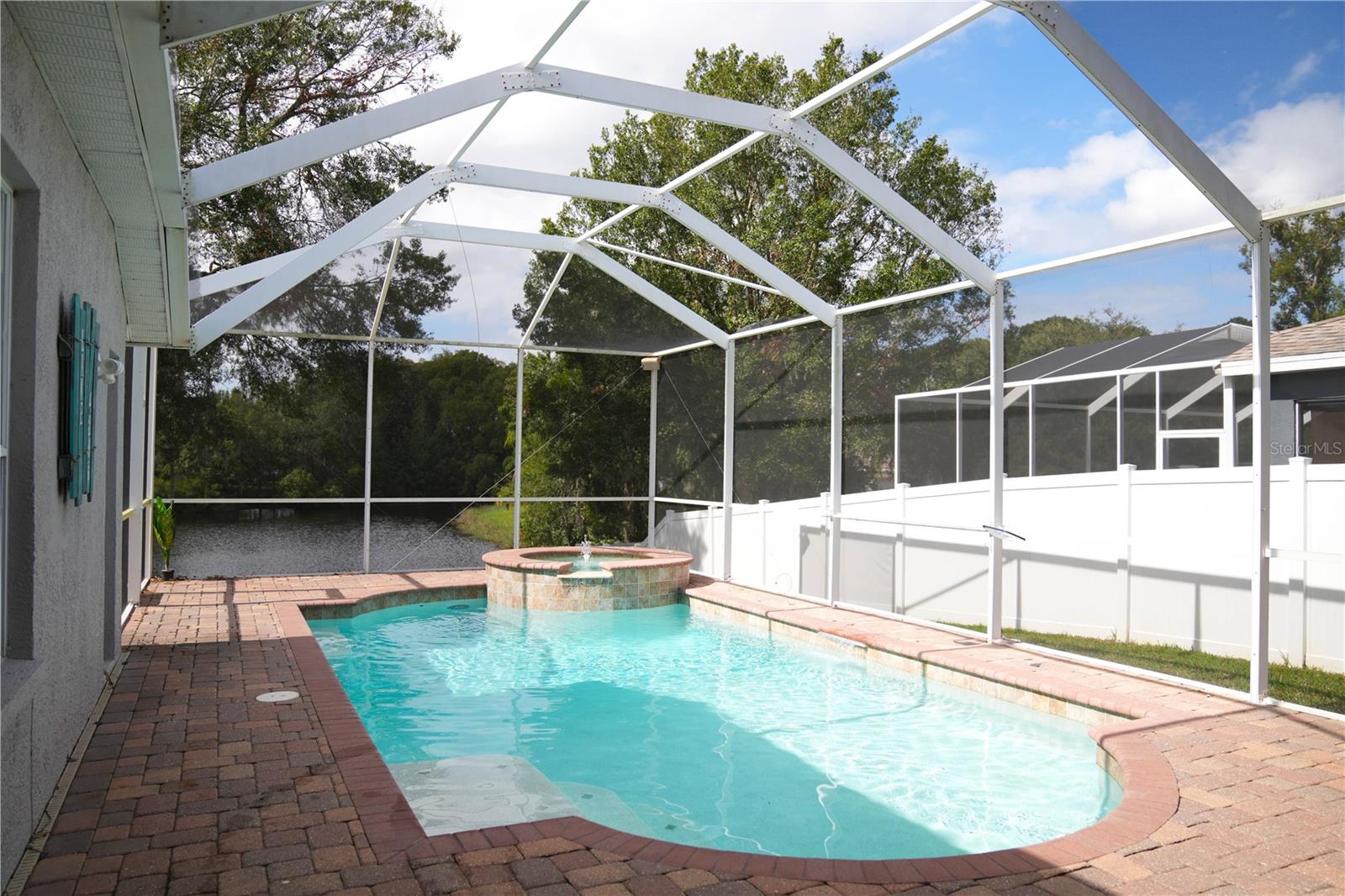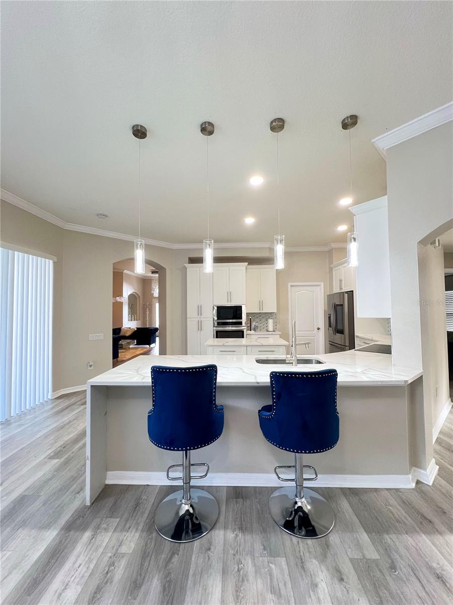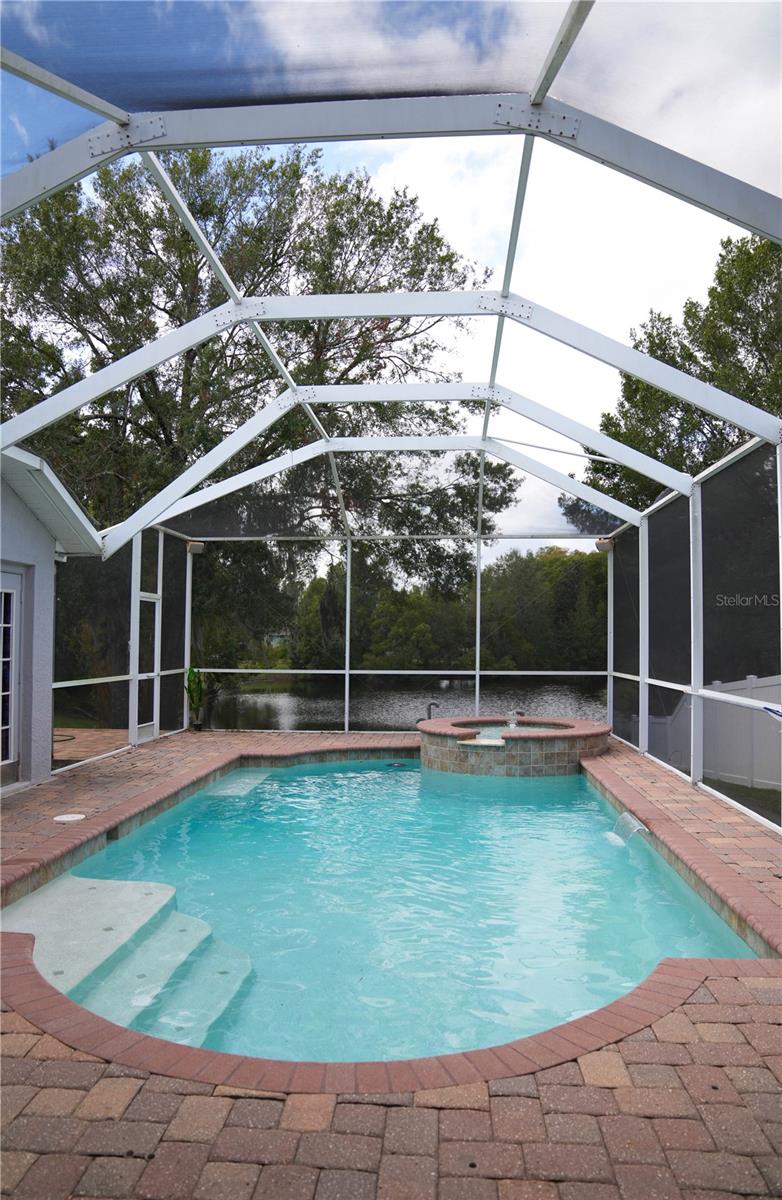 Offering 4 bedroom, 3 bath, and 3 cars Garage. Also, a private salt pool with heater, and spa overlooking a serene Lagoon. Very private house Located in the Desirable gated community of Bell Landings. This home boasts an open floor plan, Crown Molding, High Ceiling, and more extras. Freshly painted inside this year. There is a large living room area perfect for the family or entertaining. Luxurious Kitchen completely remodeled with QUARTZ countertop, and Stainless Steel appliances. Smart Refrigerator. Cooktop with hood. The master bedroom is located directly off the Living Room and has sliders that open to the Lanai/pool area. The master bathroom entails double sinks, a vanity area, garden tub, separate shower, and walk-in closet. The gorgeous pool home is meticulously cleaned, with a relaxing peacefully backyard. Stop by today to see this home before it is gone!
