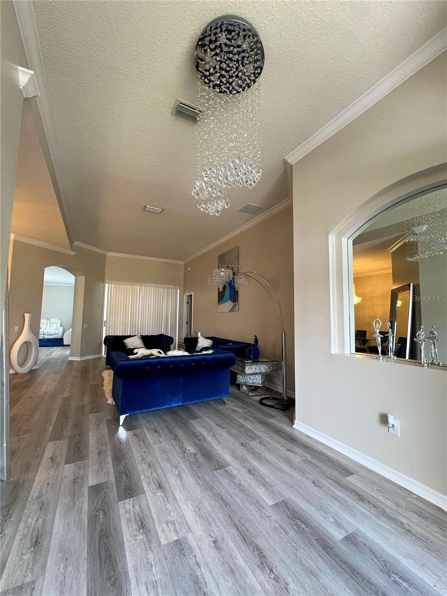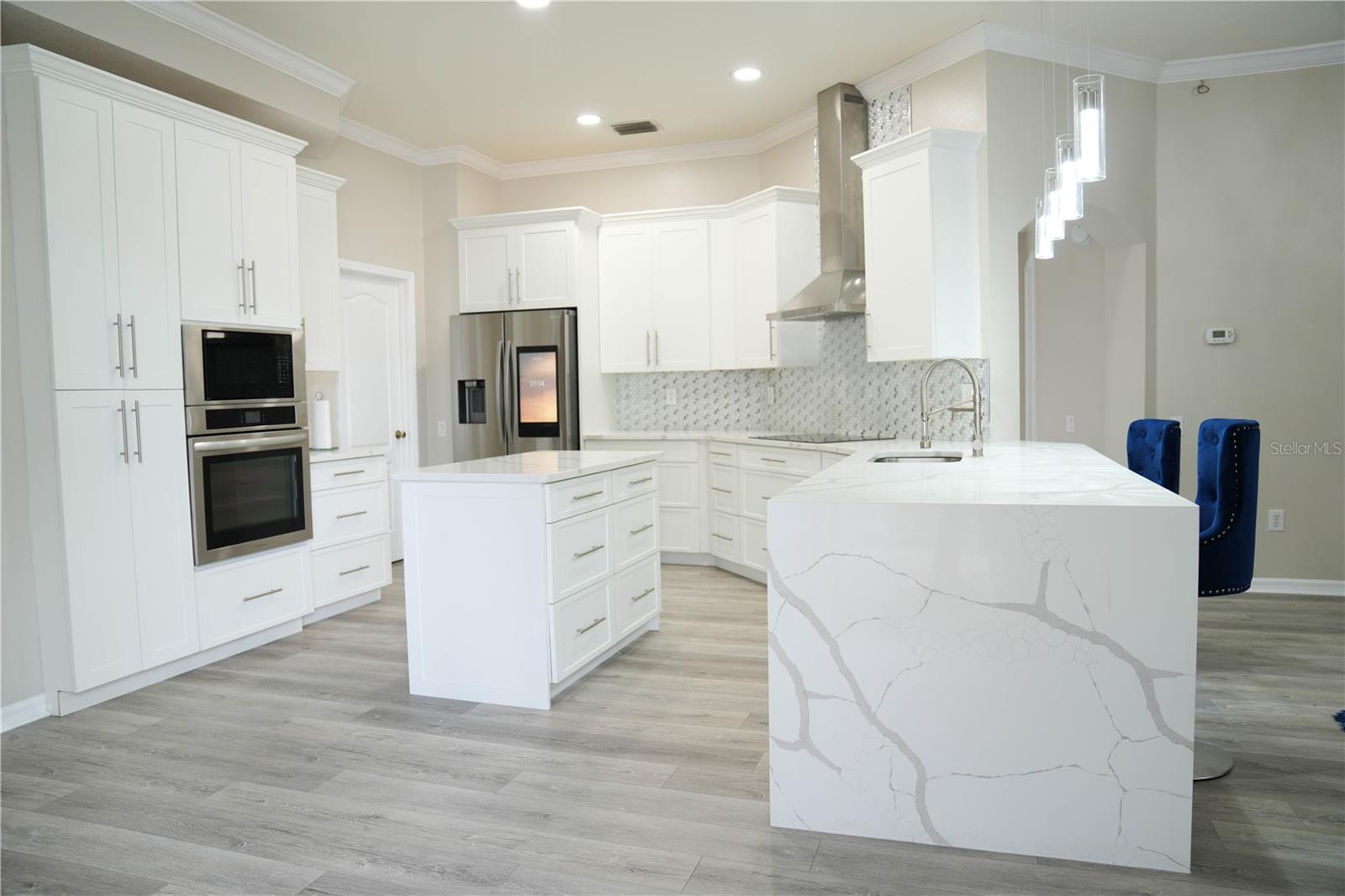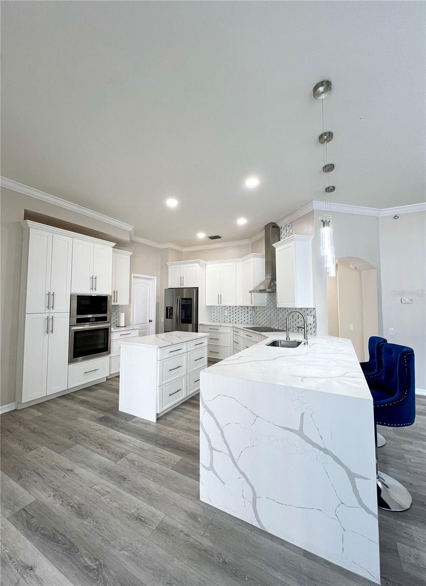 Offering 4 bedroom, 3 bath, and 3 cars Garage. Also, a private salt pool with heater, and spa overlooking a serene Lagoon. Very private house Located in the Desirable gated community of Bell Landings. This home boasts an open floor plan, Crown Molding, High Ceiling, and more extras. Freshly painted inside this year. There is a large living room area perfect for the family or entertaining. Luxurious Kitchen completely remodeled with QUARTZ countertop, and Stainless Steel appliances. Smart Refrigerator. Cooktop with hood. The master bedroom is located directly off the Living Room and has sliders that open to the Lanai/pool area. The master bathroom entails double sinks, a vanity area, garden tub, separate shower, and walk-in closet. The gorgeous pool home is meticulously cleaned, with a relaxing peacefully backyard. Stop by today to see this home before it is gone!