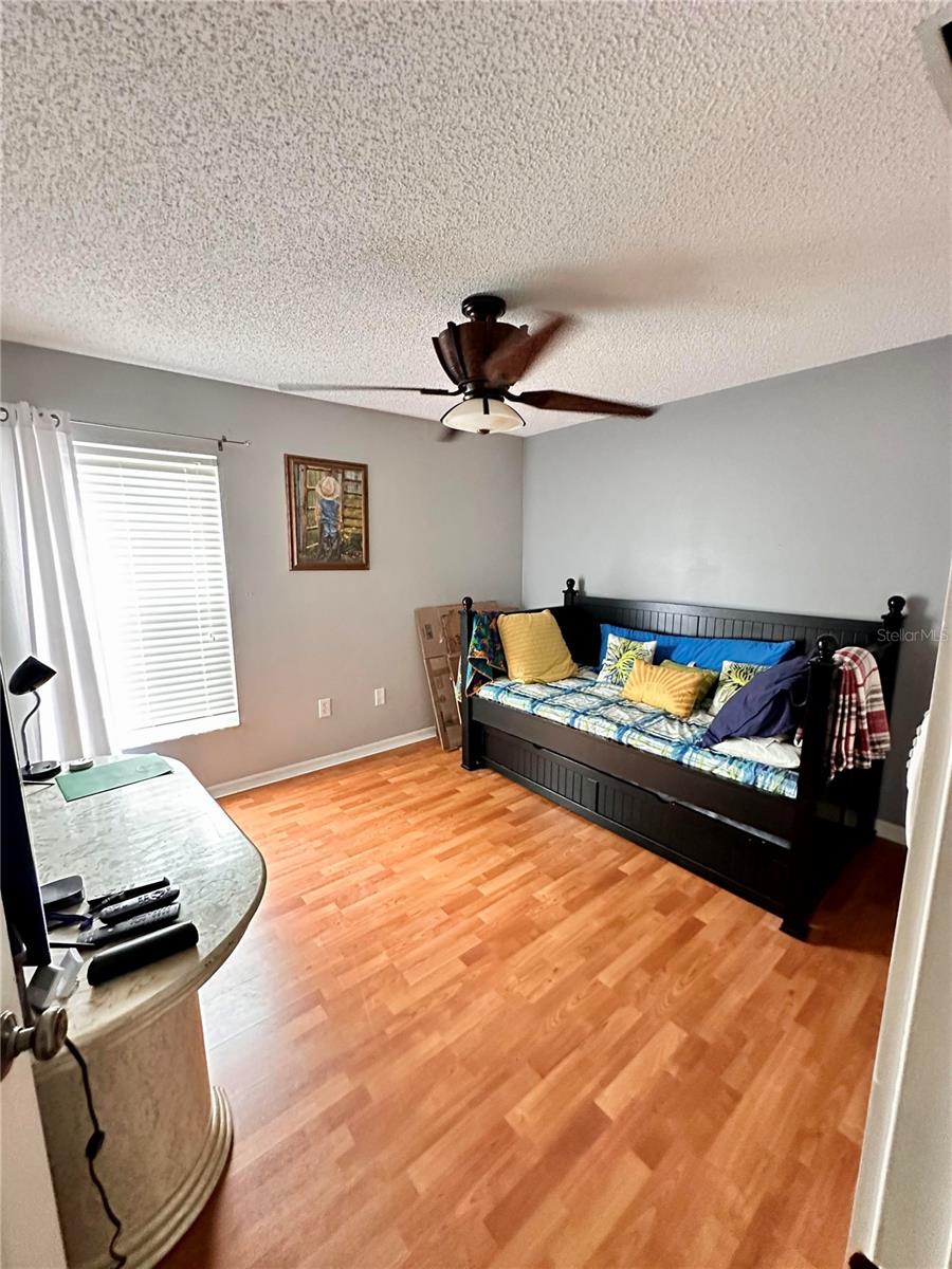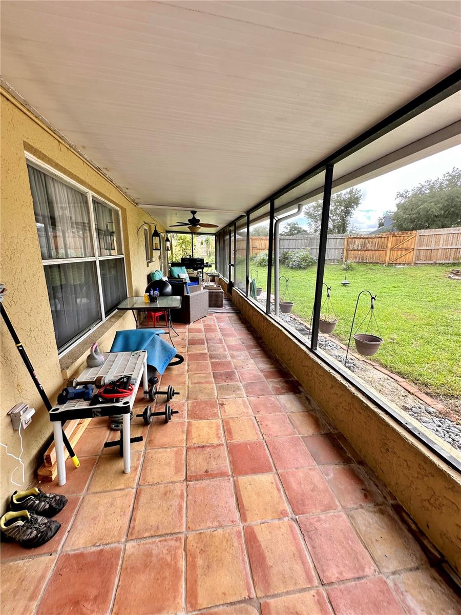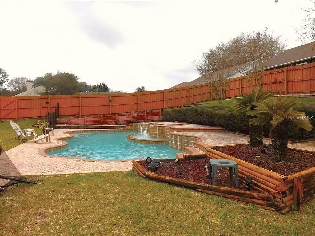 Located on a quiet cul-de-sac, in NO FLOOD OR EVACUTION ZONE, this charming single-story home offers 3 bedrooms, 2 bathrooms, and a 2-car garage, with 1,952 square feet of heated living space. The home includes an alarm system, paneled doors, and a spacious backyard with a saltwater pool. The kitchen features white countertops and stainless steel appliances, built-in shelves, and recessed lighting. The family room is cozy with hardwood floors, a wood-burning fireplace, recessed lighting, and plant shelves. It also has a pantry and sliding doors leading to the lanai, which is great for indoor-outdoor living. The living and dining rooms have laminate flooring. There’s also a hall closet for extra storage. The master bedroom has laminate floors, and French doors to the lanai. The en-suite bathroom includes dual sinks, a tub, a walk-in shower, a walk-in closet, and a separate commode area with storage. Bedrooms 2 and 3 also have laminate floors and walk-in closets. The second bathroom has a tub/shower combo. Separate laundry room. Outside, the gorgeous large backyard is ideal for entertaining, with a saltwater pool, two fountains, a spa, and brick pavers. The fenced yard provides privacy. The house is located in the desirable Twin Lakes neighborhood, you can access fantastic amenities, including a playground, pool, sidewalks, low HOA, no CDD, and fishing opportunities. It is close to medical facilities, shopping, I-75, Veterans Expressway, and premium outlets, just 30 minutes from the airport. The roof was replaced in 2012.