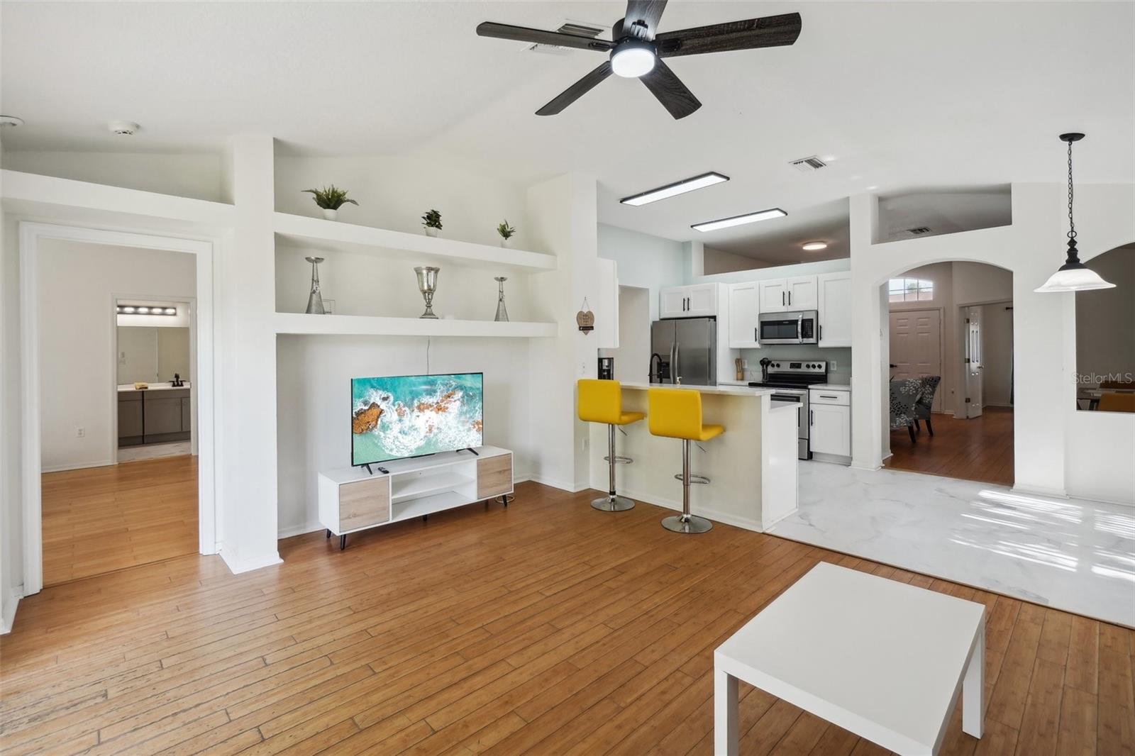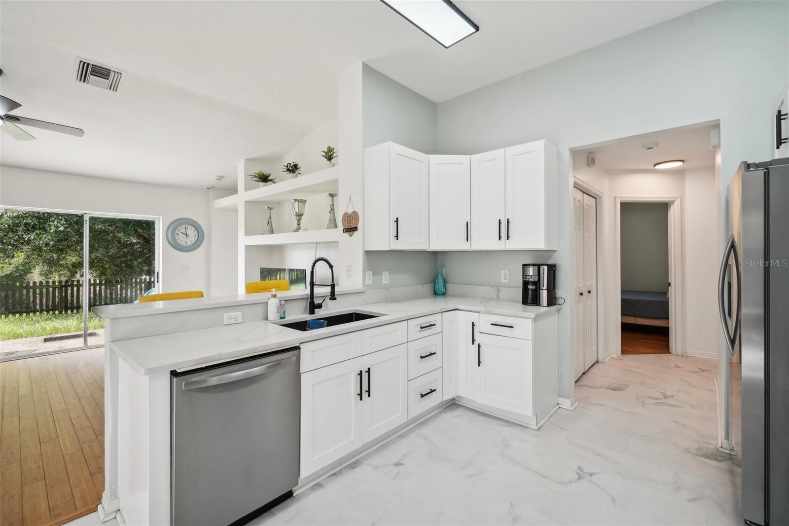 Welcome to your dream family home in the sought-after Sable Ridge community of Land O' Lakes, Florida. This spacious 4-bedroom, 2-bathroom residence combines modern comfort and convenience, making it ideal for family living. Located just minutes from the Tampa Premium Outlets, you'll have easy access to shopping, dining, and entertainment. Inside, the home features a beautifully updated interior, including a recently painted property and a brand-new kitchen with modern shaker cabinets, stainless steel appliances, and a modern deep sink. With no carpet throughout, maintenance is a breeze, and the home remains allergen-free. The open-concept living space offers a perfect flow for daily living and entertaining, creating a welcoming atmosphere for family gatherings. Each of the four bedrooms is generously sized, providing plenty of room for everyone. The master suite includes a private en-suite bathroom and ample closet space for added convenience. Both full bathrooms are equipped with modern fixtures and abundant storage. The property can be sold partially furnished, and the private backyard offers a peaceful retreat, with thoughtful landscaping and only one neighboring property on the right for extra privacy. Additionally, the spacious two-car garage provides ample parking and storage space. Located in the quiet and highly desirable Sable Ridge neighborhood, known for its top-rated schools, this home is a fantastic opportunity. Schedule your showing today and experience all that this wonderful property has!