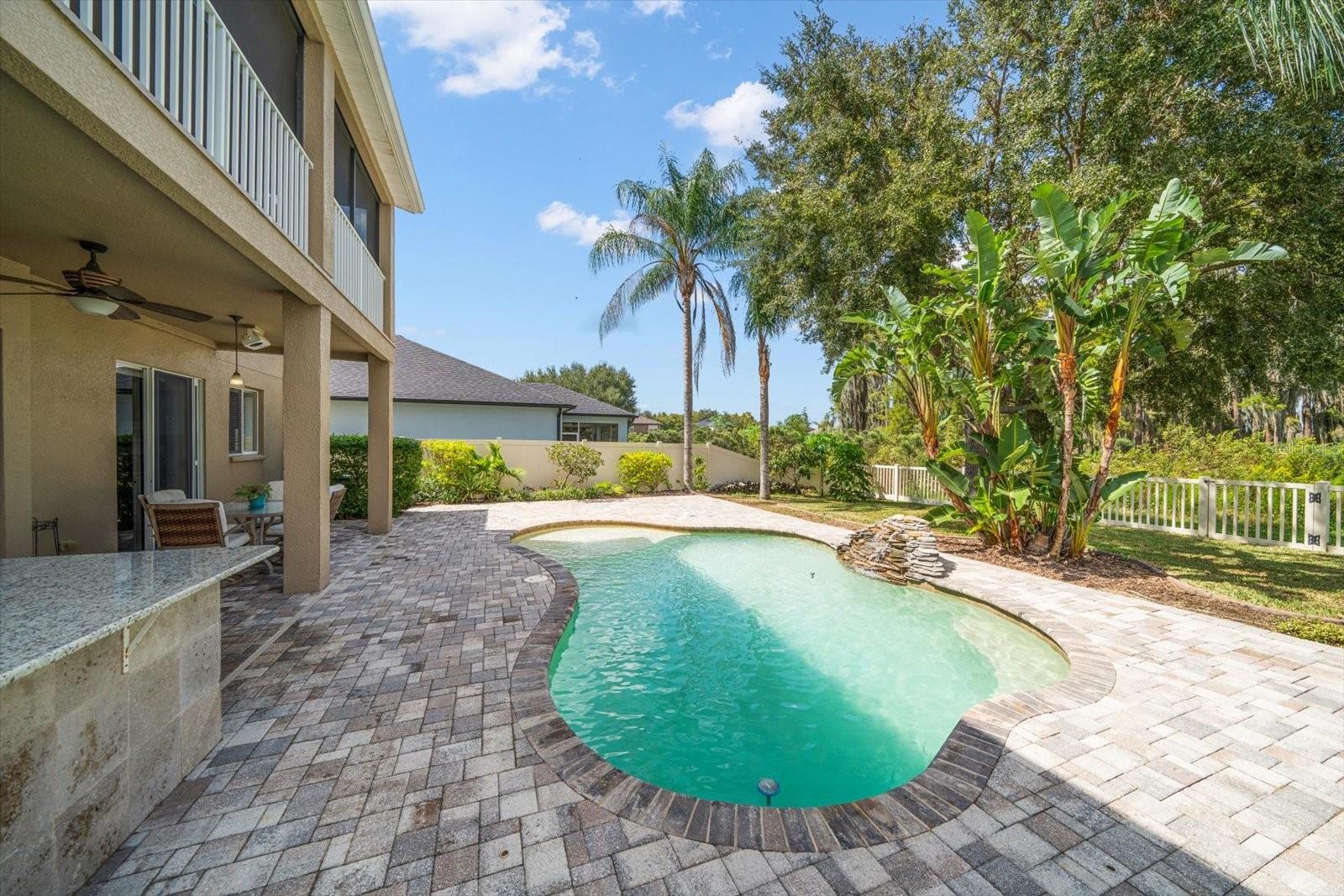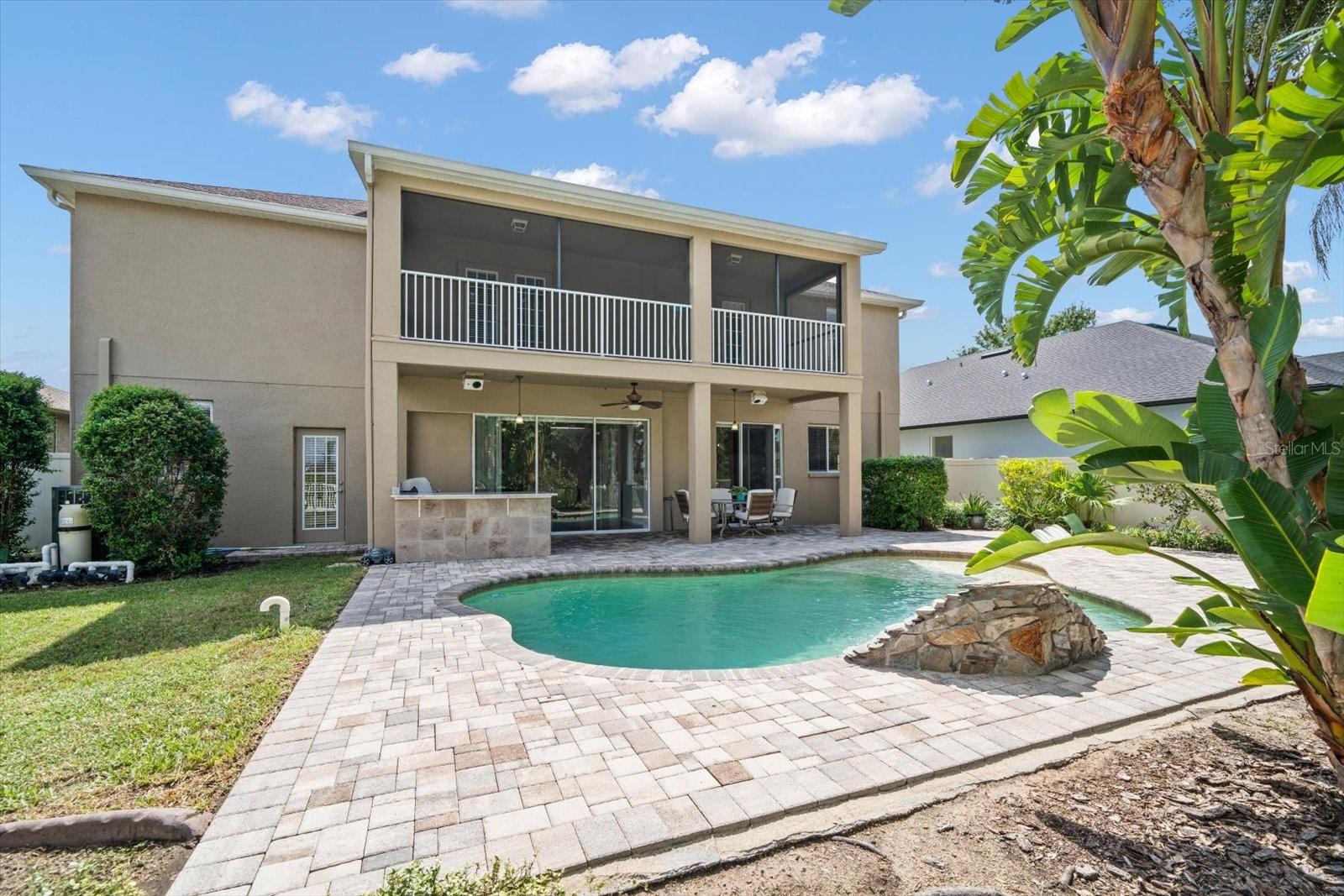 ***BRAND NEW ROOF BEING INSTALLED JUNE 2025! Welcome to your own slice of Florida paradise in the highly sought-after community of Ballantrae. Perfectly positioned on a quiet conservation lot with peaceful pond views and no rear neighbors, this beautifully upgraded 5-bedroom, 3-bath home offers the ultimate blend of privacy, functionality, and resort-style living—all just minutes from top-rated schools, shopping, dining, and the Suncoast Parkway. Designed with everyday comfort and easy entertaining in mind, the spacious 3,461-square-foot layout includes formal living and dining areas, soaring ceilings, and a chef-inspired kitchen featuring granite countertops, 42” maple cabinets with pull-out shelves and lazy Susan, a brand-new cooktop oven, and ample bar seating. Upstairs, you’ll find newly installed laminate flooring throughout all bedrooms and a large bonus room complete with a wet bar—ideal as a media room, playroom, or guest retreat. The luxurious primary suite serves as a true escape, offering private balcony access, walk-in closets, and a remodeled en suite bath with granite counters, dual vanities, and a frameless glass shower. Two additional bathrooms also feature granite updates, while a newer A/C unit (2022) ensures year-round comfort. Step outside to your private oasis, where a screened-in saltwater pool and spa, outdoor summer kitchen with granite counters and built-in grill, and a fully fenced yard await—framed by peaceful water and nature views. Whether you’re hosting a summer cookout or enjoying a sunset by the pool, this home delivers the ultimate Florida lifestyle. Additional upgrades include a new salt cell system for the pool (2023), a new garage door motor (2024), fresh neutral interior paint (2022), and recent exterior pressure washing of the home, driveway, and pool deck (2024). Located on a 65-foot-wide lot with a 3-car garage, this home also provides access to Ballantrae’s resort-style amenities including a clubhouse, community pool, tennis and basketball courts, playgrounds, and parks. With low HOA fees, this move-in-ready home offers a rare opportunity to enjoy modern comfort, a private pool, and conservation views—all in one of Land O’ Lakes’ most desirable neighborhoods.