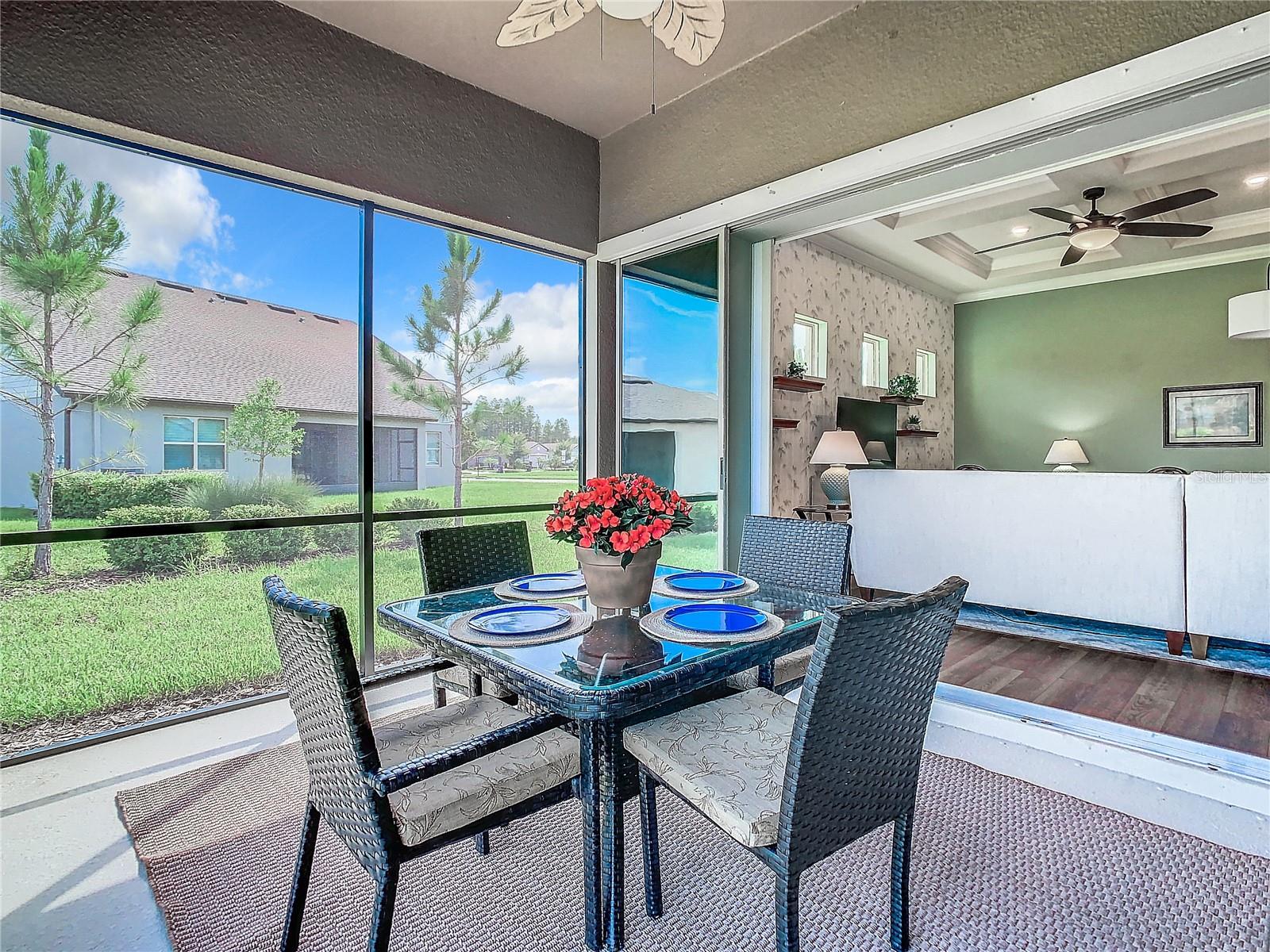 AWESOME PRICE ADJUSTMENT! Welcome to your dream home! This stunning 3 BEDROOMS, 2-bath residence has an office/flex space and sits on a coveted CORNER LOT in the sought-after community of 55+ Del Webb Bexley. You will fall in love with this beautifully designed, MAINTENANCE-FREE home with a picturesque WATER VIEW. Notice the pavered driveway and the lush, professionally-manicured lawn and beautiful foliage. The decorative, glass front door welcomes you into the grand foyer. The elevated almost 11-FOOT CEILINGS draw your eyes upward into the living room area, adorned with crown molding. The interior is thoughtfully-designed with elegant finishes throughout, including luxury vinyl plank flooring, 8-feet interior doors that enhance the sense of space, four clerestory windows that bring in natural light and a soaring coffered ceiling. The gourmet kitchen is equipped with stainless-steel Kitchen Aid appliances, featuring a built-in oven and microwave, staggered cabinets, an extended island, and gleaming quartz countertops. This kitchen is designed for both style and functionality. The upgraded backsplash and luxury vinyl flooring complete the modern look. Enjoy the serene POND VIEW from your dining area or step through the pocket sliding doors to the screened lanai—perfect for relaxing or entertaining. The primary suite is a true retreat, featuring an ensuite bathroom with a ZERO-ENTRY SUPER SHOWER, dual sinks with quartz countertops, and a private water closet. Two additional bedrooms share a beautifully appointed secondary bath with ceramic tile flooring, a mirrored vanity, and a tub/shower combo. Don't miss the OFFICE with French doors near the front of the home! Functionality meets elegance in the extra-large laundry room, equipped with ample cabinetry, a utility sink, and ceramic tile flooring. Other upgrades include the energy package with foam filled block, radiant barrier and AC blue light sensor/filter, whole-house water filtration system and tankless gas water heater. There is an active termite warranty in place that is transferable. This home isn’t just a place to live, it’s a canvas for your new, vibrant lifestyle! The community amenities are unparalleled, featuring a resort-style pool, resistance pool, lap pool, hot tub and cabanas. The state-of-the-art 19,000 square foot clubhouse includes a beer and wine bar, a café/bistro and a lounge with an outdoor fireplace. Active residents enjoy tennis and pickleball courts, fitness center, club/craft rooms and a dog park for your furry friends. This is a vibrant community that offers a wide range of social and recreational activities, organized by a full-time activity director. Check out the pictures! All this in close proximity to healthcare, shopping, dining and Tampa International airport. Schedule a viewing today and make this exceptional home yours.