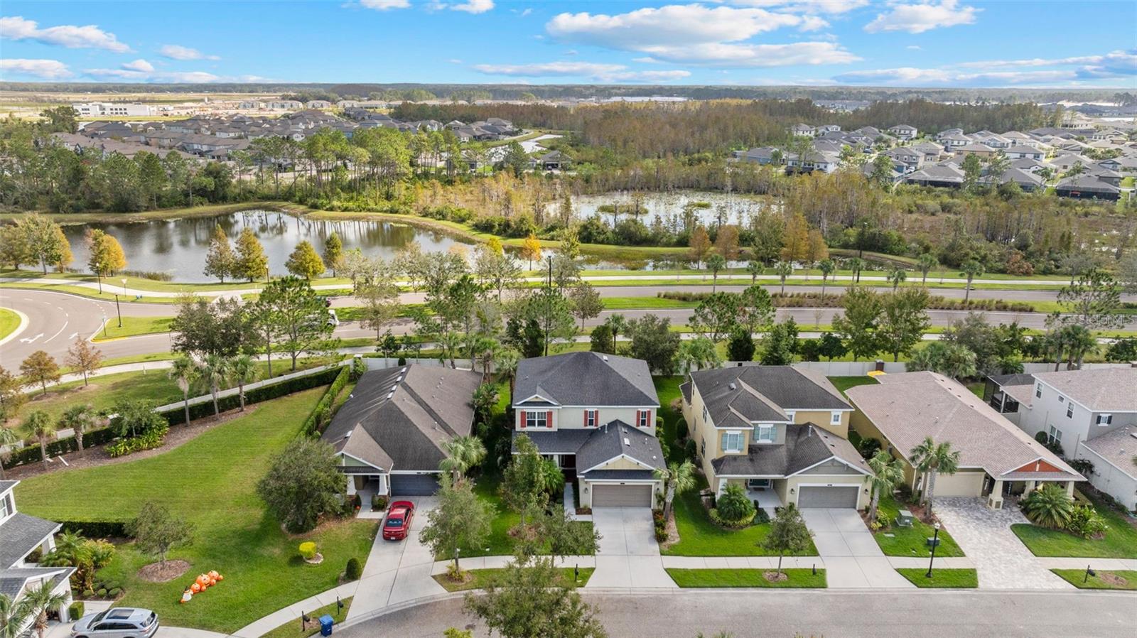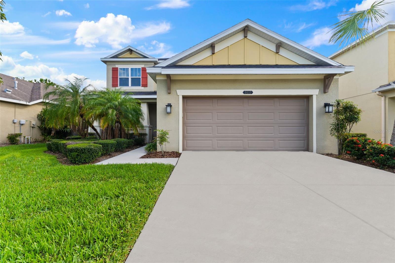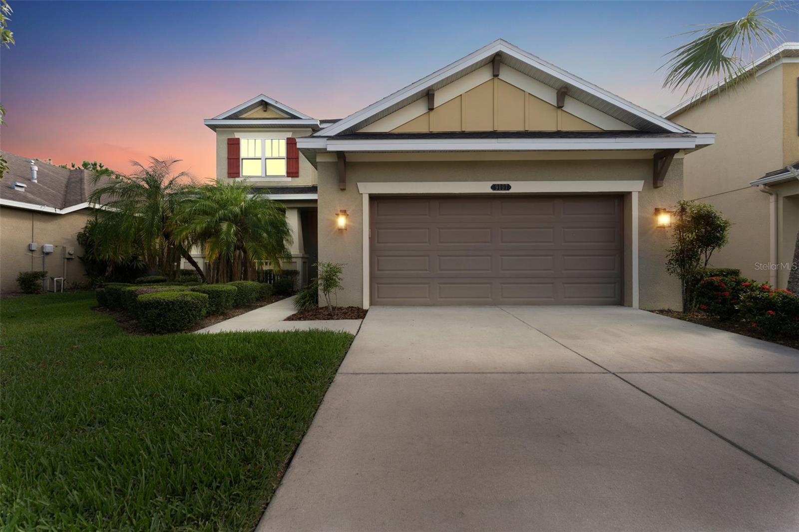 Seller is offering $10,000 towards buyer's closing costs/prepaids! Beautiful home in the gated community of Gardenia Glen in Connerton. This Craftsman style home built by Taylor Morrison features 4 bedrooms, 3.5 baths, additional den/offfice, formal dining room and two car garage with over 2,600 square feet of living space. The formal dining room has elegant wood wainscotting and the spacious kitchen includes 42-inch wood cabinets, gas stovetop, stainless steel appliances, granite countertops, large island with eat in area, separate pantry, and ample counter and storage space. There is also a dinette area for additional seating. The great room boasts volume ceilings and large windows for an abundance of natural light. The FIRST FLOOR Master bedroom features tile floors and an en-suite master bathroom with his and her sinks, walk in shower, and a separate tub as well as a walk-in closet. NO CARPET ON THE FIRST LEVEL! Stairs with wrought iron spindles lead you to the second floor where you will find a loft, office/den, three additional bedrooms, and two additional full baths. The backyard has no rear neighbors for additional privacy and a large, screened lanai with pavers. The gated community of Gardenia Glen offers low maintenance living with lawn service included in the HOA. The Connerton Community offers luxury amenities including a large resort style pool with splash park, lap pool, clubhouse, fitness center, tennis and basketball courts, dog park, walking trails, community activities, and playgrounds and is conveniently located close to restaurants, grocery stores, hospitals, and within minutes to the Veteran’s Expressway.