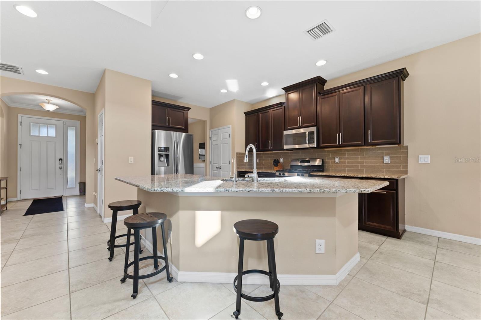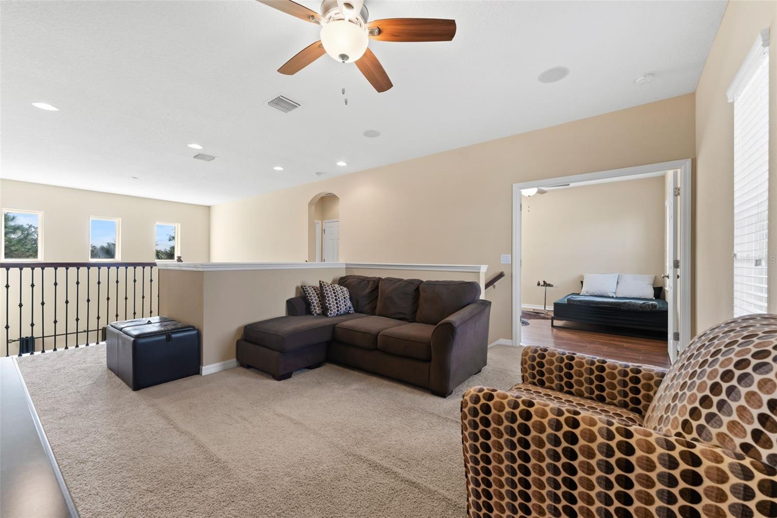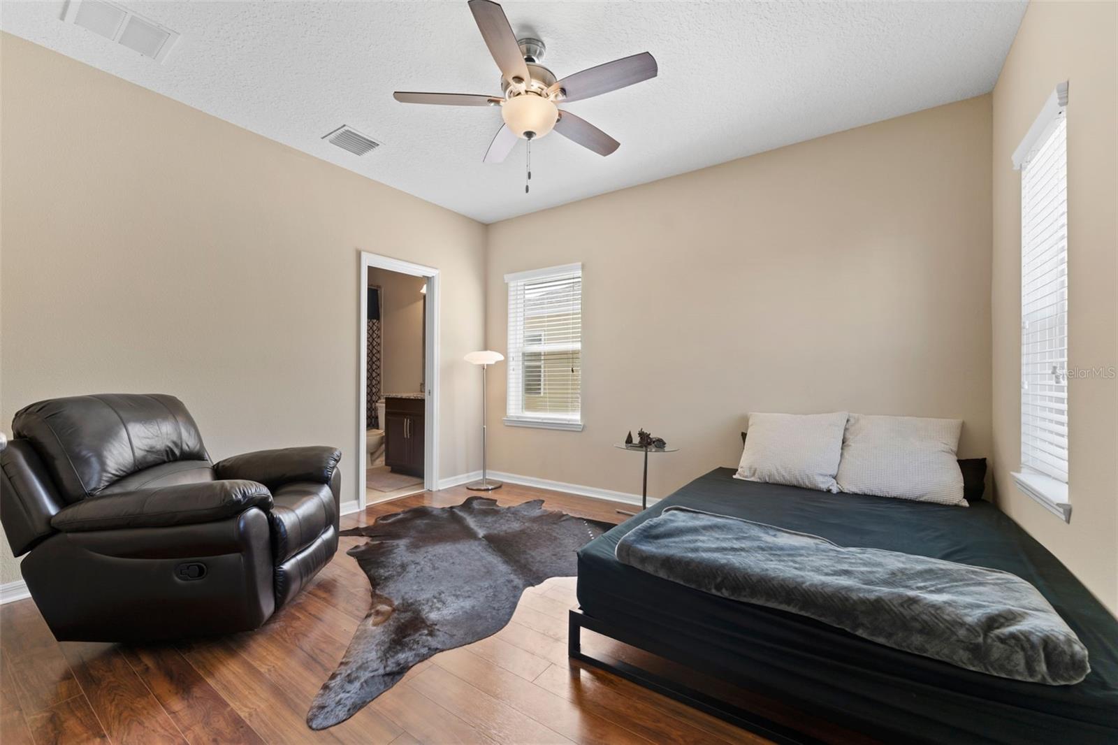Seller is offering $10,000 towards buyer's closing costs/prepaids! Beautiful home in the gated community of Gardenia Glen in Connerton. This Craftsman style home built by Taylor Morrison features 4 bedrooms, 3.5 baths, additional den/offfice, formal dining room and two car garage with over 2,600 square feet of living space. The formal dining room has elegant wood wainscotting and the spacious kitchen includes 42-inch wood cabinets, gas stovetop, stainless steel appliances, granite countertops, large island with eat in area, separate pantry, and ample counter and storage space. There is also a dinette area for additional seating. The great room boasts volume ceilings and large windows for an abundance of natural light. The FIRST FLOOR Master bedroom features tile floors and an en-suite master bathroom with his and her sinks, walk in shower, and a separate tub as well as a walk-in closet. NO CARPET ON THE FIRST LEVEL! Stairs with wrought iron spindles lead you to the second floor where you will find a loft, office/den, three additional bedrooms, and two additional full baths. The backyard has no rear neighbors for additional privacy and a large, screened lanai with pavers. The gated community of Gardenia Glen offers low maintenance living with lawn service included in the HOA. The Connerton Community offers luxury amenities including a large resort style pool with splash park, lap pool, clubhouse, fitness center, tennis and basketball courts, dog park, walking trails, community activities, and playgrounds and is conveniently located close to restaurants, grocery stores, hospitals, and within minutes to the Veteran’s Expressway.
