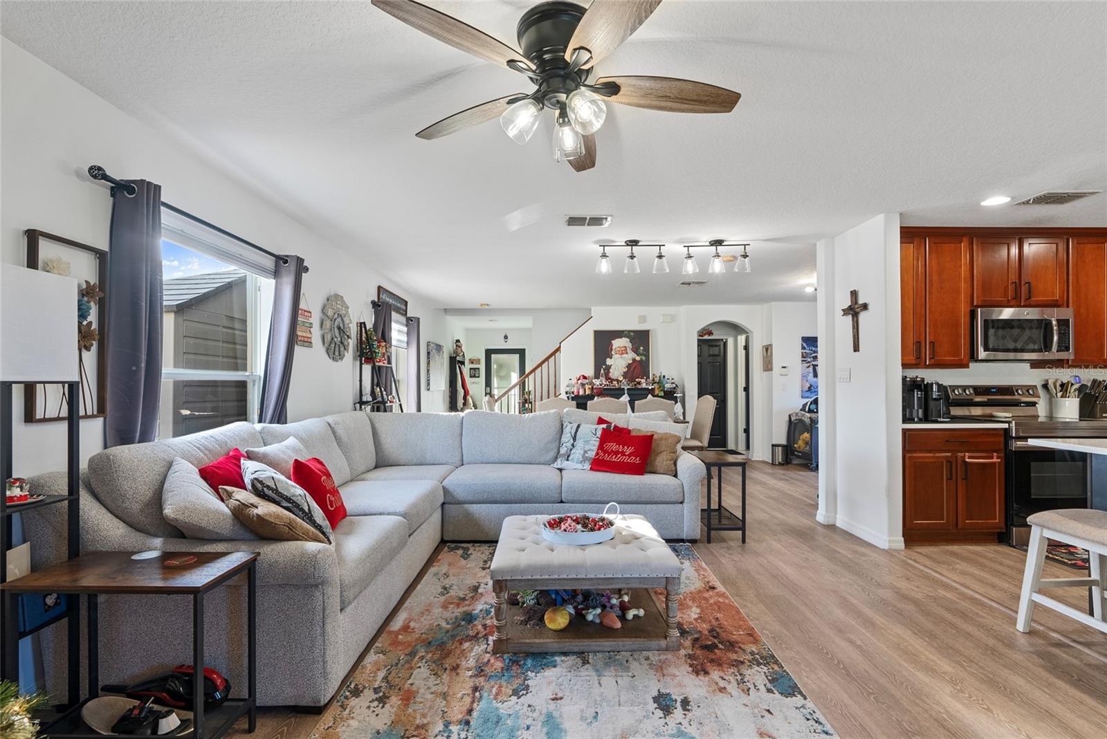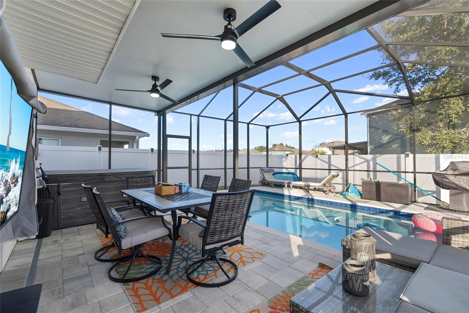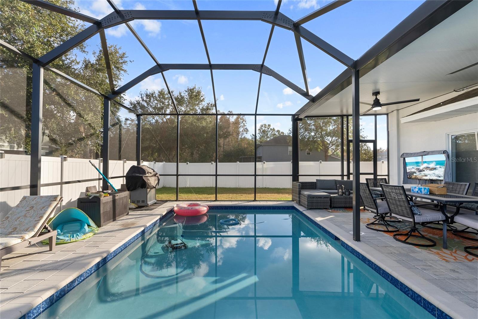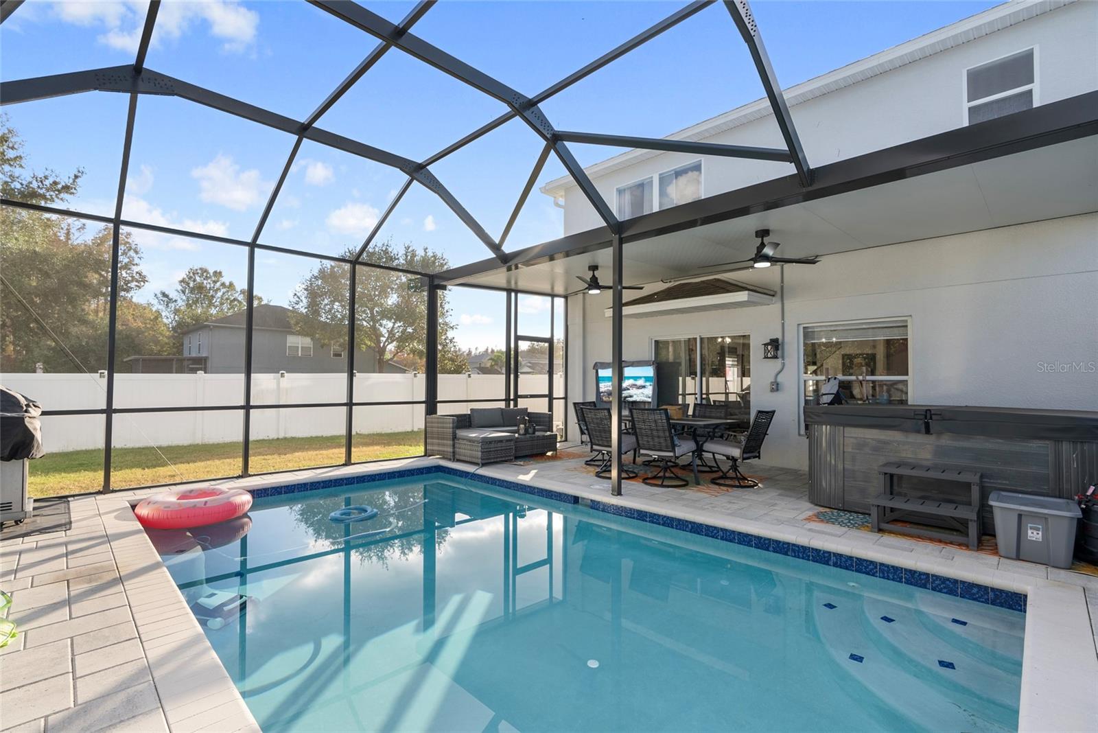 ***OWNER FINANCING AVAILABLE***MUST SEE!!! POOL HOME IN AN INCREDIBLE LOCATION! As you approach this beautiful CORNER LOT 4 bedroom, 2 1/2 bathroom 2-car garage home, you’re welcomed with a covered front patio and a NEW ‘24 hurricane impact front door. The entire home has been recently refreshed with newer paint (‘23) and luxury vinyl plank flooring (‘22) throughout the living and kitchen areas. Recessed lighting illuminates the new, sleek QUARTZ countertops (‘22), complete for family and guests with a generously extended island (‘22). Outfitted with newer stainless steel appliances (‘22), this space is perfect for casual mornings or entertaining. Sunlight pours through each large window with NEW Zebra blinds (‘24), filling the open living areas with natural light. Step into the serene primary suite, featuring a WALK IN closet and an en-suite bathroom with a soaking tub and separate shower. Three additional bedrooms and two more full bathrooms provide comfort and versatility for all of your needs- whether it be a playroom, office, lounge, or guest rooms. Outdoors, the backyard is a private oasis. A 6 ft privacy fence with dual gates surrounds the space, where you’ll find a pavered pool cage enclosing a 6 ft deep SALTWATER POOL, perfect for cooling off from the Florida sun. The backyard also features an extra-large PVC shed for storage and space for a negotiable 8-person hot tub—used only once! Additional perks include a ‘21 washer and dryer with 2 ft pedestals , a 4-TON A/C and handler with a 10-year warranty (‘22), that's motivating!! Located near SUNLAKE High School, a MECCA of shopping centers, and EASY ACCESS to SR-54.