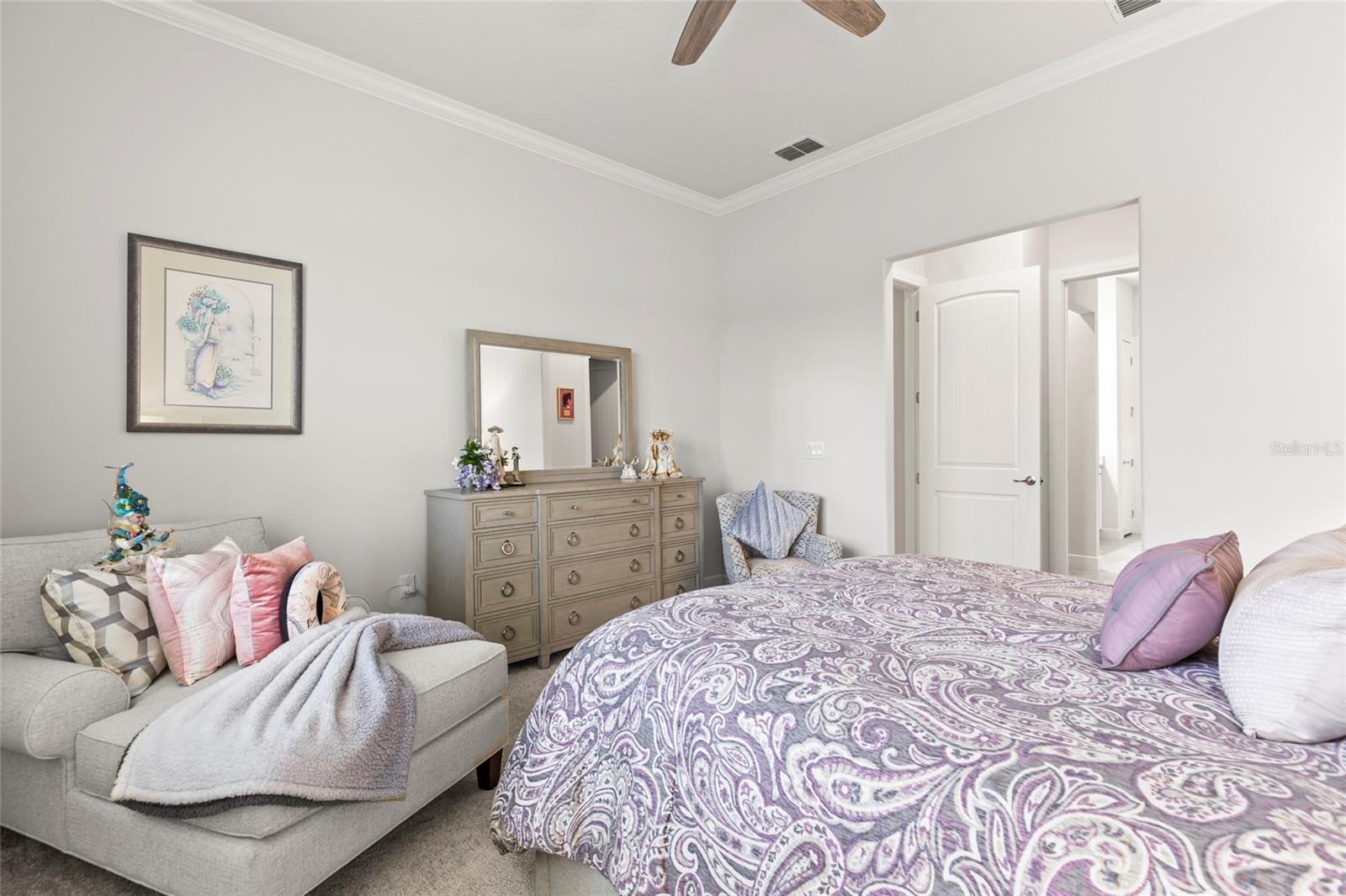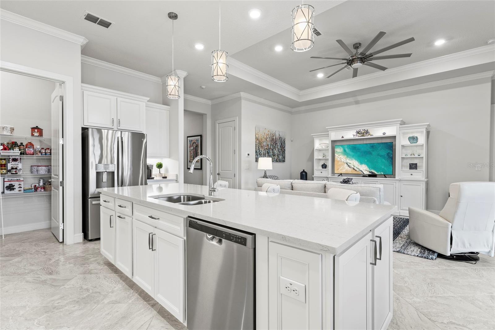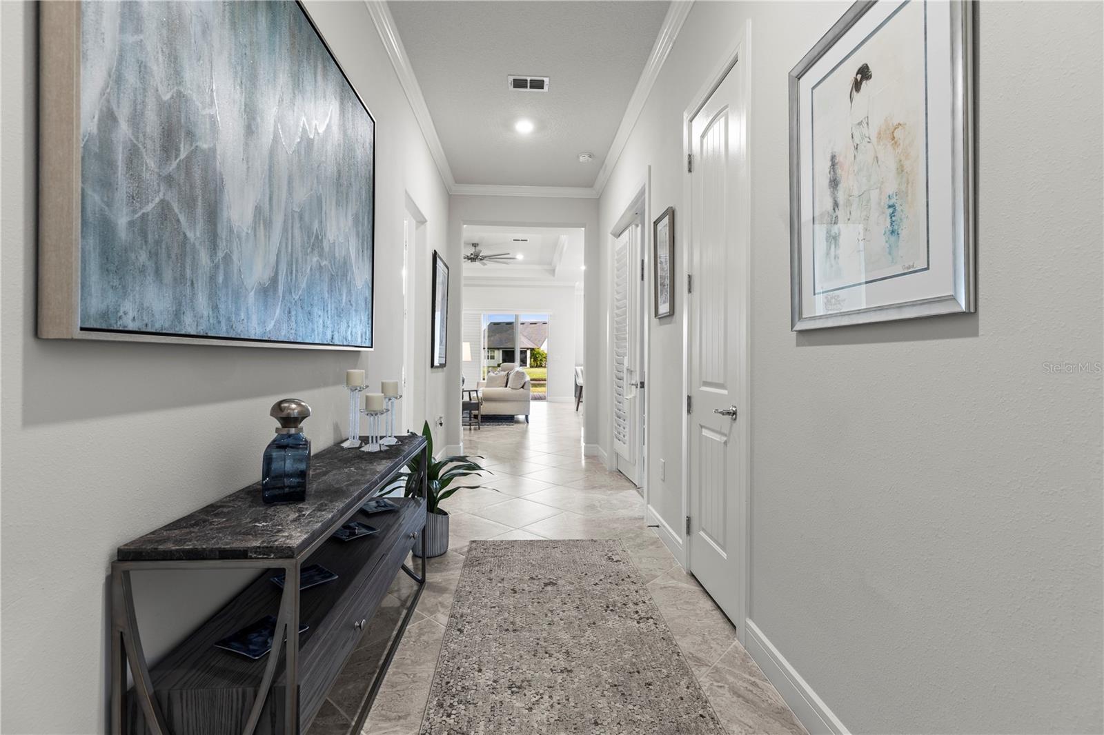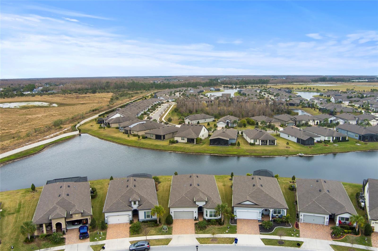 One or more photo(s) has been virtually staged. PRICE IMPROVEMENT! EXQUISITE WATERFRONT HOME WITH LUXURY UPGRADES & ACTIVE LIFESTYLE AMENITIES! Welcome to Del Webb Bexley, a sought-after gated 55+ active lifestyle community in Land O' Lakes, just minutes from shopping, dining, and stunning West Coast beaches. Built in 2021 by Pulte Homes, this Prestige model offers 2,114 sq. ft. of thoughtfully designed living space, blending modern conveniences, designer touches, and exceptional craftsmanship. From the moment you arrive, you’ll be captivated by the manicured landscaping, sealed paver driveway, and storm shutters. Step inside and discover a home filled with natural light, plantation shutters, and an inviting open floor plan. The gourmet kitchen is a chef’s dream, boasting quartz countertops, soft-close cabinets with roll-out shelves, under-island storage, a huge walk-in pantry, and top-of-the-line stainless steel appliances, including a gas range, built-in oven, and microwave. Elegant pendant lighting completes the space, making it the heart of the home. The primary suite is a true retreat, featuring dual walk-in closets, one with a convenient mini door to the adjacent laundry room, and a luxurious en-suite bathroom with his-and-her vanities, pull-out shelves, and a walk-in shower with a bench and larger openings for added accessibility. The second bedroom and full bath provide a welcoming space for guests, while the flexible third bedroom or office with French doors adds versatility to your lifestyle. The oversized two-car garage includes an extra four-foot depth for additional storage, and the laundry room is fully equipped with cabinets, a laundry sink, and counter space. The outdoor living area is equally impressive, with a spacious brick paver patio overlooking the picturesque pond—perfect for watching sunsets and enjoying the Florida lifestyle. This home also includes a tankless gas water heater, providing added efficiency and space in the garage. The Del Webb community offers an array of resort-style amenities, including lawn maintenance through the HOA, a pool with lap lanes, a resistance pool and spa, walking trails, bocce, pickleball and tennis courts, a dog park, and a community garden. A full-time lifestyle director ensures residents enjoy a calendar full of fitness classes, social events, and activities. Don’t miss the opportunity to make this beautiful residence your own and experience luxury, accessibility, and an unbeatable location in this vibrant community. Schedule your private showing today—homes like this don’t last long!