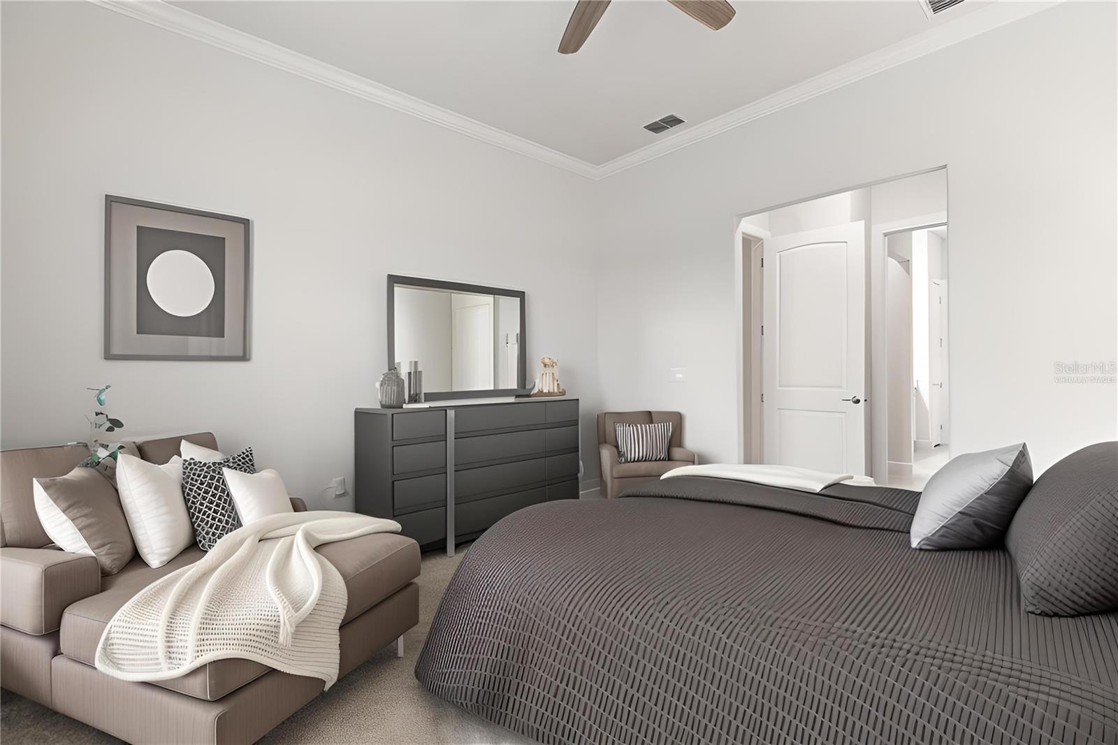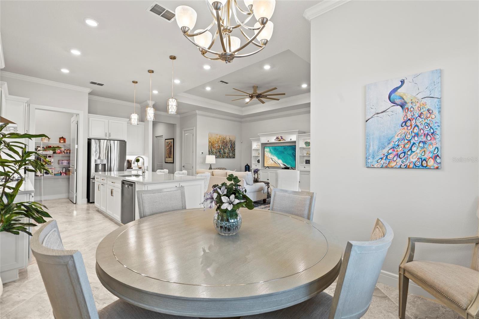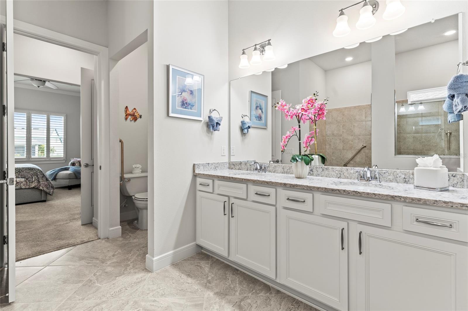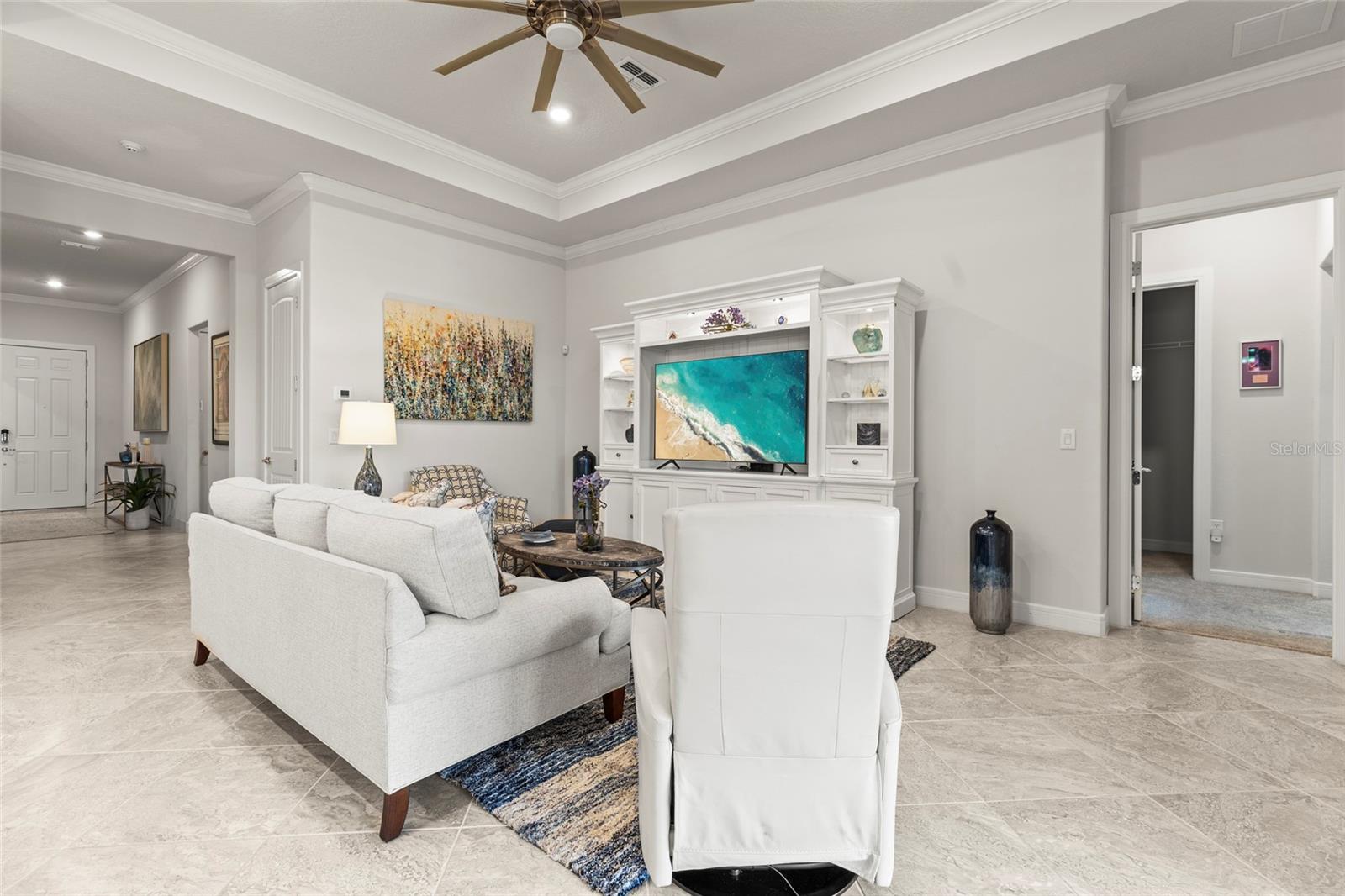 One or more photo(s) has been virtually staged. PRICE IMPROVEMENT! EXQUISITE WATERFRONT HOME WITH LUXURY UPGRADES & ACTIVE LIFESTYLE AMENITIES! Welcome to Del Webb Bexley, a sought-after gated 55+ active lifestyle community in Land O' Lakes, just minutes from shopping, dining, and stunning West Coast beaches. Built in 2021 by Pulte Homes, this Prestige model offers 2,114 sq. ft. of thoughtfully designed living space, blending modern conveniences, designer touches, and exceptional craftsmanship. From the moment you arrive, you’ll be captivated by the manicured landscaping, sealed paver driveway, and storm shutters. Step inside and discover a home filled with natural light, plantation shutters, and an inviting open floor plan. The gourmet kitchen is a chef’s dream, boasting quartz countertops, soft-close cabinets with roll-out shelves, under-island storage, a huge walk-in pantry, and top-of-the-line stainless steel appliances, including a gas range, built-in oven, and microwave. Elegant pendant lighting completes the space, making it the heart of the home. The primary suite is a true retreat, featuring dual walk-in closets, one with a convenient mini door to the adjacent laundry room, and a luxurious en-suite bathroom with his-and-her vanities, pull-out shelves, and a walk-in shower with a bench and larger openings for added accessibility. The second bedroom and full bath provide a welcoming space for guests, while the flexible third bedroom or office with French doors adds versatility to your lifestyle. The oversized two-car garage includes an extra four-foot depth for additional storage, and the laundry room is fully equipped with cabinets, a laundry sink, and counter space. The outdoor living area is equally impressive, with a spacious brick paver patio overlooking the picturesque pond—perfect for watching sunsets and enjoying the Florida lifestyle. This home also includes a tankless gas water heater, providing added efficiency and space in the garage. The Del Webb community offers an array of resort-style amenities, including lawn maintenance through the HOA, a pool with lap lanes, a resistance pool and spa, walking trails, bocce, pickleball and tennis courts, a dog park, and a community garden. A full-time lifestyle director ensures residents enjoy a calendar full of fitness classes, social events, and activities. Don’t miss the opportunity to make this beautiful residence your own and experience luxury, accessibility, and an unbeatable location in this vibrant community. Schedule your private showing today—homes like this don’t last long!