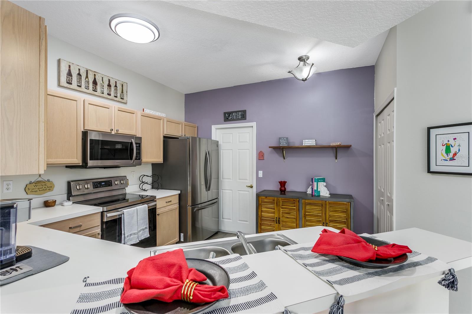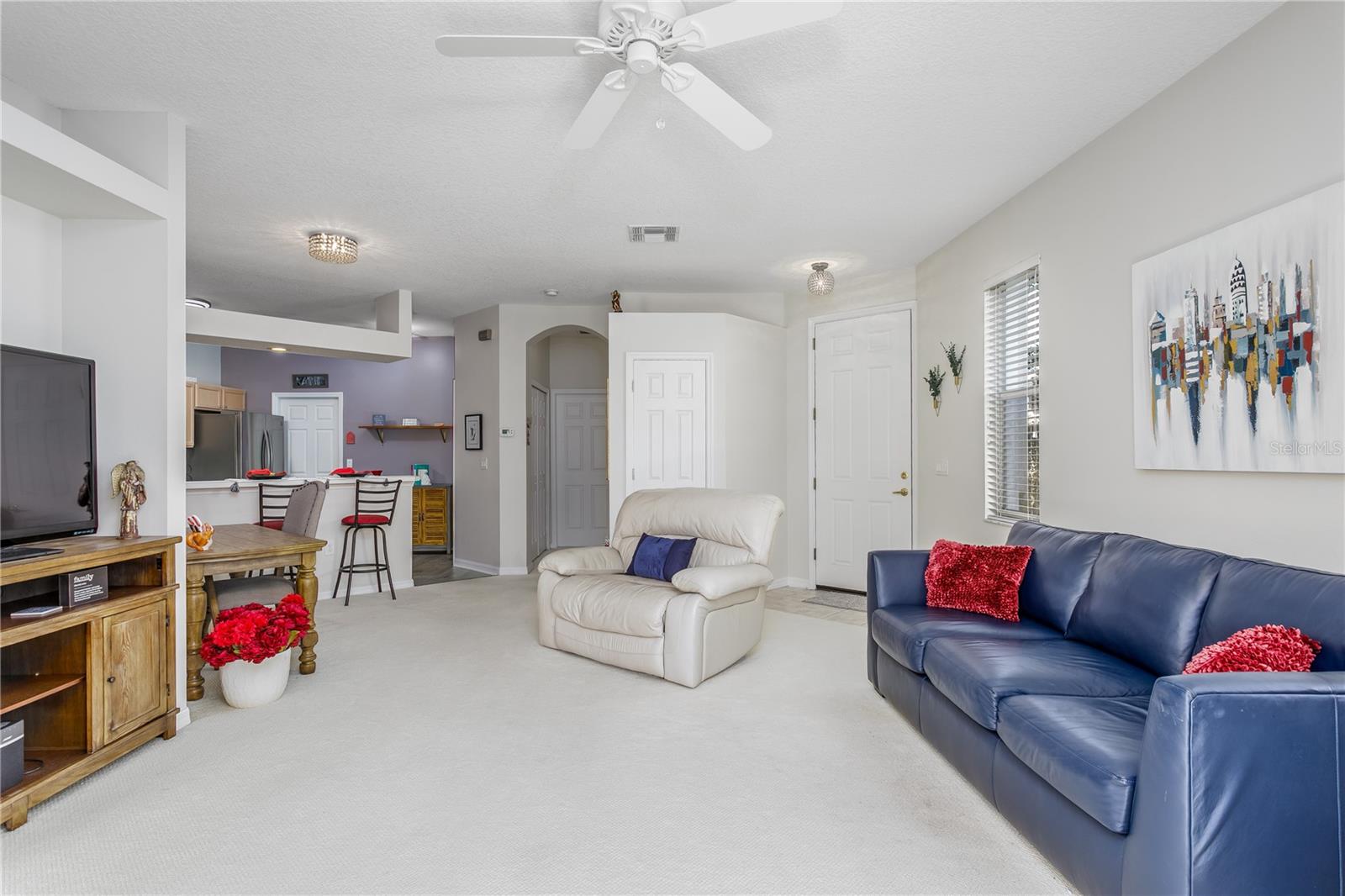 NEW PRICE – Embrace the Active 55+ lifestyle that’s easy, social, and full of joy in the sought-after gated community of The Groves Golf and Country Club! Discover this perfect 2 bedroom, 2 bathroom with an OVERSIZE 1 car garage END-UNIT villa designed for easy living! Enjoy the covered screened-in lanai for your outdoor Florida living. Spacious kitchen with beautiful stainless steel appliances, opens up to dining room and Livingroom. This open and airy move-in-ready home boasts plenty of closet space, featuring high-end carpet and brand-new luxury vinyl plank (LVP) flooring in the kitchen and bathrooms. The large master bedroom offers a charming bay window, an en-suite bathroom with shower, and a generous walk-in closet. The split-bedroom layout ensures privacy, with the guest bedroom situated at the front of the home, complemented by a full guest bath complete with a bathtub. The garage provides ample space for one car plus a golf cart, while the conveniently located laundry area, including a washer and dryer. Enjoy the low-maintenance lifestyle with quarterly HOA fees covering LAWN WORK, ROOF REPLACEMENT, EXTERIOR PAINT, CABLE, and INTERNET. ROOF replaced 2023. Welcome to this exceptional GATED Golf community, 18-hole golf course and driving range, offering an array of amenities and activities to suit every interest. This vibrant neighborhood features a clubhouse with a restaurant, ballroom, fitness center, library, and a pro shop, creating a social hub for residents. Outdoor enthusiasts will love the resort-style pool and spa, as well as options for tennis, pickleball, shuffleboard, bocce, and even a dog park for furry friends. The community also hosts various clubs and activities, ensuring there's always something exciting to do. Conveniently located near shopping, restaurants, hair and nail salon, bank, and more This villa is perfect for those seeking comfort, convenience, and an Active Lifestyle.