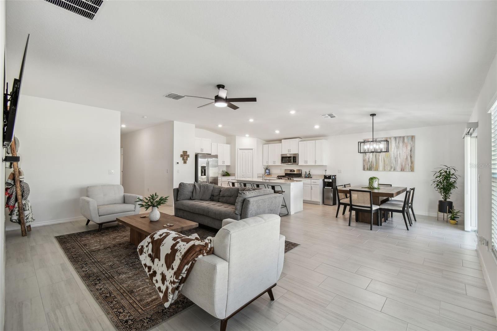 UNBELIEVABLE PRICE IMPROVEMENT AND MOVE IN READY!!!!! DON'T MISS THIS. Welcome to this stunning, one-year-old home in the highly sought-after Connerton community—move-in ready and waiting for you! Featuring 4 spacious bedrooms, 2 bathrooms, and a 2-car garage, this home is thoughtfully designed for both comfort and convenience. The open-concept floor plan blends the kitchen, dining room, and living room, creating the perfect space for family gatherings and entertaining. As you step inside, you’re greeted by a wide foyer, with three bedrooms conveniently located to the left. Down the hall, you'll find the laundry room and garage access. At the heart of the home, the bright and airy living area opens up with sliding doors leading to a covered porch, perfect for outdoor relaxation. The private owner's suite, tucked away at the back of the home, offers a serene retreat, complete with a spacious bathroom and an oversized walk-in closet. No rear neighbors. Connerton offers a wealth of amenities, including parks, walking trails, pools, pickle ball courts, tennis courts, fitness center and clubhouse, all while being close to shopping, dining, and schools—ideal for families. If you’re looking for a modern, beautiful home in a lively, family-oriented neighborhood, this Hartford model may be exactly what you’ve been searching for. Schedule your showing today!