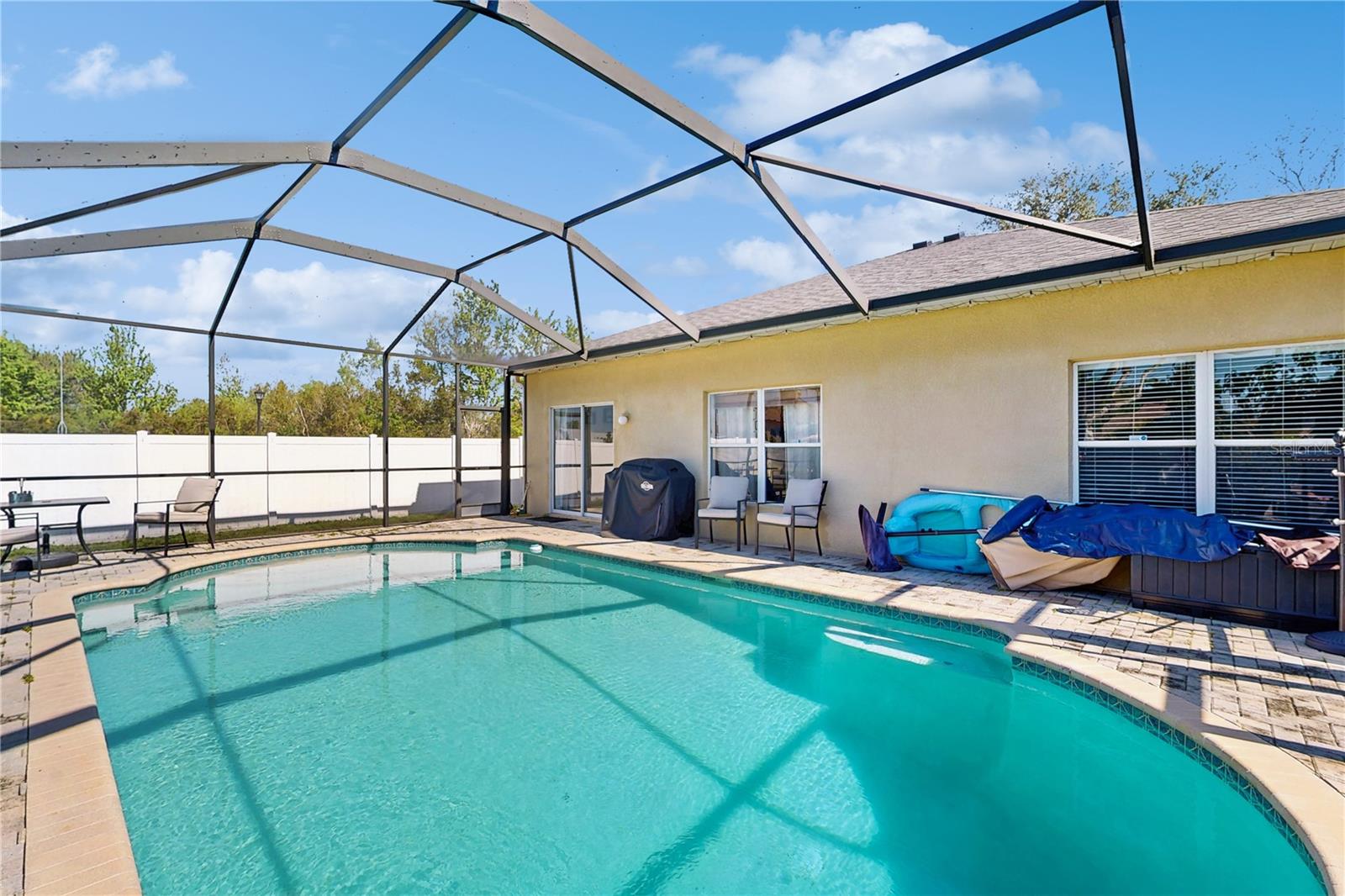 POOL HOME ON A FENCED-IN CORNER LOT, UNDER $400,000? Introducing 18822 Quarry Badger Rd., a beautifully updated 3-bedroom, 2-bathroom on a spacious corner lot in the desirable Asbel Creek community of Land O’ Lakes. Featuring 1,376 sq. ft. of heated space, this home offers a new roof (2023), A/C (2023), water heater (2025), and pool pump (2024) for worry-free living. Inside, enjoy an open floor plan, updated appliances, and a primary suite designed for comfort. Outside, enjoy your private pool oasis surrounded by brick pavers, ideal for lounging and soaking up the Florida sun. Located in Asbel Creek, a quiet, family-friendly community with no CDD fees and a low HOA, residents enjoy scenic walking trails, playgrounds, and open green spaces. Conveniently positioned near top-rated schools, shopping, dining, and major highways, this home offers both comfort and accessibility. Don’t miss your chance to own this move-in-ready gem—schedule your private showing today!!