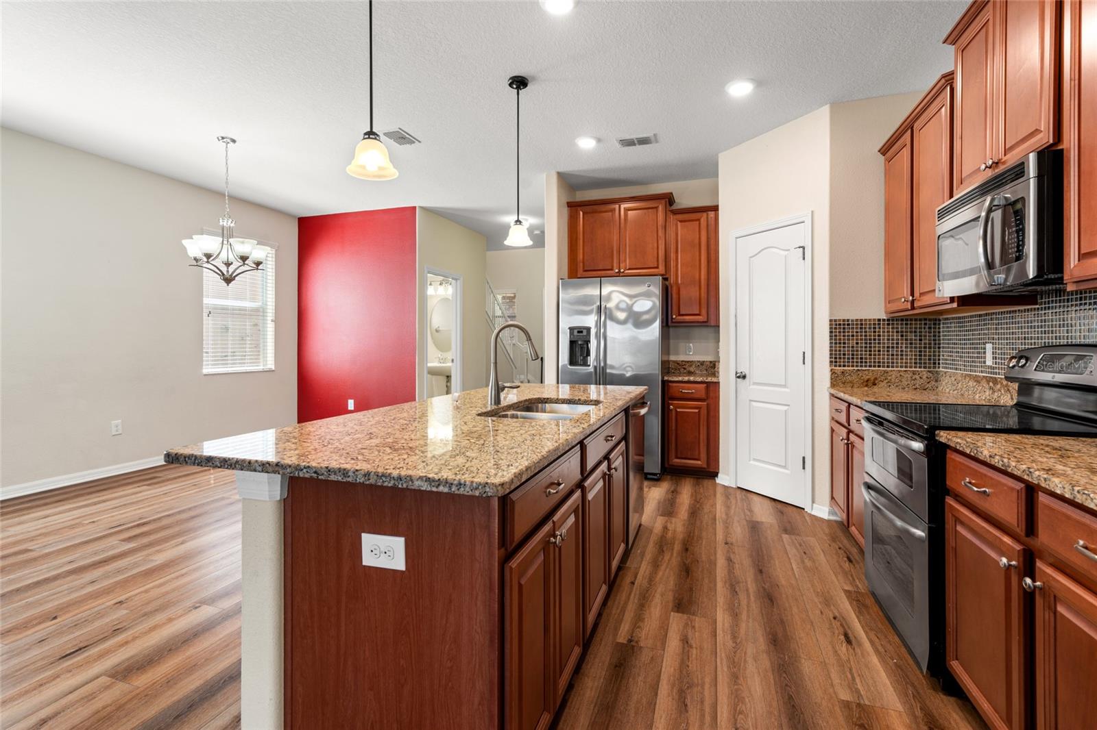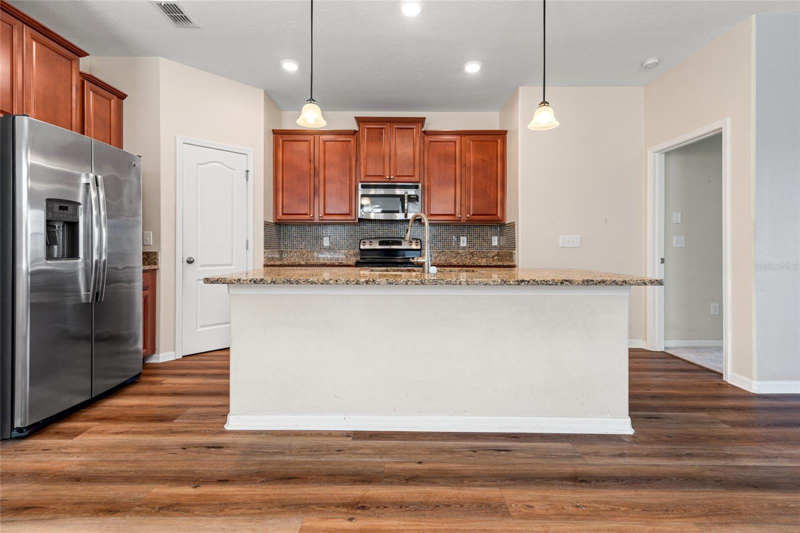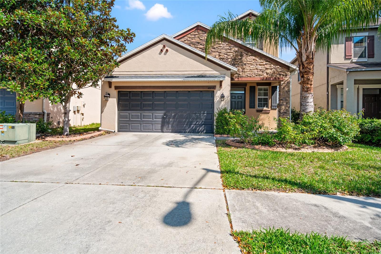 One or more photo(s) has been virtually staged. Spacious Family Home with Waterfront Views in Concord Station! Don't wait to build! This beautiful 2015 Lennar home offers nearly 2,500 sq ft of comfortable living. Featuring 5 bedrooms (primary on main), 3.5 baths, and a flexible bonus area, it's perfect for growing families. The kitchen is a dream with granite countertops, stainless steel appliances, and a large island. All carpets have been replaced in February 2025. Enjoy serene pond and conservation views from the screened porch. Upstairs, find spacious bedrooms with plenty of storage. Home has Whole House Water Softener and 8KW 4 Ton AC that was installed in 2021. Low HOA fees provide access to a resort-style pool, playgrounds, and a fitness center. Located in a top-rated school district and close to shopping and the Suncoast Expressway, this home offers incredible value in a desirable community