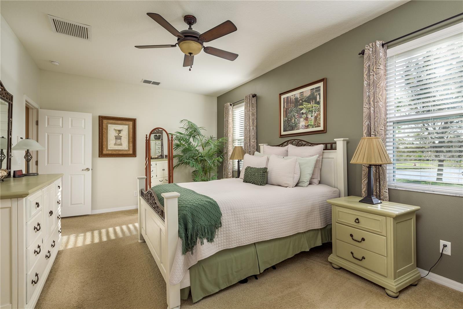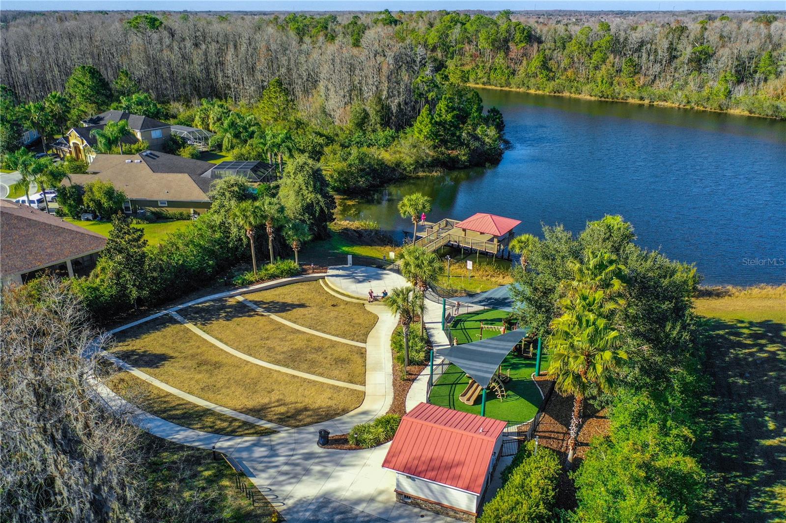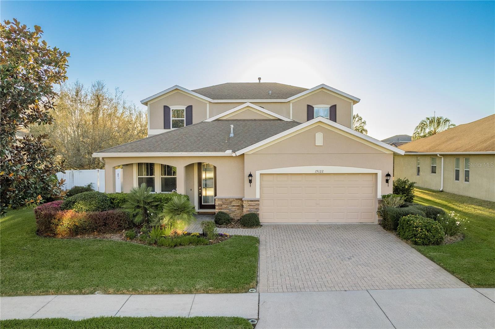 Better than new! More house for your money, bigger lot with mature landscaping, and upgrades already included in sales price. One of only two homes in Lakeshore Ranch with this spectacular floor plan (K Hovnanian Palma Cela). This home has had only one owner and shows like a model. The exterior boasts beautiful conservation and pond views and a 240 sq ft covered screened paver lanai. Professional landscaping gives you the privacy you desire. The front exterior has paver driveway and walkway, stacked stone and covered front porch. The interior has generous living spaces, many upgrades and closets galore! Downstairs master bedroom has an ensuite bath and custom closet system—open concept kitchen and family room; separate dining room; half bath; and laundry room. Kitchen has beautiful 42” Maple stagger height cabinets with upper and lower moldings, lower cabinet pull-outs, and undercabinet stemware rack, and high-end Bosch stainless steel appliances. Upstairs has three large bedrooms, two full baths and a fantastic bonus room. Bathrooms all have maple cabinets, granite countertops, undermount sinks and custom mirrors. This home has more closet space than you will see in any comparable house of its size. It is the perfect floor plan for everyone! Now, a little about the community. Lakeshore Ranch features a magnificent resort-style clubhouse, amenities, and planned activities for all ages. It's a perfect place to relax and have fun! 2 swimming pools plus a kiddy pool, a 24-hour fitness center, a basketball, tennis/pickleball, an amphitheater, a playground, a fishing dock, and a dog park. This community is close to shopping and easy access to major highways. Basic cable and internet are included in the HOA fees. Make this dream home yours today! Schedule your private tour now and embrace the luxury that awaits.
