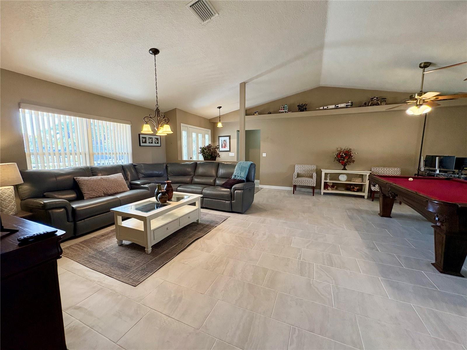 Lake Padgett Estates amenities include 3 ski lakes and riding stables for residents only. This home features an open-concept and is perfectly positioned on approximately 1/2 acre lot at the end of a quiet cul-de-sac. Step inside to be greeted by expansive living areas and a seamless flow to the enclosed, covered lanai through sliding glass doors—perfect for indoor-outdoor living. NEW A/C. The well-appointed kitchen features ample cabinetry, a breakfast bar, sleek granite countertops, and travertine flooring. The master suite offers a private retreat has double walk-in closets with an ensuite bathroom, complete with an oversized walk-in shower. Additional highlights include a dedicated laundry room with a utility sink and an oversized garage for extra storage. Whole house generator on site and water softener. Conveniently located near major amenities, including the upcoming Moffitt Medical City, set for completion in 2026.