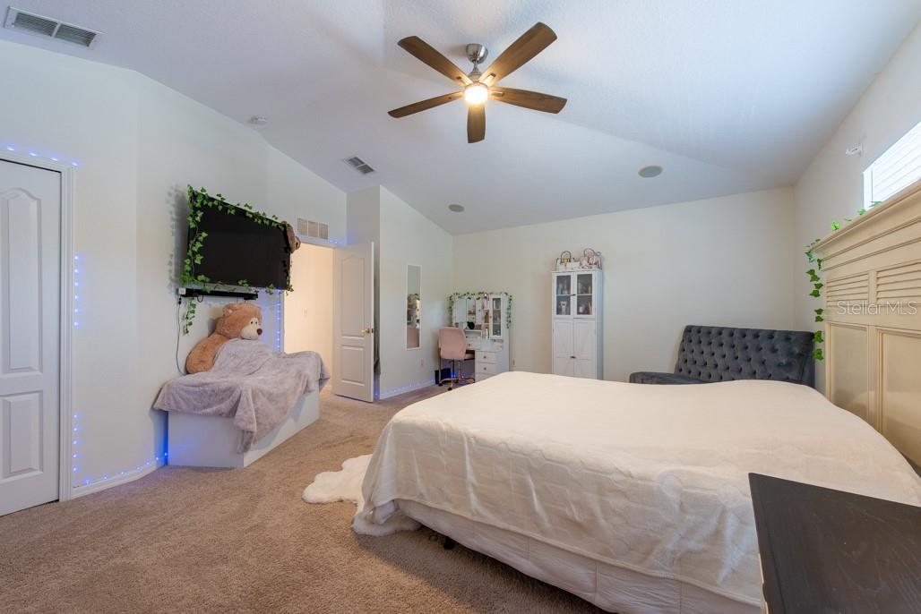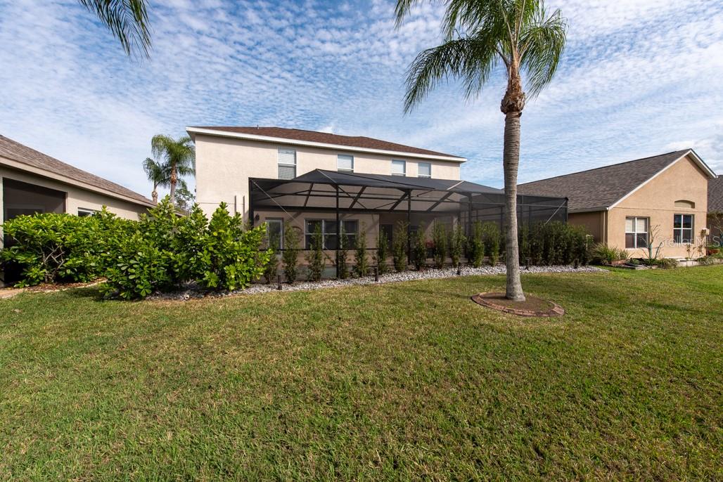 Luxury, comfort, and functionality blend seamlessly in this stunning 5-bedroom, 3-bathroom home in the highly sought-after Plantation Palms community in Land O’ Lakes. With 2,646 sq. ft. of well-appointed living space, this residence is designed for both relaxation and entertainment. Enjoy breathtaking views of the golf course and tranquil pond from your expansive, screen-enclosed patio. This outdoor oasis boasts a covered entertaining area, an inground saltwater pool, and a spa. Recent upgrades include a new pool pump (2024), a salt cell system (2023), a re-screened cage (2023), and a freshly painted deck and cage (2023). Whether you’re unwinding in the spa or hosting weekend gatherings, this backyard is built to impress. Inside, the chef’s kitchen showcases engineered hardwood floors, beautiful butcher block countertops, elegant cabinetry, and stainless-steel appliances, all updated in 2023. The open layout flows into both a living room and a family room, each featuring luxury vinyl plank flooring for a warm and inviting ambiance. Upstairs, the expansive primary suite offers a private retreat with a spacious sitting area, his-and-hers walk-in closets, and an ensuite bathroom with dual vanities, a soaking tub, and a separate shower. The versatile fifth bedroom can serve as a game room, theater, or office. A conveniently located downstairs bedroom, near the spacious laundry room, is perfect as an in-law suite or private guest quarters. Additional highlights include a new roof (2023) with a transferable warranty and a three-car garage equipped with a brand-new opener (2024), providing ample space for vehicles, storage, or a workshop. Plantation Palms enhances the luxury lifestyle with a golf course, a restaurant, a miniature golf course, and scenic sidewalks for evening strolls. With a low HOA and a prime location just six miles from I-75, Tampa Premium Outlets, and an array of dining, shopping, and entertainment options, convenience is at your doorstep. Whether you're an avid golfer, a growing family, or someone seeking a serene yet accessible retreat, this home offers it all. Schedule your showing today and experience the unparalleled comfort and style of this exceptional property.