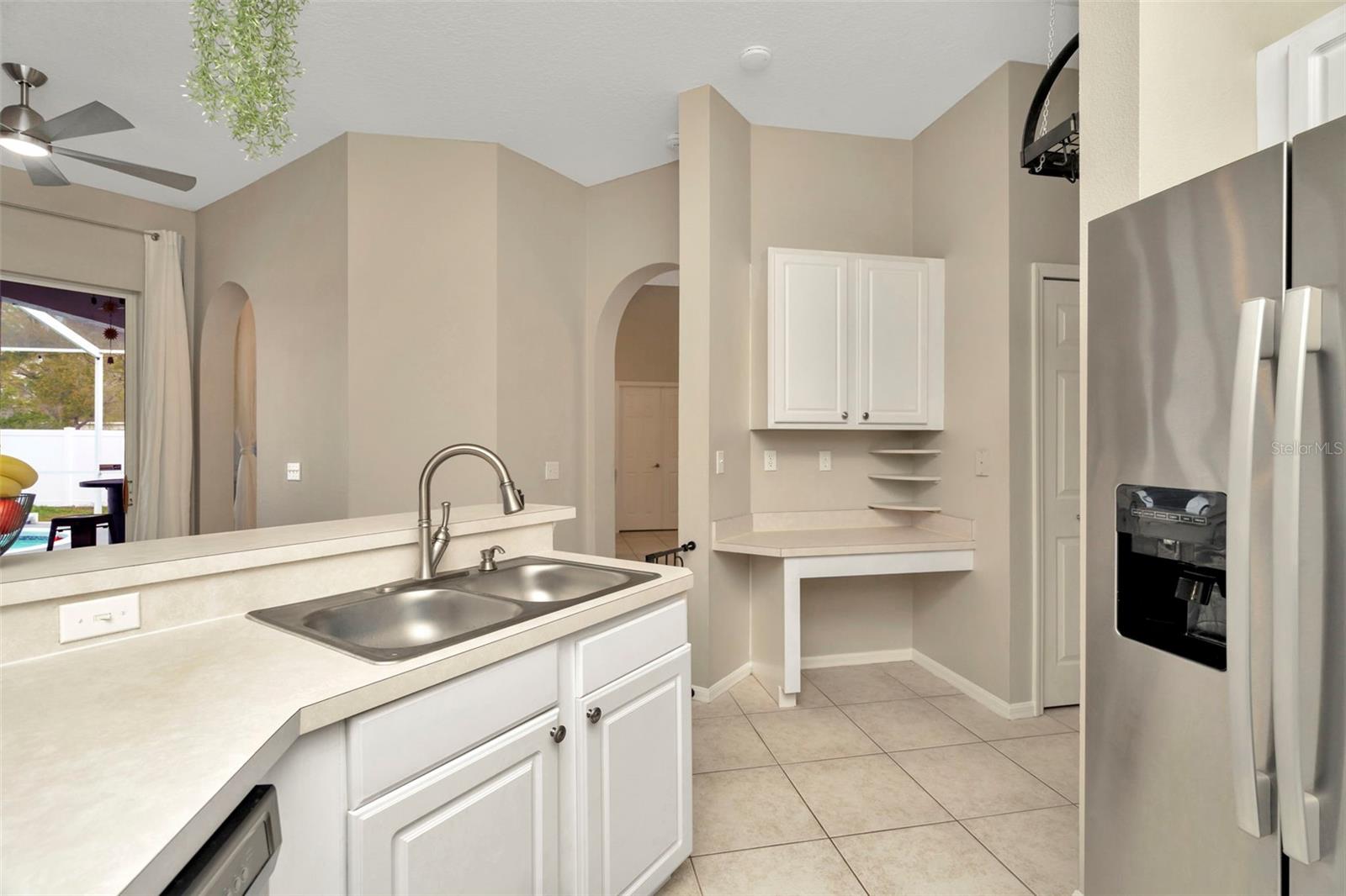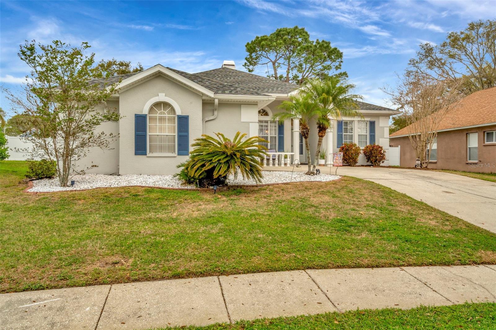 4.75% VA ASSUMABLE! Welcome to this stunning 4-bedroom, 3 FULL baths POOL home on a cul-de-sac road, offering the perfect blend of comfort and functionality. Such a great floor plan! Nestled on a spacious, fenced lot with a large yard, this home features a screened lanai overlooking the sparkling pool—perfect for outdoor relaxation and entertaining. Multiple sliding glass doors for ultimate natural sunlight. There is also an additional paved grilling area. The kitchen boasts the stainless steel appliances and white cabinets you desire. A built in wine rack and decorative pot holder included. The included washer, dryer, and garage freezer and water softener add extra convenience. Ceiling fans in all the bedrooms. You must see the beautiful Primary bedroom with en-suite in person! The tub is a dream! Dual vanities PLUS a separate makeup or “getting ready” vanity. Another standout feature is the private guest suite off the garage, complete with its own bathroom, making it ideal for in-laws, college students, or guests. So many extras…hide a way trash area, pocket doors, linen closets…etc! Top notch shopping and recreational areas close by! With a 2022 roof, a handy storage shed, and a low HOA, this home checks all the boxes for Florida living at its best!