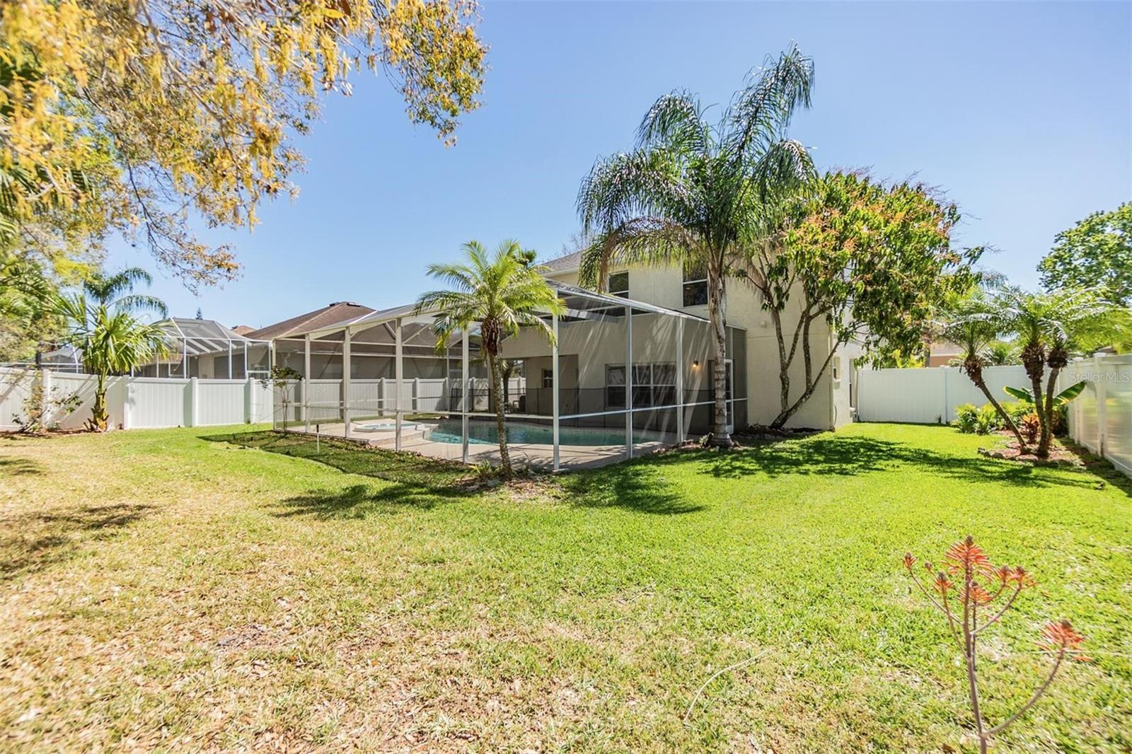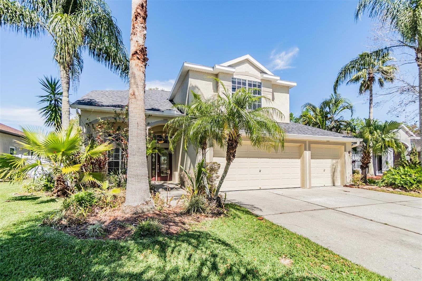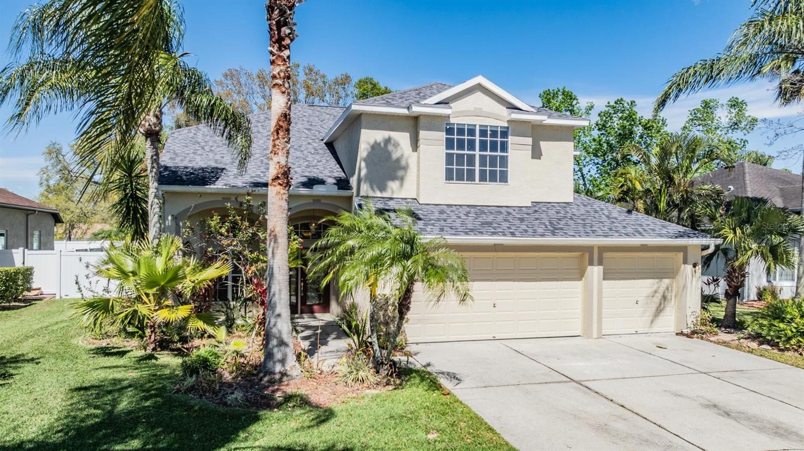 This beautiful home is ready for a new owner. Upon entering the home, you will be greeted by a formal living room and dining room. The family room sits off of the kitchen and features a set of sliding doors that lead to the outdoor pool oasis. The kitchen has solid countertops and wood cabinetry, stainless appliances, and a large sink that overlooks the fenced-in backyard. There is also a full bathroom on the first floor as well as the pool bath. Upstairs is the primary bedroom, 3 additional bedrooms, and a full bath. Primary bedroom has two closets and a sitting area that can be used for a nursery, office, or workout area. The home has been completely repainted and roof was replaced 2 years ago. As you make your way to the backyard through the sliding door, you will enter into a covered and screened patio and pool area. The spa is heated and overflows into the pool. This home is conveniently located near the Land O Lakes recreation center, restaurants, and shopping. Come check out this home today!