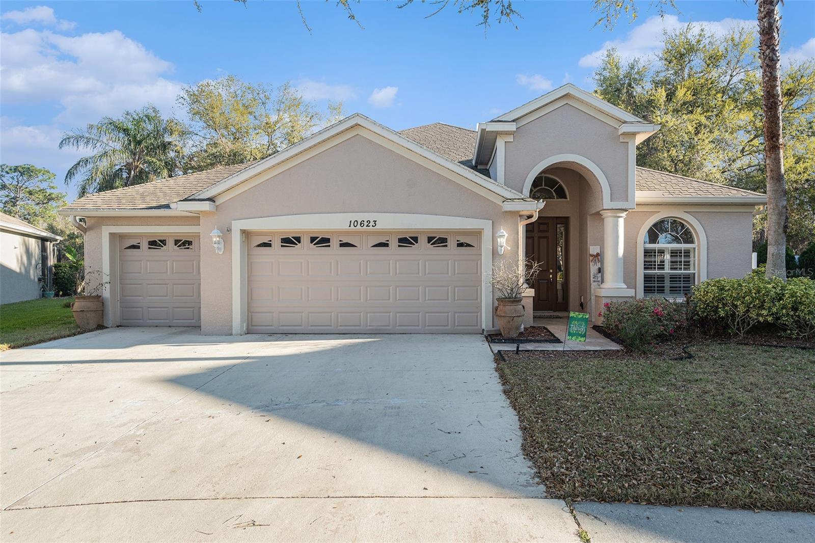 SELLER MOTIVATED.!!!...PRICED TO SELL....... Spectacular Move-In Ready Home. This stunning, move-in ready home offers a spacious split floor plan featuring 4 bedrooms, 3 bathrooms, and a 3-car garage. A/C 2019, Water Heater 2018, Roof 2007. Enjoy the expansive screened-in lanai and fully fenced backyard, perfect for outdoor relaxation. Best of all, there’s no carpet throughout the home! - Interior Highlights: - Gourmet Kitchen: Equipped with granite countertops, staggered cabinets with pull-out drawers, under-cabinet lighting, a wine rack, stainless steel appliances, built-in oven, cooktop, breakfast bar, and an island. The adjacent pantry and dinette area make this oversized kitchen a dream for any cook. - Living Room: Boasts vaulted ceilings and three large pocket sliders that open to the spacious lanai, ideal for entertaining. - Master Suite: Exceptionally roomy with space for a sitting area, direct access to the lanai, and tranquil pond views. The suite also features a huge walk-in closet with a custom organizer and an ensuite bathroom with dual sinks, garden tub, and a separate shower. - Private Guest Suite: The fourth bedroom includes its own bathroom with backyard access, perfect for a mother-in-law suite or guest accommodations. - Additional Features: Elegant rounded walls and art niches with lighting add character. Ceiling fans in every room for added comfort. French shutters in the formal dining room/office/bonus room. Equipped with an alarm system, irrigation system, and water softener. - Outdoor & Community Amenities: The home backs onto a premium conservation lot with lush tropical landscaping, offering a serene view of the pond and wildlife. The Suncoast Lakes community offers excellent amenities, including basketball and tennis courts, a playground, clubhouse, park, swimming pool, and a sports field. Residents also enjoy a private bike trail entrance. - Prime Location: Conveniently located with direct access to the Suncoast Expressway (FL-589) and I-75, making it easy to reach Tampa Bay, the airport, shopping, and downtown Tampa. Plus, Publix is just minutes away. With no CDD fees and a low quarterly HOA fee, this home is truly a rare find. Don't miss the chance to make this beautiful property your own!