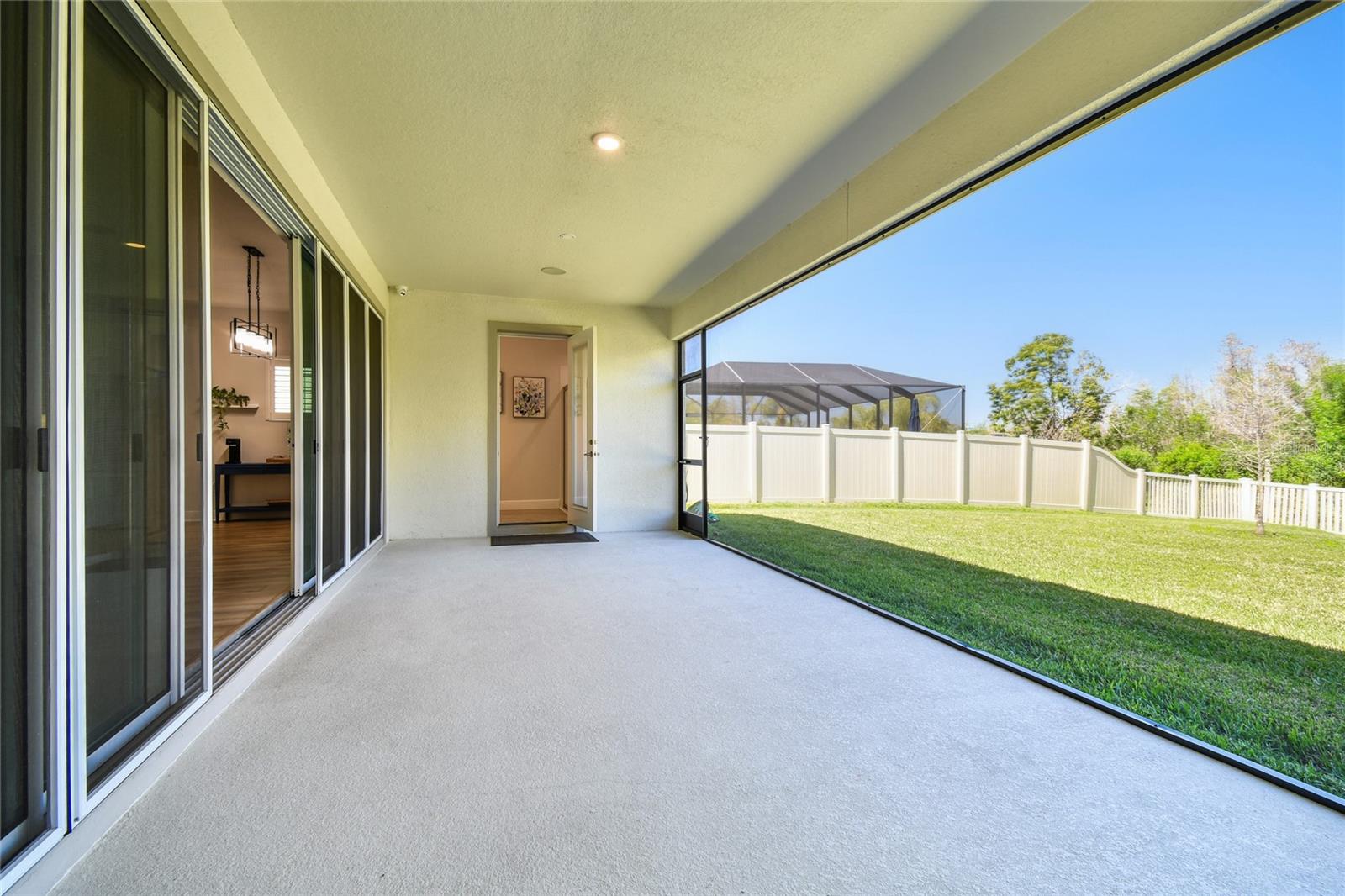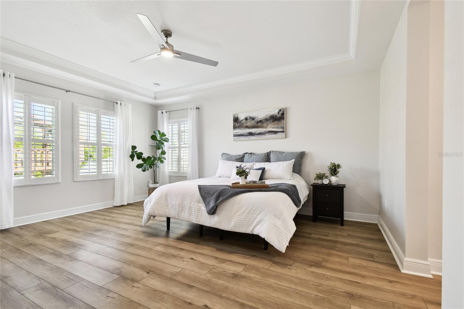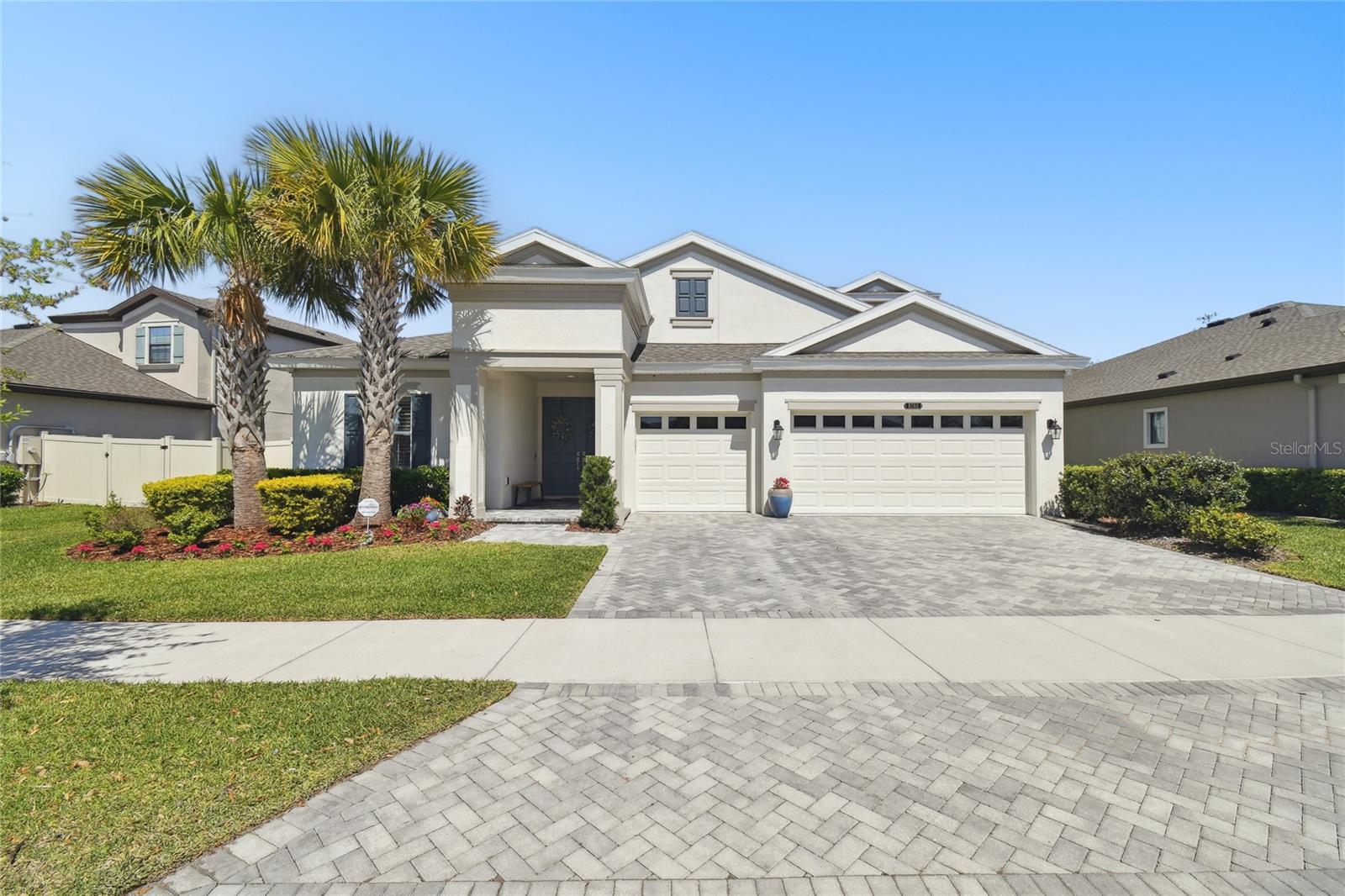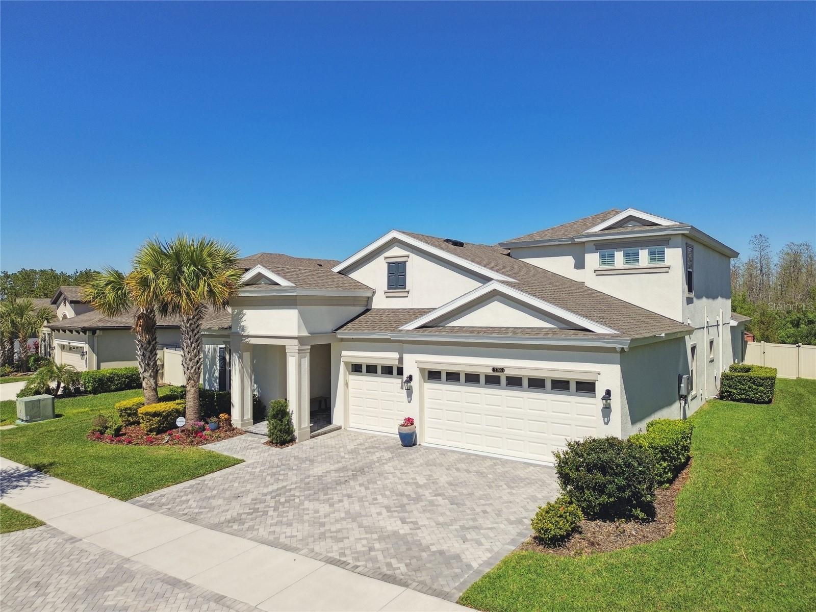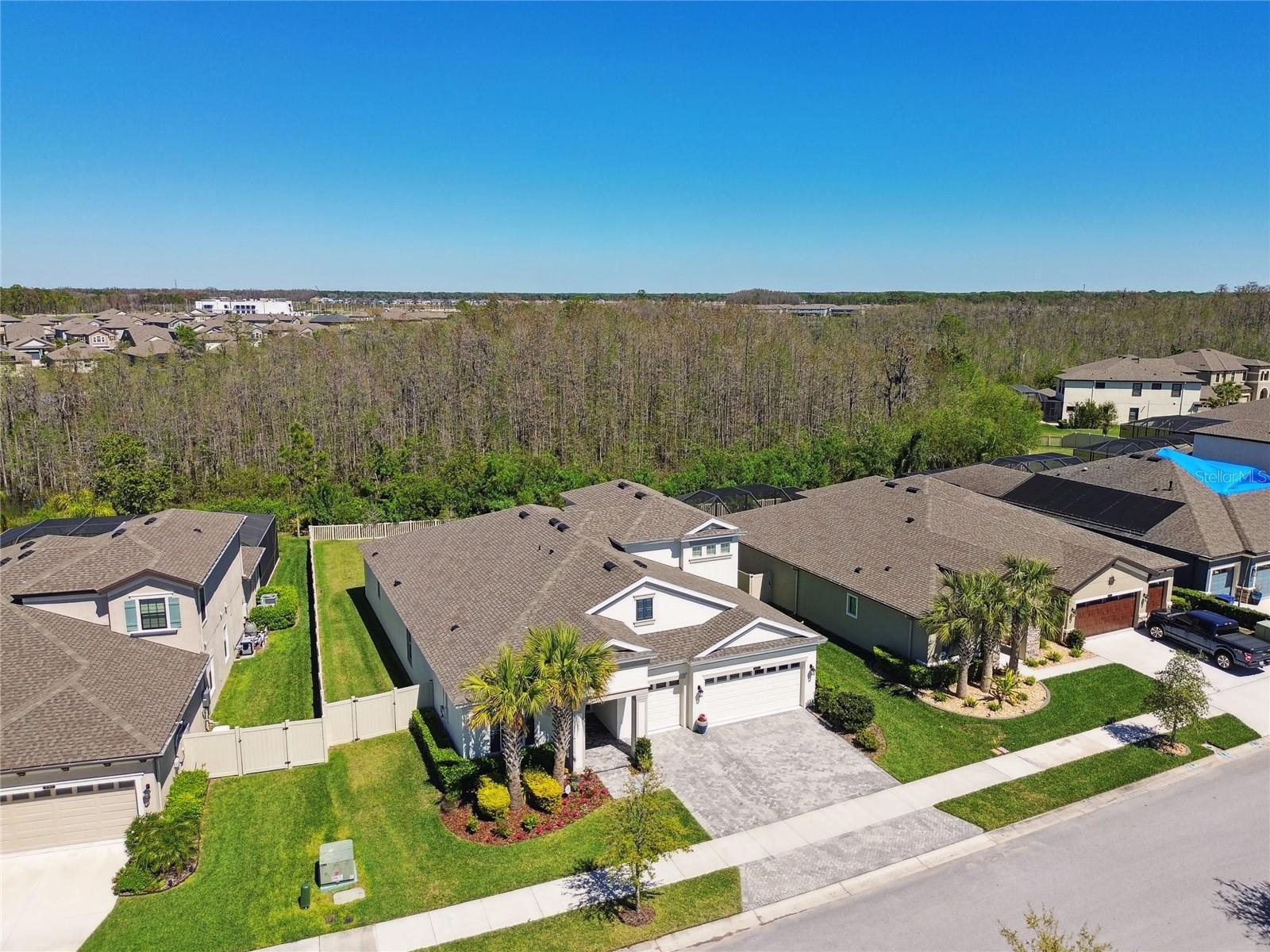 Luxury Living on Oversized Conservation Lot – 5BR/5BA Bayshore II by Homes by West Bay! Experience resort-style living in this stunning 5-bedroom, 5-bathroom Bayshore II, nestled on a rare, oversized .26-acre fully fenced conservation lot in the award-winning Connerton community. This move-in-ready home features 3,283 sq. ft. of meticulously maintained space, an open-concept design, and luxury upgrades throughout. Enjoy easy living with a split-bedroom layout that offers privacy for the owner’s retreat and secondary bedrooms. Step through the 8ft double doors into the wide double foyer into a grand room that seamlessly blends with the deluxe kitchen, casual dining area, and panoramic screened lanai—perfect for entertaining or simply relaxing while enjoying serene nature views. The chef’s kitchen is a showstopper, boasting a massive quartz island with double-sided cabinetry, GE Profile stainless steel appliances, 42” cabinets, subway tile backsplash, farmhouse sink, and a custom walk-in pantry with wood shelving. Tray ceilings, crown molding, luxury vinyl plank flooring, and plantation shutters throughout the main living areas and bedrooms enhance the home’s refined ambiance. The owner’s retreat is tucked away for ultimate privacy and features tray ceilings, crown molding, dual walk-in closets, and a luxurious en-suite bath with quartz countertops, dual vanities, and a spacious walk-in shower. Two secondary bedrooms and a full bath are located off the foyer with upgraded finishes, while a fourth bedroom is privately situated near the laundry room and another full bath. Upstairs, you'll find a versatile bonus room, fifth bedroom, and full bath, perfect for a media room, guest suite, or teen retreat. Step outside to the expansive covered lanai with a panoramic screen enclosure, surround sound system, and full outdoor pool bath—an entertainer’s dream space that’s pre-plumbed for a pool and ready for your custom outdoor oasis. Additional standout features include reclaimed water irrigation, upgraded landscaping, custom light fixtures, a paved driveway, three-car garage, and exceptional curb appeal. Located in the highly desirable Connerton community, this home offers access to world-class amenities including a resort-style pool, splash park, fitness center, clubhouse, sports courts, scenic trails, and year-round resident events. The highly anticipated Pinecrest Academy opens Fall 2025, and a second clubhouse with pool, gym, and six pickleball courts is currently under construction. This is more than just a home—it’s a lifestyle. Don’t miss your opportunity to own one of the most impressive conservation homesites in Connerton.