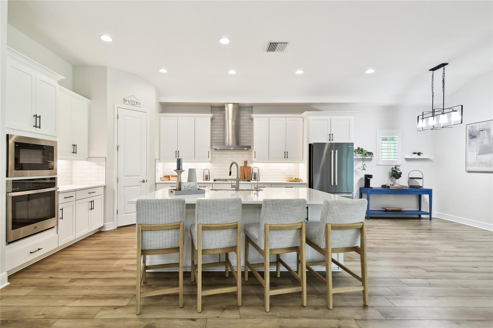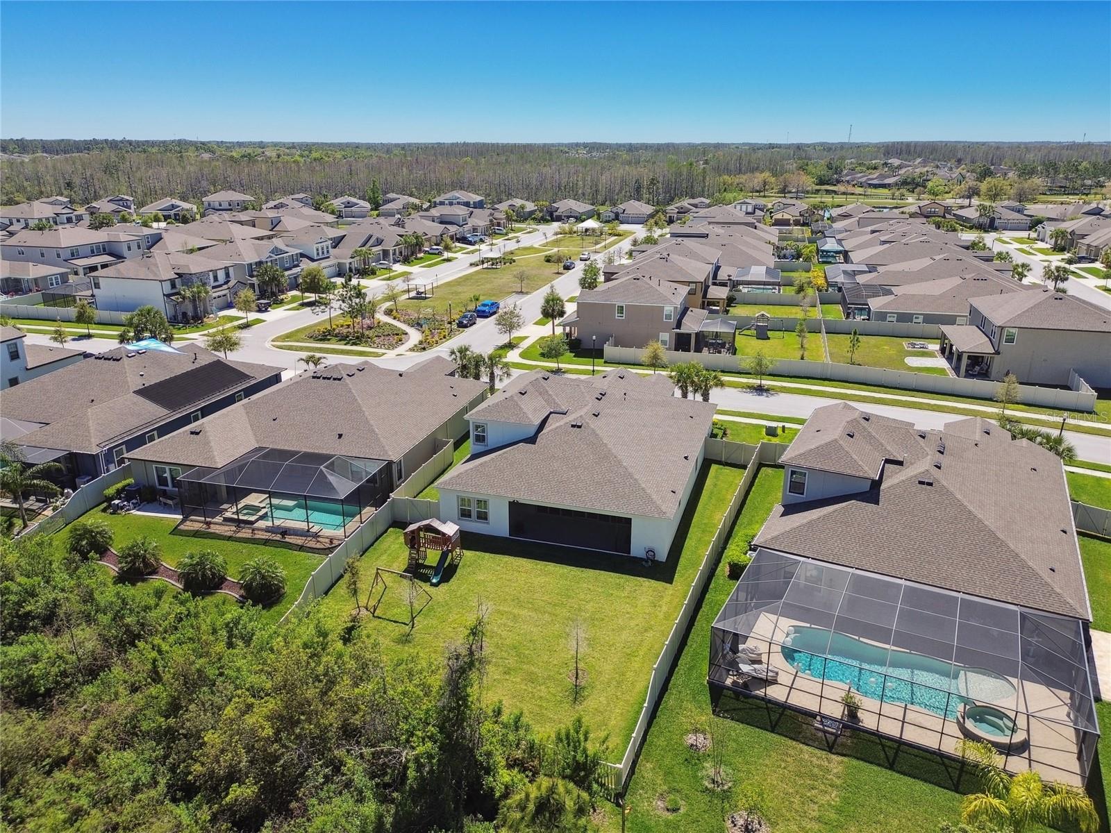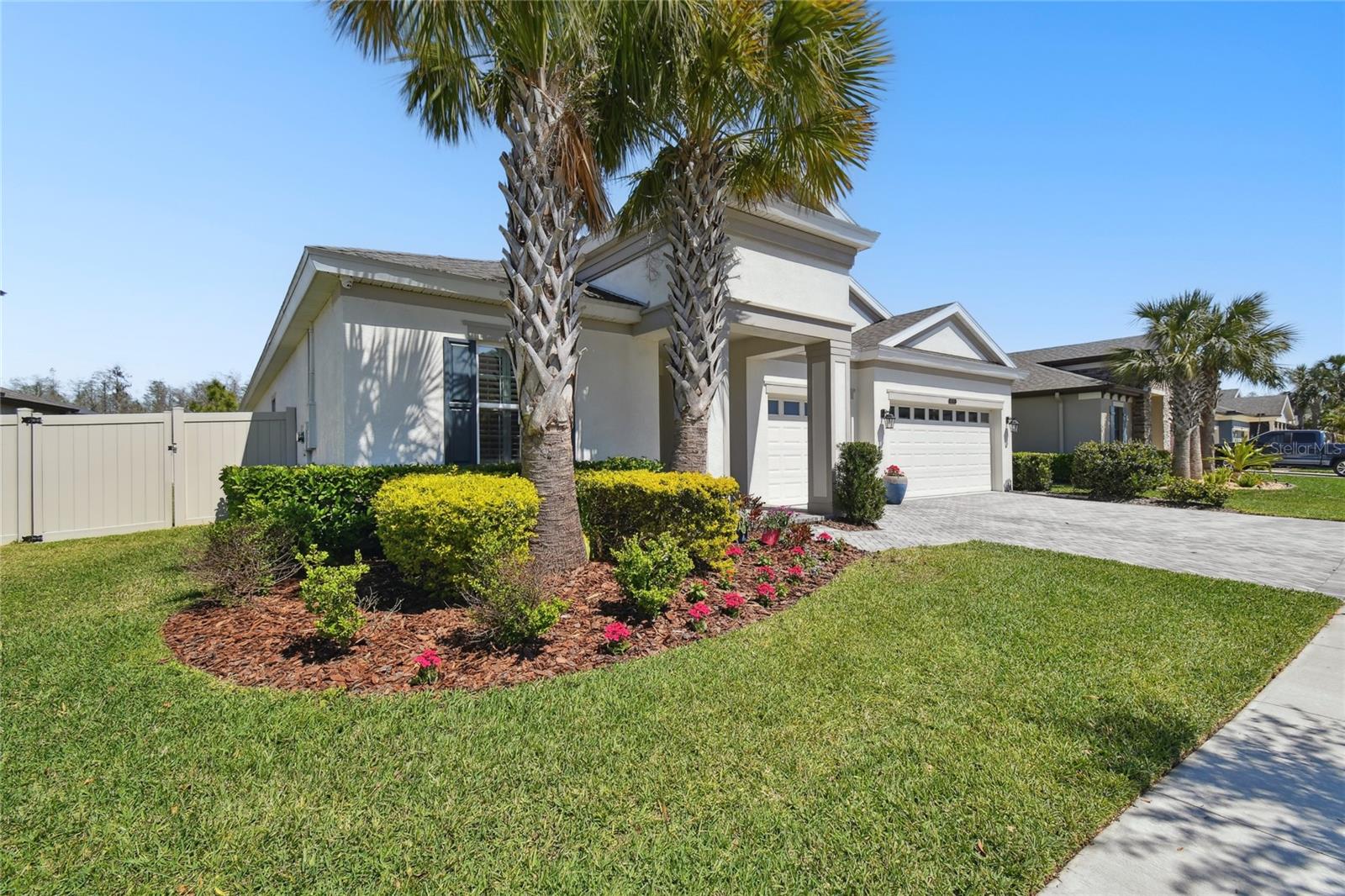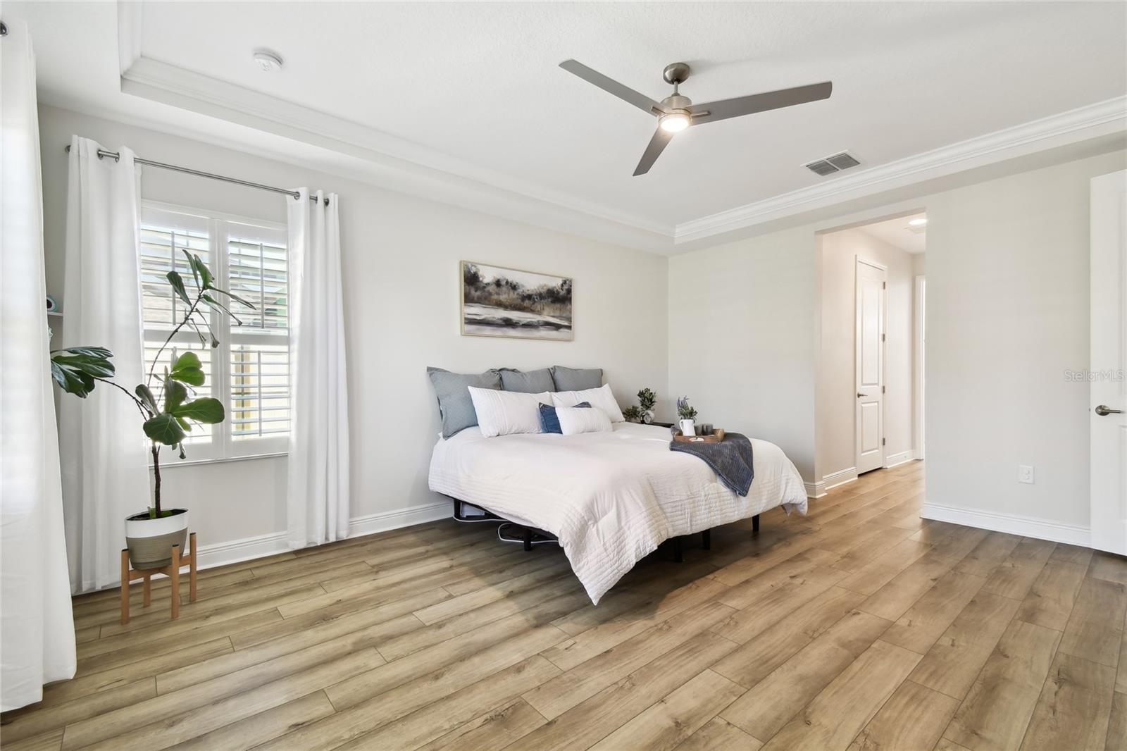 Luxury Living on Oversized Conservation Lot – 5BR/5BA Bayshore II by Homes by West Bay! Experience resort-style living in this stunning 5-bedroom, 5-bathroom Bayshore II, nestled on a rare, oversized .26-acre fully fenced conservation lot in the award-winning Connerton community. This move-in-ready home features 3,283 sq. ft. of meticulously maintained space, an open-concept design, and luxury upgrades throughout. Enjoy easy living with a split-bedroom layout that offers privacy for the owner’s retreat and secondary bedrooms. Step through the 8ft double doors into the wide double foyer into a grand room that seamlessly blends with the deluxe kitchen, casual dining area, and panoramic screened lanai—perfect for entertaining or simply relaxing while enjoying serene nature views. The chef’s kitchen is a showstopper, boasting a massive quartz island with double-sided cabinetry, GE Profile stainless steel appliances, 42” cabinets, subway tile backsplash, farmhouse sink, and a custom walk-in pantry with wood shelving. Tray ceilings, crown molding, luxury vinyl plank flooring, and plantation shutters throughout the main living areas and bedrooms enhance the home’s refined ambiance. The owner’s retreat is tucked away for ultimate privacy and features tray ceilings, crown molding, dual walk-in closets, and a luxurious en-suite bath with quartz countertops, dual vanities, and a spacious walk-in shower. Two secondary bedrooms and a full bath are located off the foyer with upgraded finishes, while a fourth bedroom is privately situated near the laundry room and another full bath. Upstairs, you'll find a versatile bonus room, fifth bedroom, and full bath, perfect for a media room, guest suite, or teen retreat. Step outside to the expansive covered lanai with a panoramic screen enclosure, surround sound system, and full outdoor pool bath—an entertainer’s dream space that’s pre-plumbed for a pool and ready for your custom outdoor oasis. Additional standout features include reclaimed water irrigation, upgraded landscaping, custom light fixtures, a paved driveway, three-car garage, and exceptional curb appeal. Located in the highly desirable Connerton community, this home offers access to world-class amenities including a resort-style pool, splash park, fitness center, clubhouse, sports courts, scenic trails, and year-round resident events. The highly anticipated Pinecrest Academy opens Fall 2025, and a second clubhouse with pool, gym, and six pickleball courts is currently under construction. This is more than just a home—it’s a lifestyle. Don’t miss your opportunity to own one of the most impressive conservation homesites in Connerton.