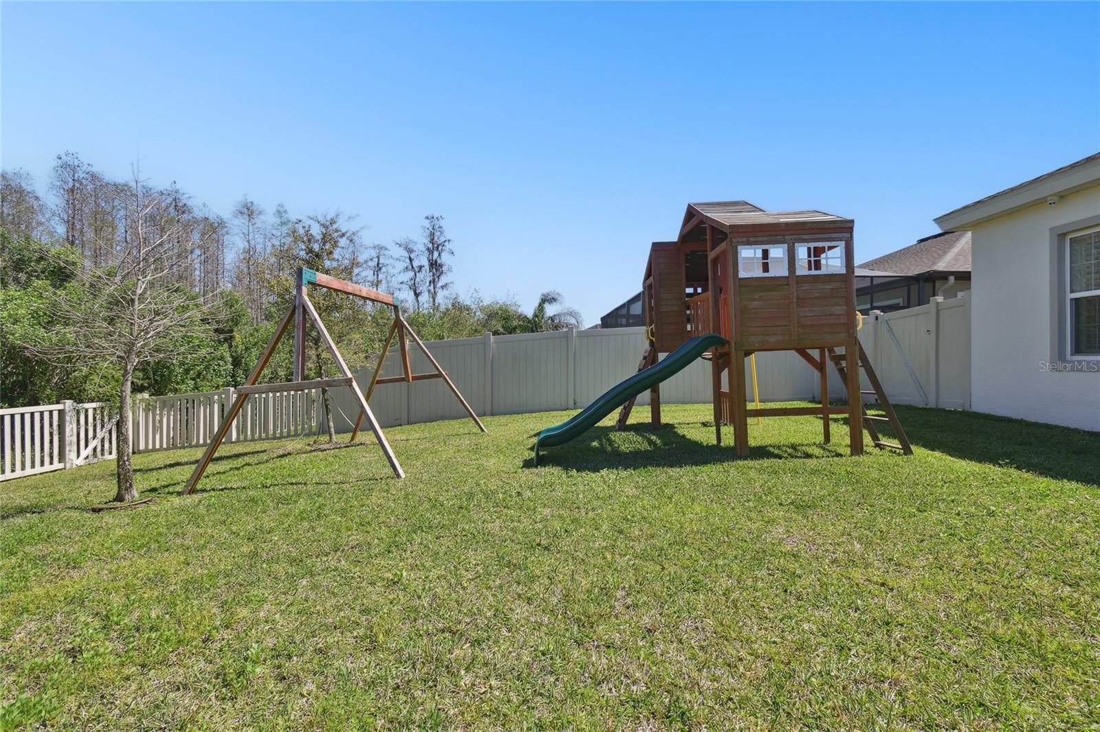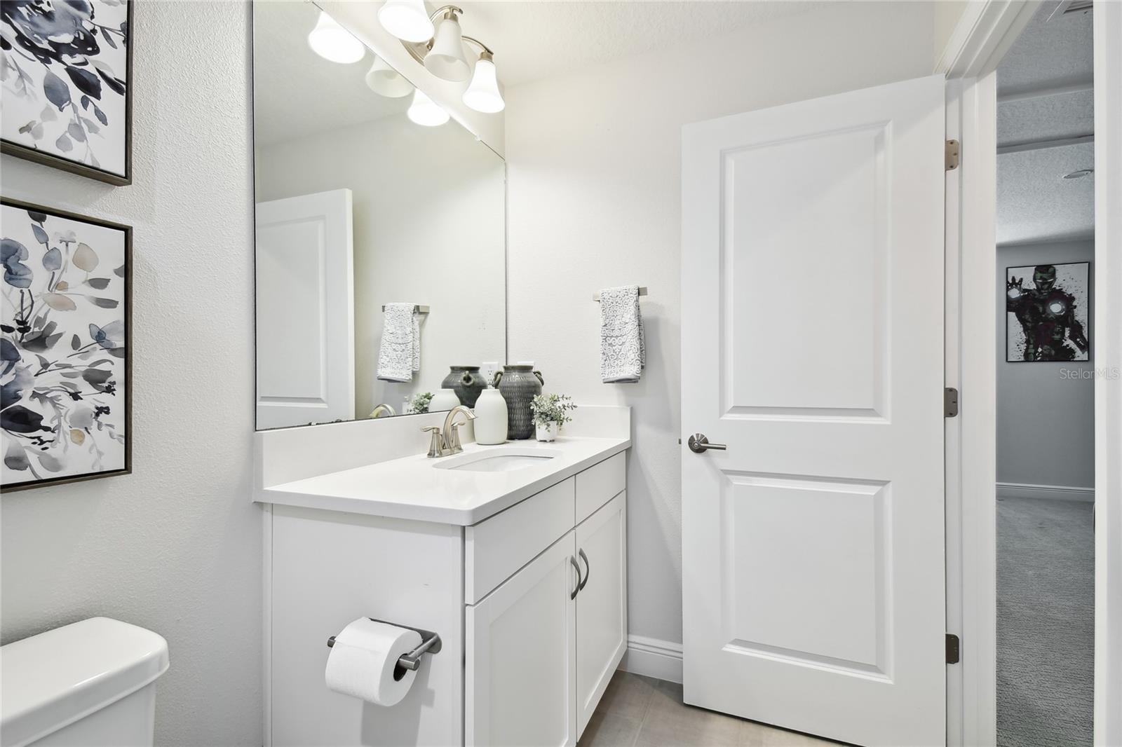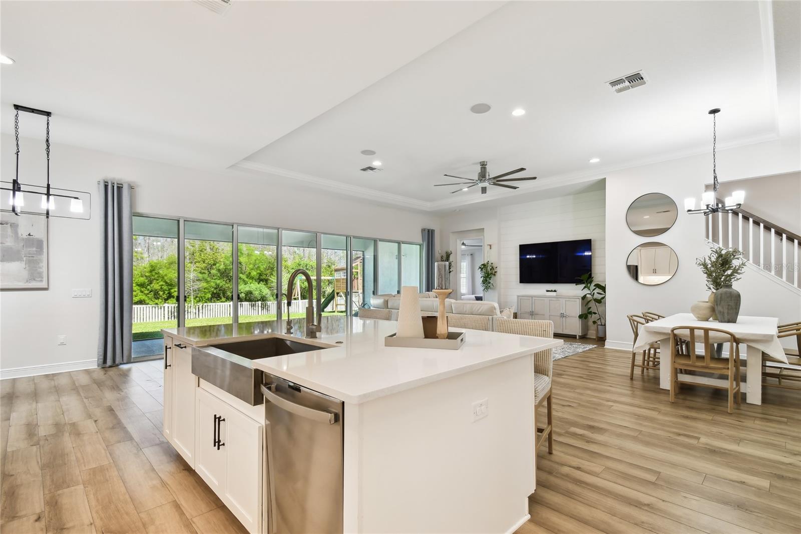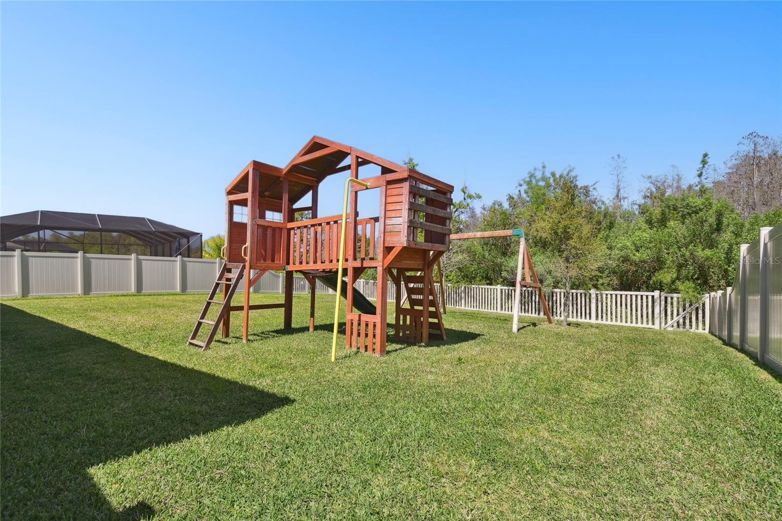 Luxury Living on Oversized Conservation Lot – 5BR/5BA Bayshore II by Homes by West Bay! Experience resort-style living in this stunning 5-bedroom, 5-bathroom Bayshore II, nestled on a rare, oversized .26-acre fully fenced conservation lot in the award-winning Connerton community. This move-in-ready home features 3,283 sq. ft. of meticulously maintained space, an open-concept design, and luxury upgrades throughout. Enjoy easy living with a split-bedroom layout that offers privacy for the owner’s retreat and secondary bedrooms. Step through the 8ft double doors into the wide double foyer into a grand room that seamlessly blends with the deluxe kitchen, casual dining area, and panoramic screened lanai—perfect for entertaining or simply relaxing while enjoying serene nature views. The chef’s kitchen is a showstopper, boasting a massive quartz island with double-sided cabinetry, GE Profile stainless steel appliances, 42” cabinets, subway tile backsplash, farmhouse sink, and a custom walk-in pantry with wood shelving. Tray ceilings, crown molding, luxury vinyl plank flooring, and plantation shutters throughout the main living areas and bedrooms enhance the home’s refined ambiance. The owner’s retreat is tucked away for ultimate privacy and features tray ceilings, crown molding, dual walk-in closets, and a luxurious en-suite bath with quartz countertops, dual vanities, and a spacious walk-in shower. Two secondary bedrooms and a full bath are located off the foyer with upgraded finishes, while a fourth bedroom is privately situated near the laundry room and another full bath. Upstairs, you'll find a versatile bonus room, fifth bedroom, and full bath, perfect for a media room, guest suite, or teen retreat. Step outside to the expansive covered lanai with a panoramic screen enclosure, surround sound system, and full outdoor pool bath—an entertainer’s dream space that’s pre-plumbed for a pool and ready for your custom outdoor oasis. Additional standout features include reclaimed water irrigation, upgraded landscaping, custom light fixtures, a paved driveway, three-car garage, and exceptional curb appeal. Located in the highly desirable Connerton community, this home offers access to world-class amenities including a resort-style pool, splash park, fitness center, clubhouse, sports courts, scenic trails, and year-round resident events. The highly anticipated Pinecrest Academy opens Fall 2025, and a second clubhouse with pool, gym, and six pickleball courts is currently under construction. This is more than just a home—it’s a lifestyle. Don’t miss your opportunity to own one of the most impressive conservation homesites in Connerton.