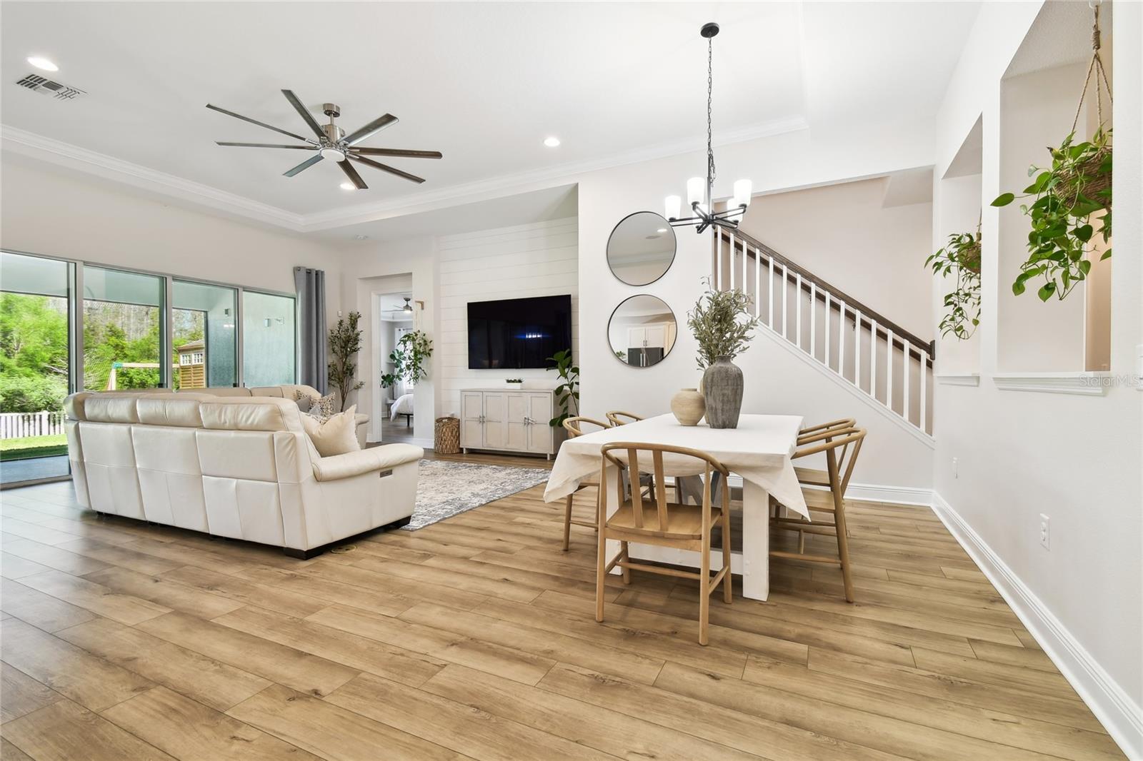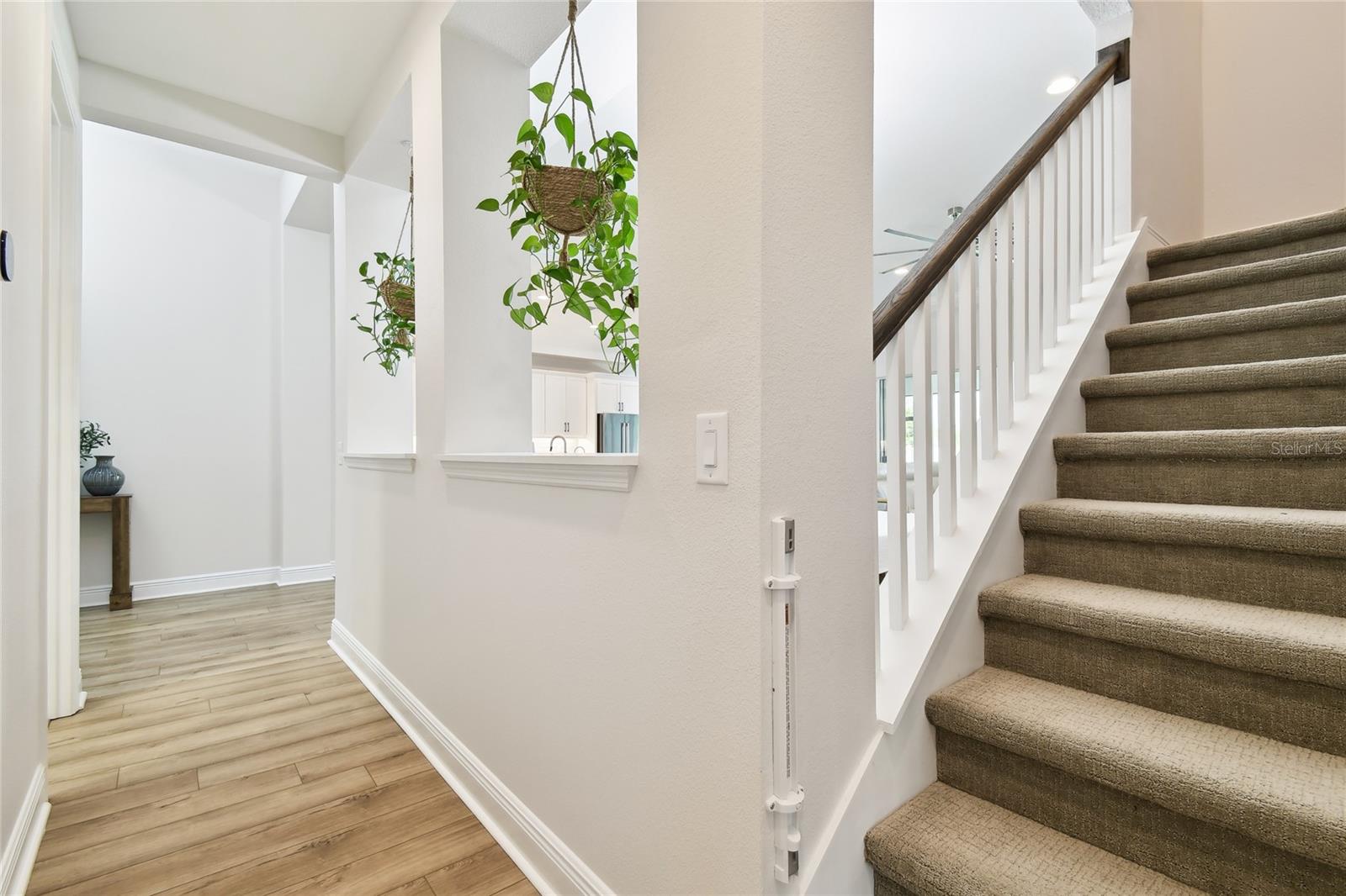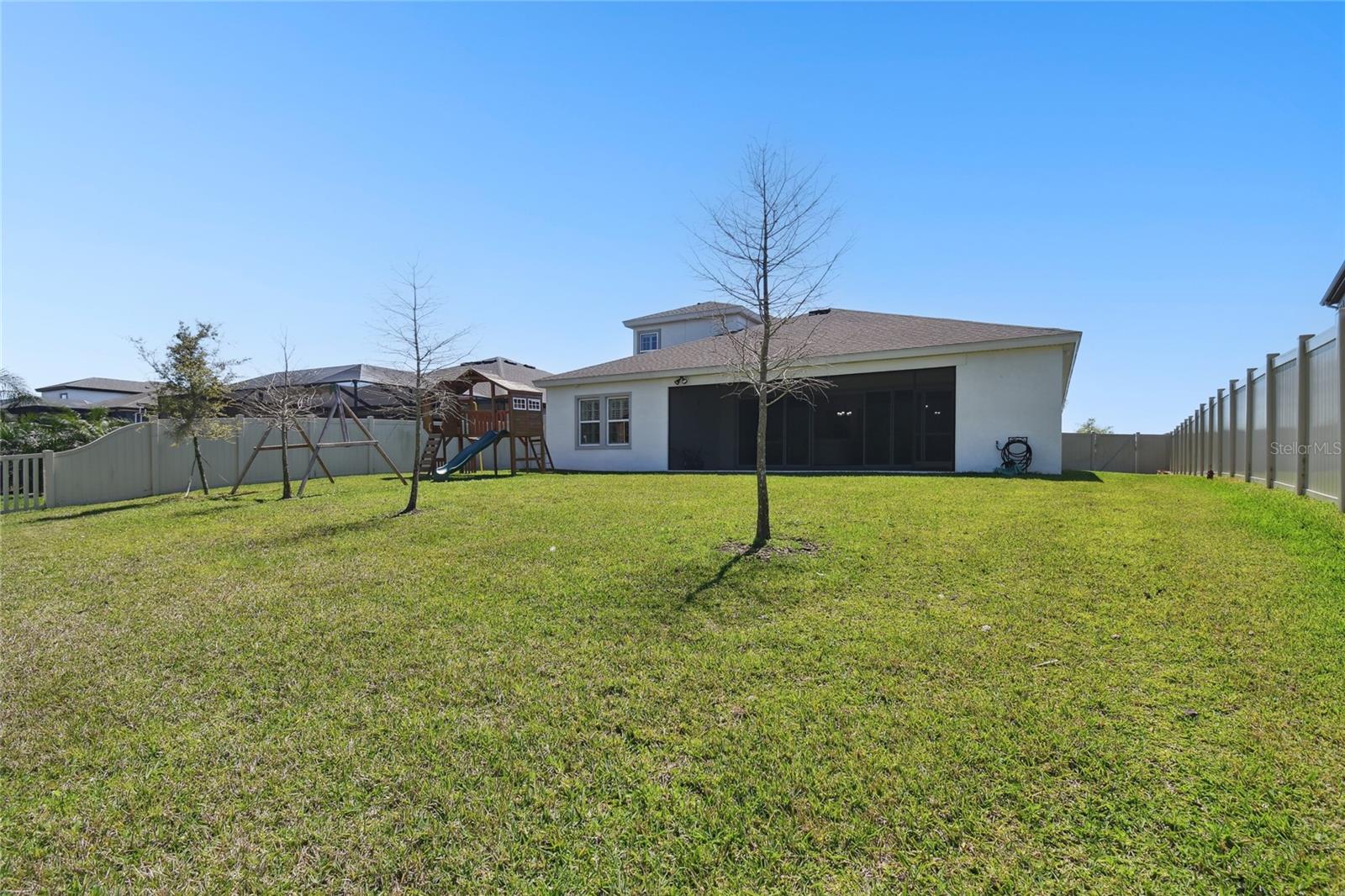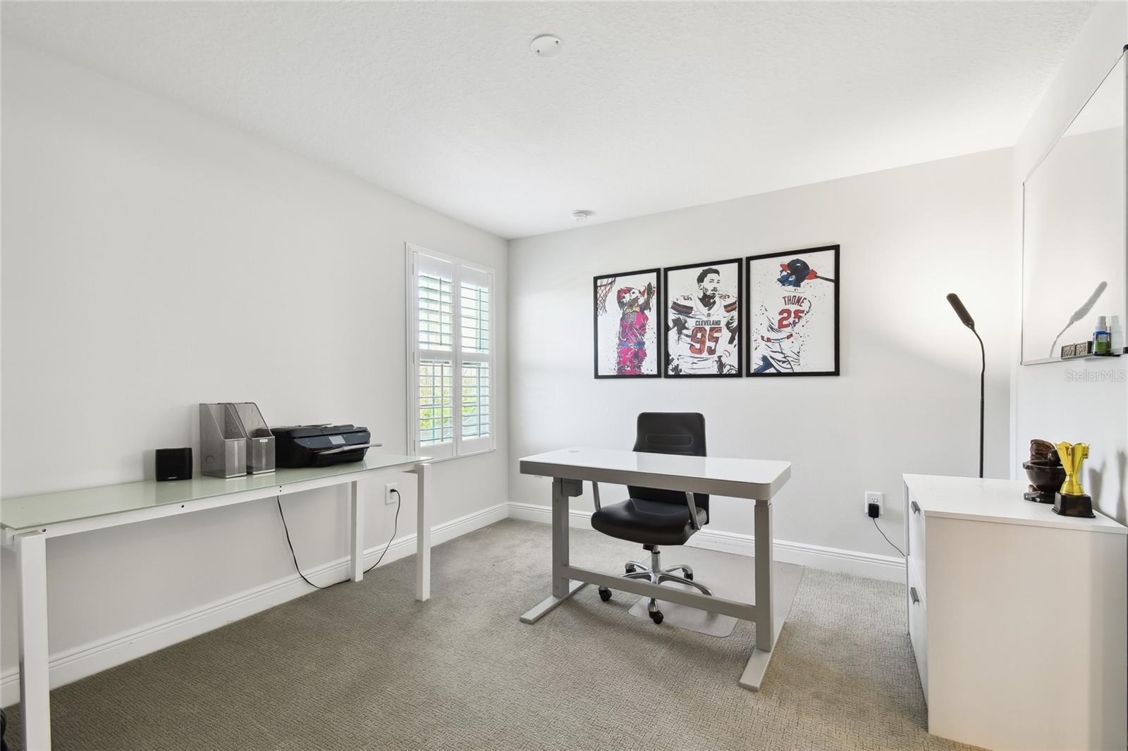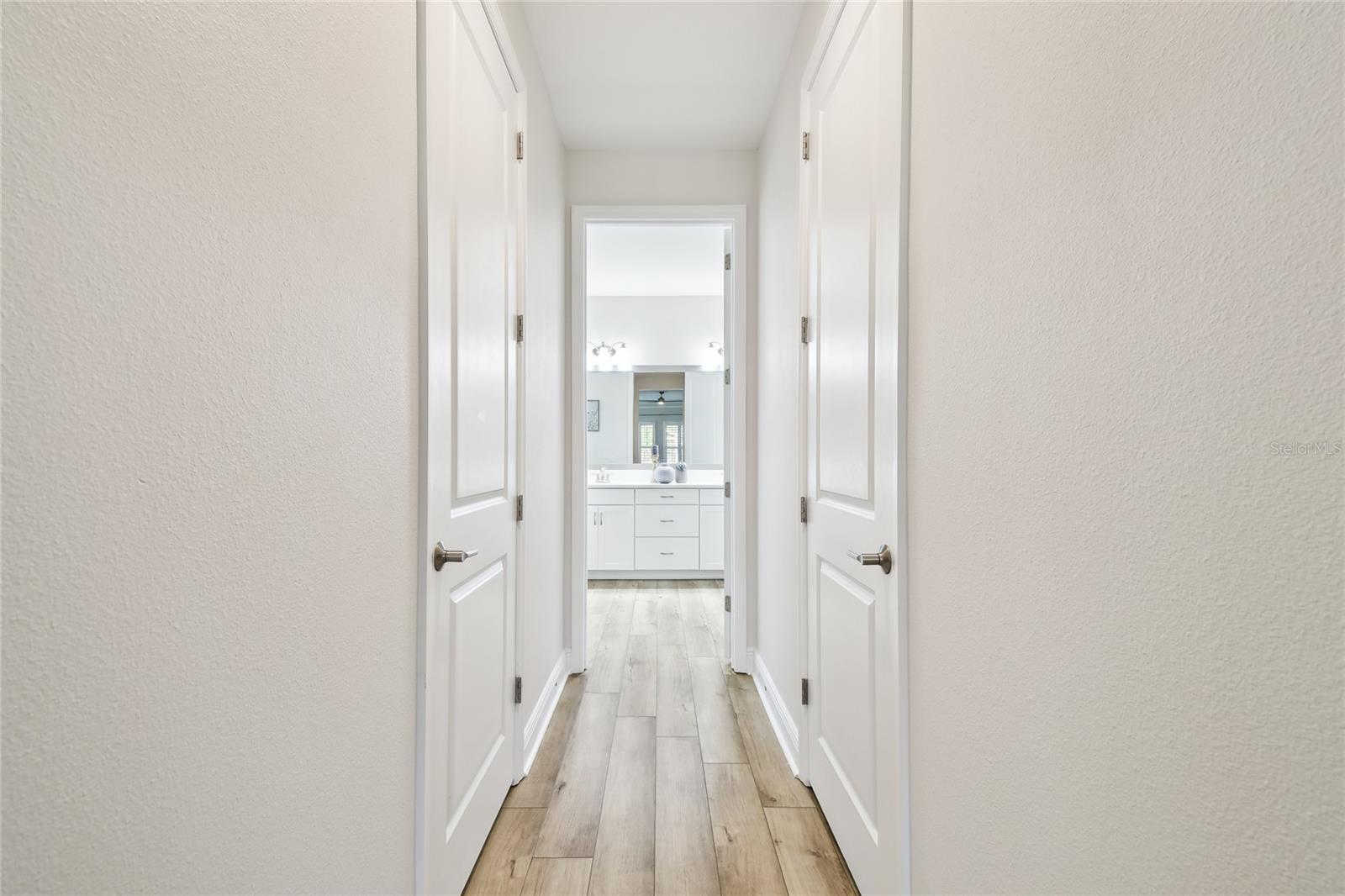 Luxury Living on Oversized Conservation Lot – 5BR/5BA Bayshore II by Homes by West Bay! Experience resort-style living in this stunning 5-bedroom, 5-bathroom Bayshore II, nestled on a rare, oversized .26-acre fully fenced conservation lot in the award-winning Connerton community. This move-in-ready home features 3,283 sq. ft. of meticulously maintained space, an open-concept design, and luxury upgrades throughout. Enjoy easy living with a split-bedroom layout that offers privacy for the owner’s retreat and secondary bedrooms. Step through the 8ft double doors into the wide double foyer into a grand room that seamlessly blends with the deluxe kitchen, casual dining area, and panoramic screened lanai—perfect for entertaining or simply relaxing while enjoying serene nature views. The chef’s kitchen is a showstopper, boasting a massive quartz island with double-sided cabinetry, GE Profile stainless steel appliances, 42” cabinets, subway tile backsplash, farmhouse sink, and a custom walk-in pantry with wood shelving. Tray ceilings, crown molding, luxury vinyl plank flooring, and plantation shutters throughout the main living areas and bedrooms enhance the home’s refined ambiance. The owner’s retreat is tucked away for ultimate privacy and features tray ceilings, crown molding, dual walk-in closets, and a luxurious en-suite bath with quartz countertops, dual vanities, and a spacious walk-in shower. Two secondary bedrooms and a full bath are located off the foyer with upgraded finishes, while a fourth bedroom is privately situated near the laundry room and another full bath. Upstairs, you'll find a versatile bonus room, fifth bedroom, and full bath, perfect for a media room, guest suite, or teen retreat. Step outside to the expansive covered lanai with a panoramic screen enclosure, surround sound system, and full outdoor pool bath—an entertainer’s dream space that’s pre-plumbed for a pool and ready for your custom outdoor oasis. Additional standout features include reclaimed water irrigation, upgraded landscaping, custom light fixtures, a paved driveway, three-car garage, and exceptional curb appeal. Located in the highly desirable Connerton community, this home offers access to world-class amenities including a resort-style pool, splash park, fitness center, clubhouse, sports courts, scenic trails, and year-round resident events. The highly anticipated Pinecrest Academy opens Fall 2025, and a second clubhouse with pool, gym, and six pickleball courts is currently under construction. This is more than just a home—it’s a lifestyle. Don’t miss your opportunity to own one of the most impressive conservation homesites in Connerton.